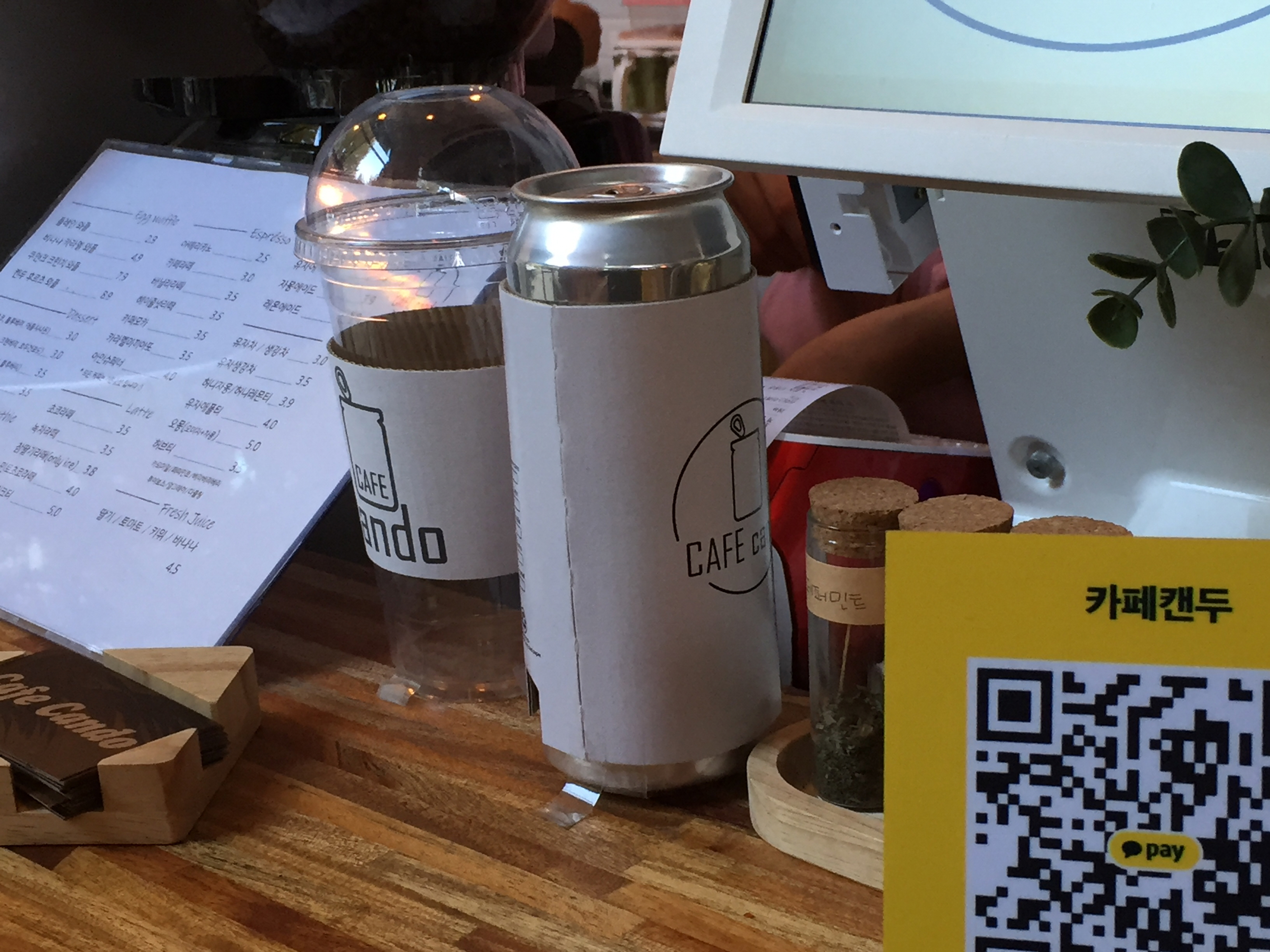 이곳에서는 특이하게도 테이크 아웃 잔으로 플라스틱 컵과 캔 중에서 선택을 할 수 있습니다.