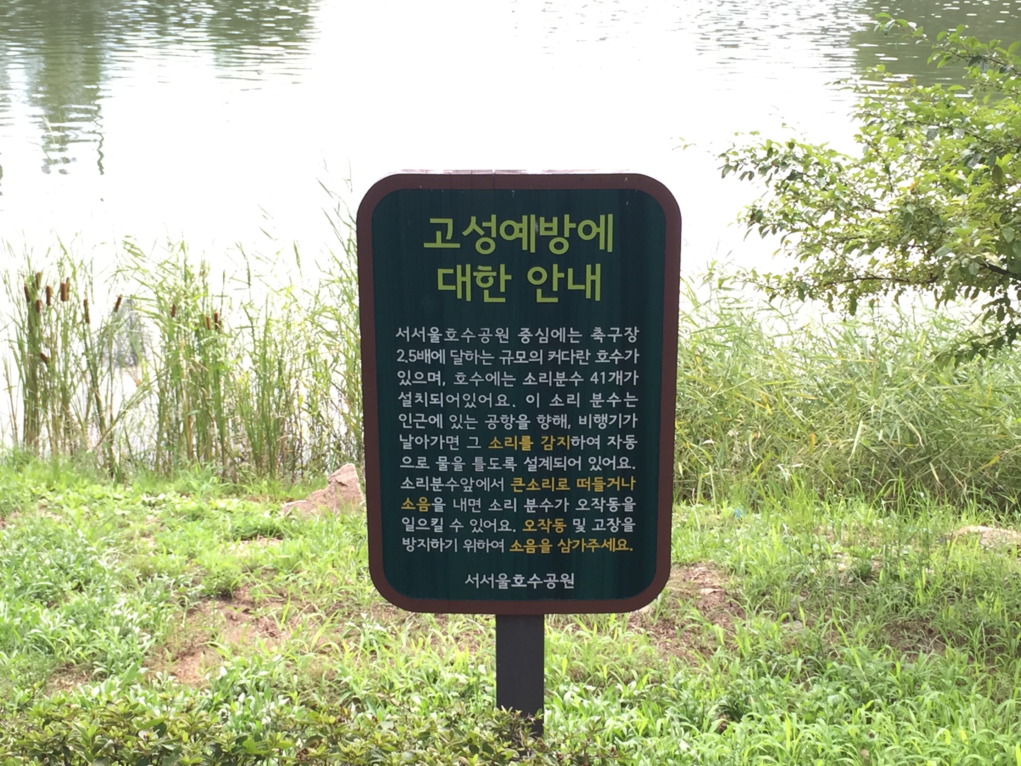 공원 주변에서 비행기 소리와 같은 큰 소음이 나면 자동으로 분수가 작동하게 만들었습니다.
