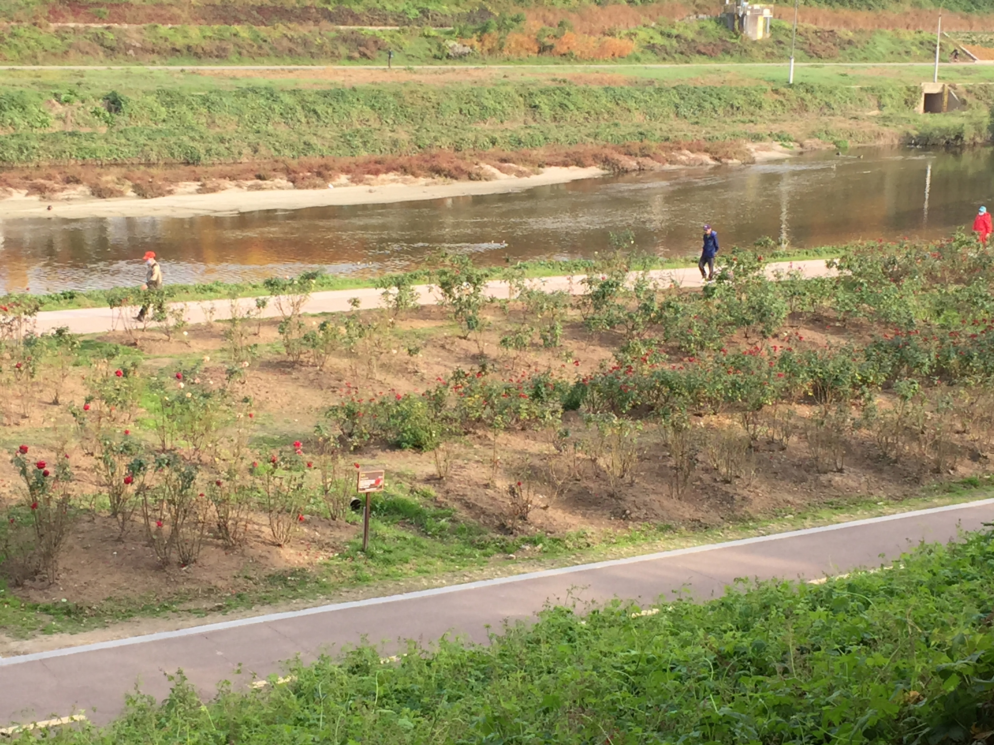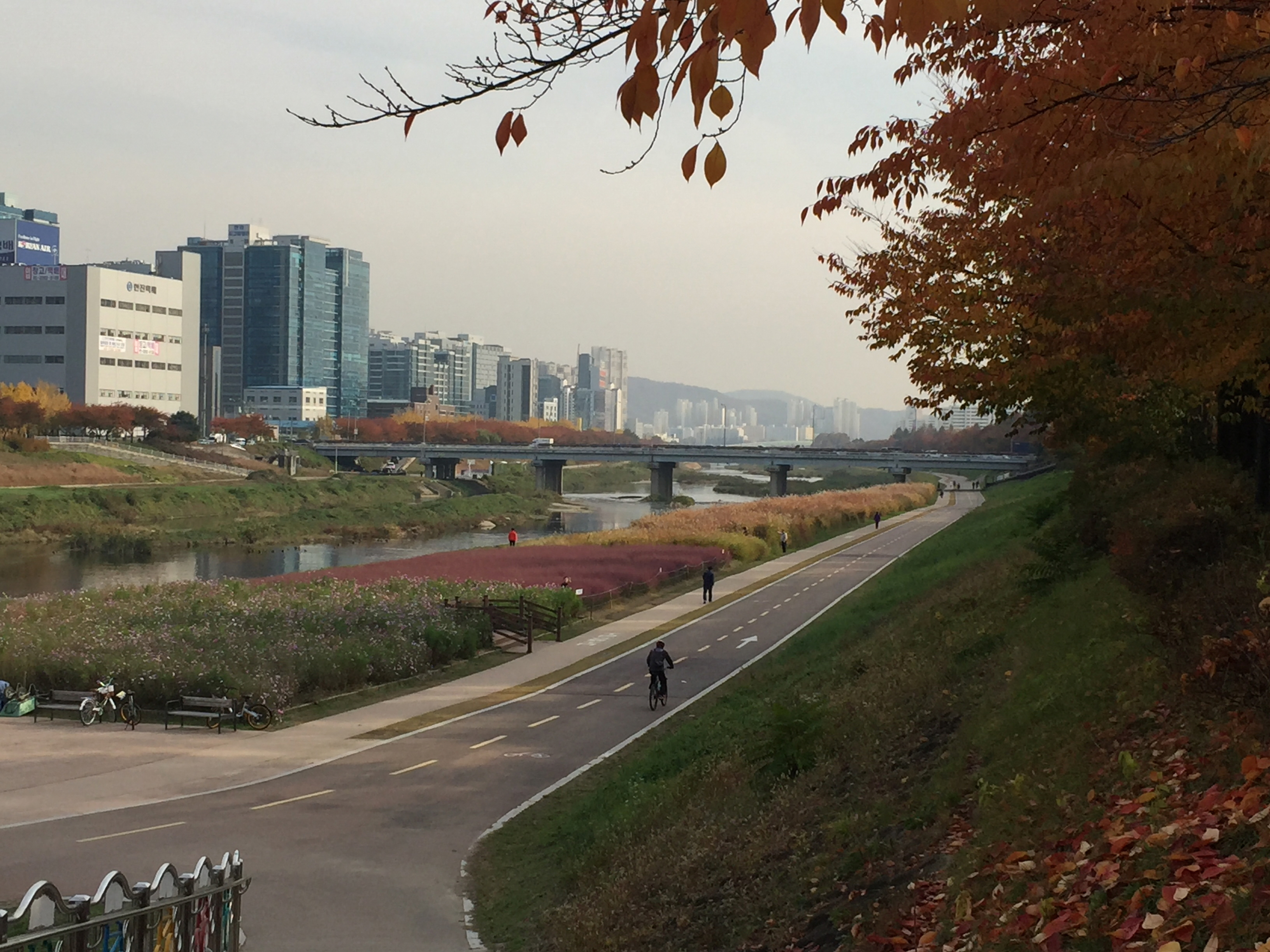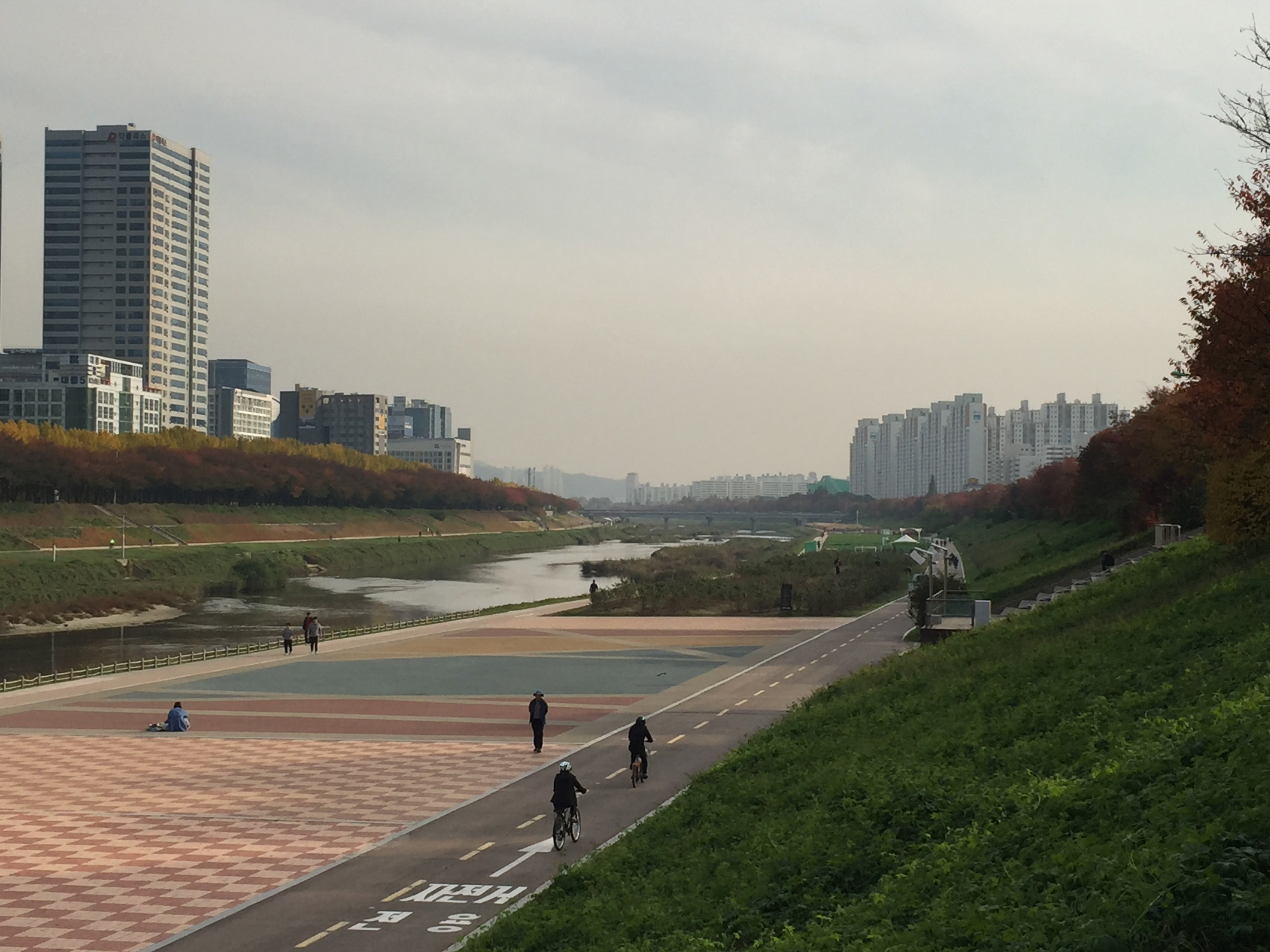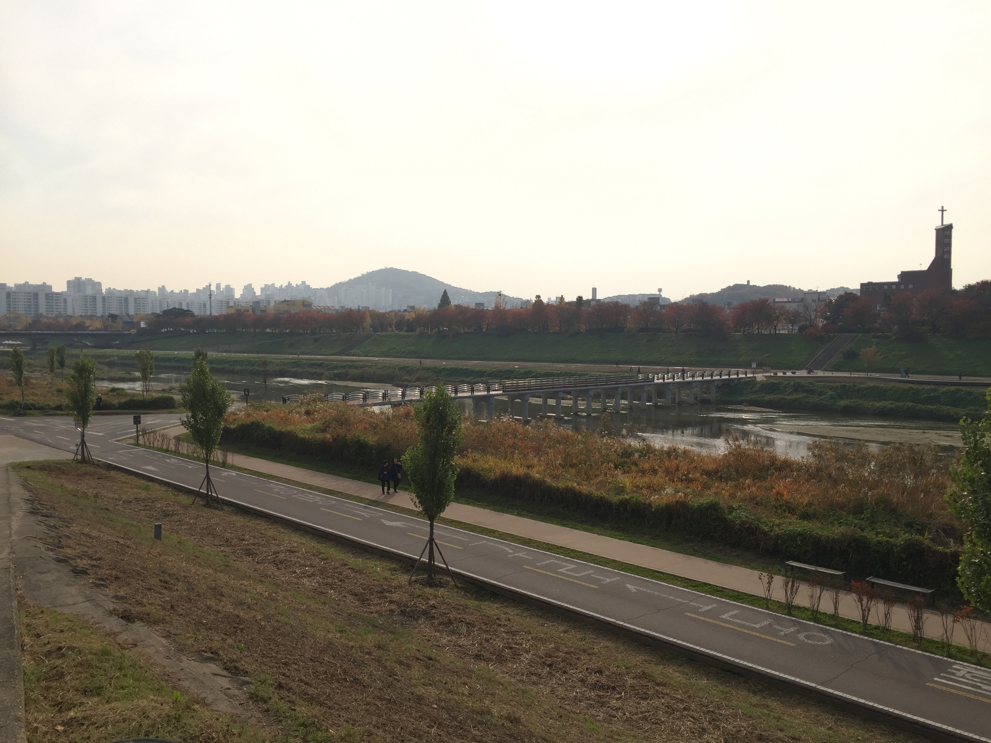 어째 둔치 위로 난 길이 중간에 끊기네요.