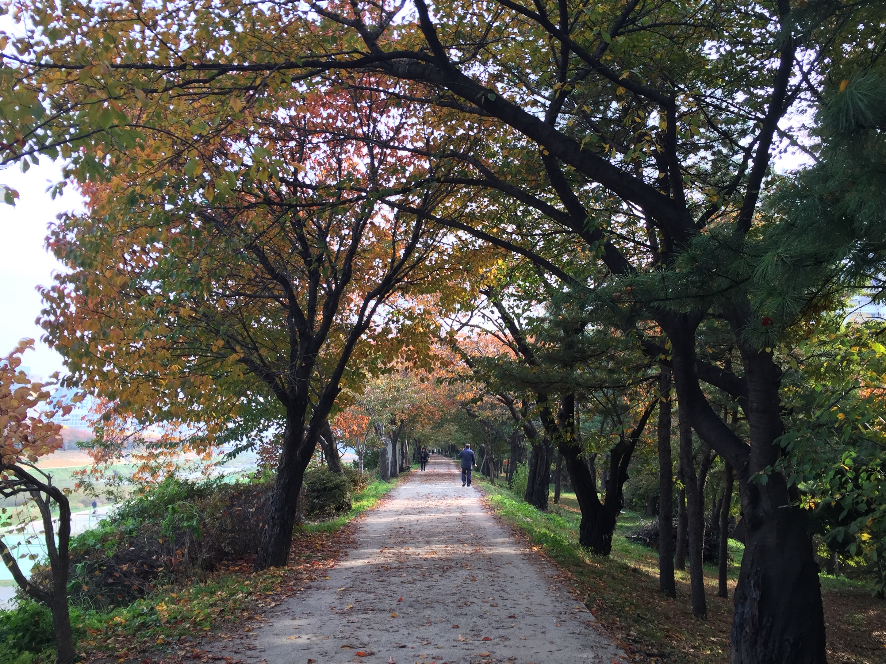유수지 외곽을 따라서 산책로가 놓여 있는데