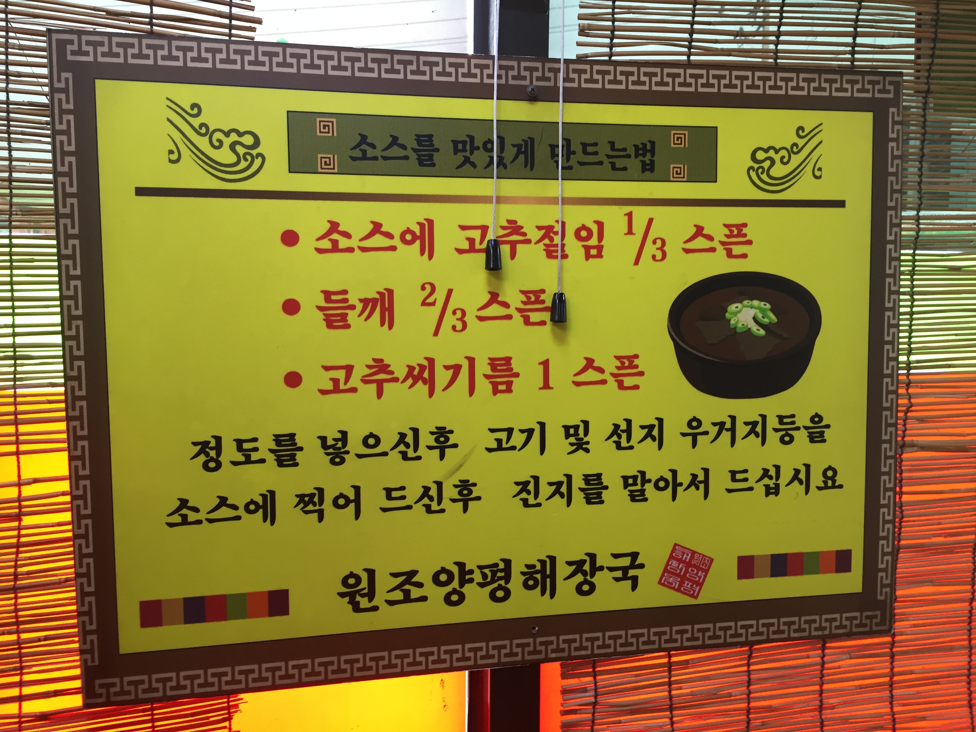 벽에 걸린 소스 만드는 법을 읽어봅니다.