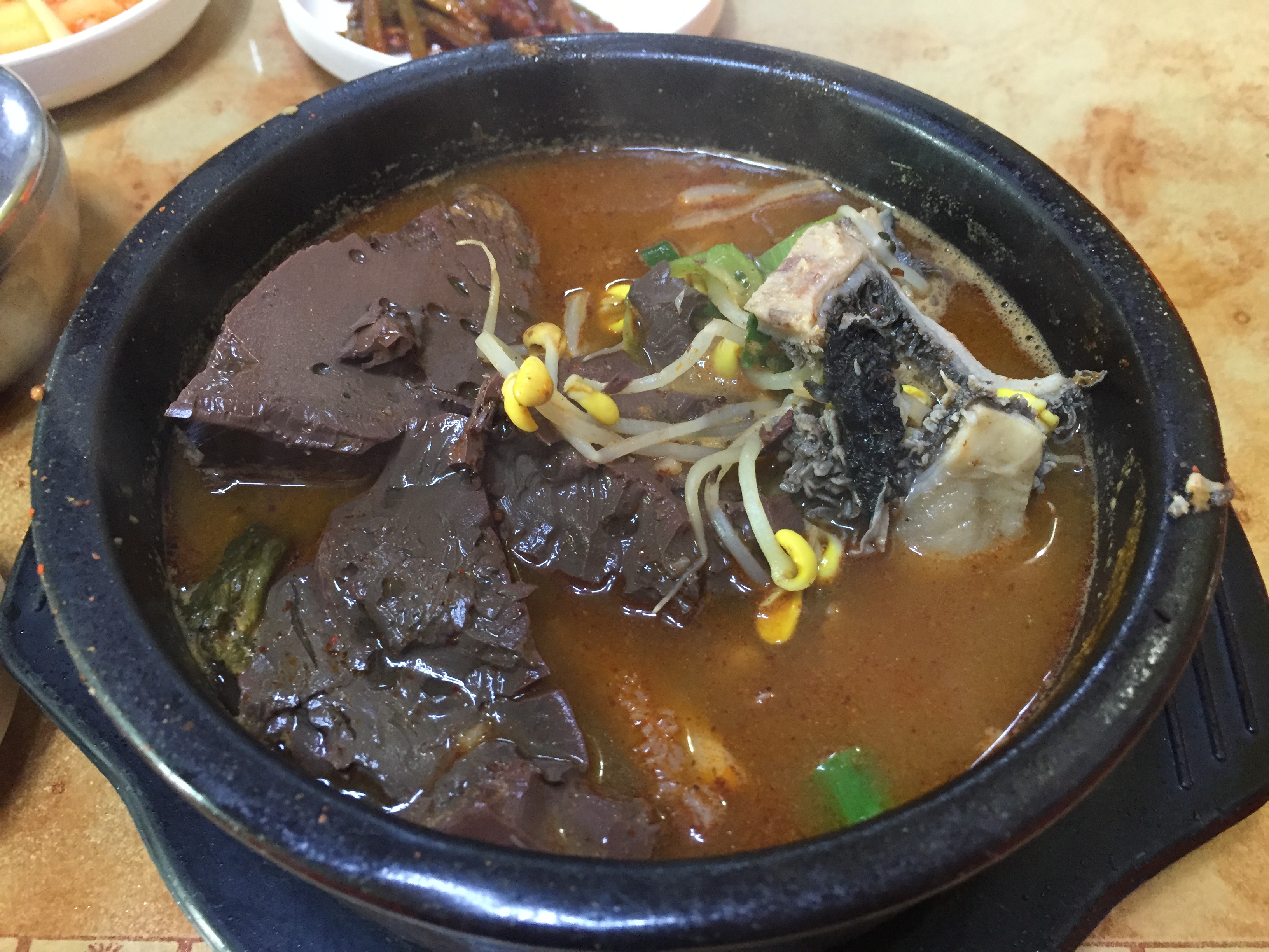 잠시 후 밑반찬과 함께 해장국이 나왔습니다.