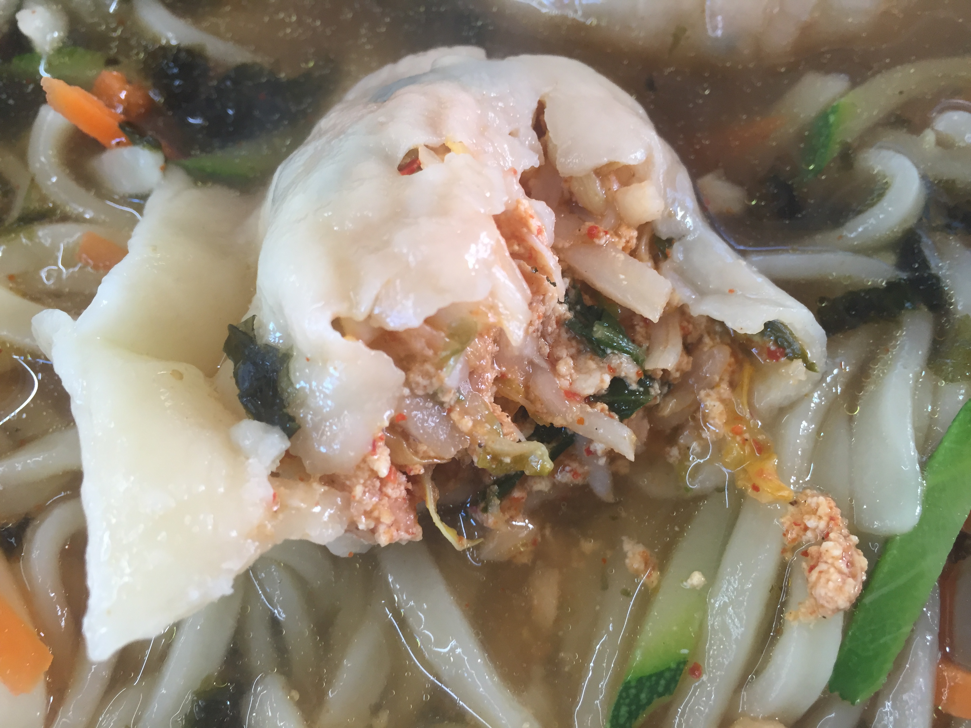 큼지막한 김치만두가 세 덩이 들어가 있네요.