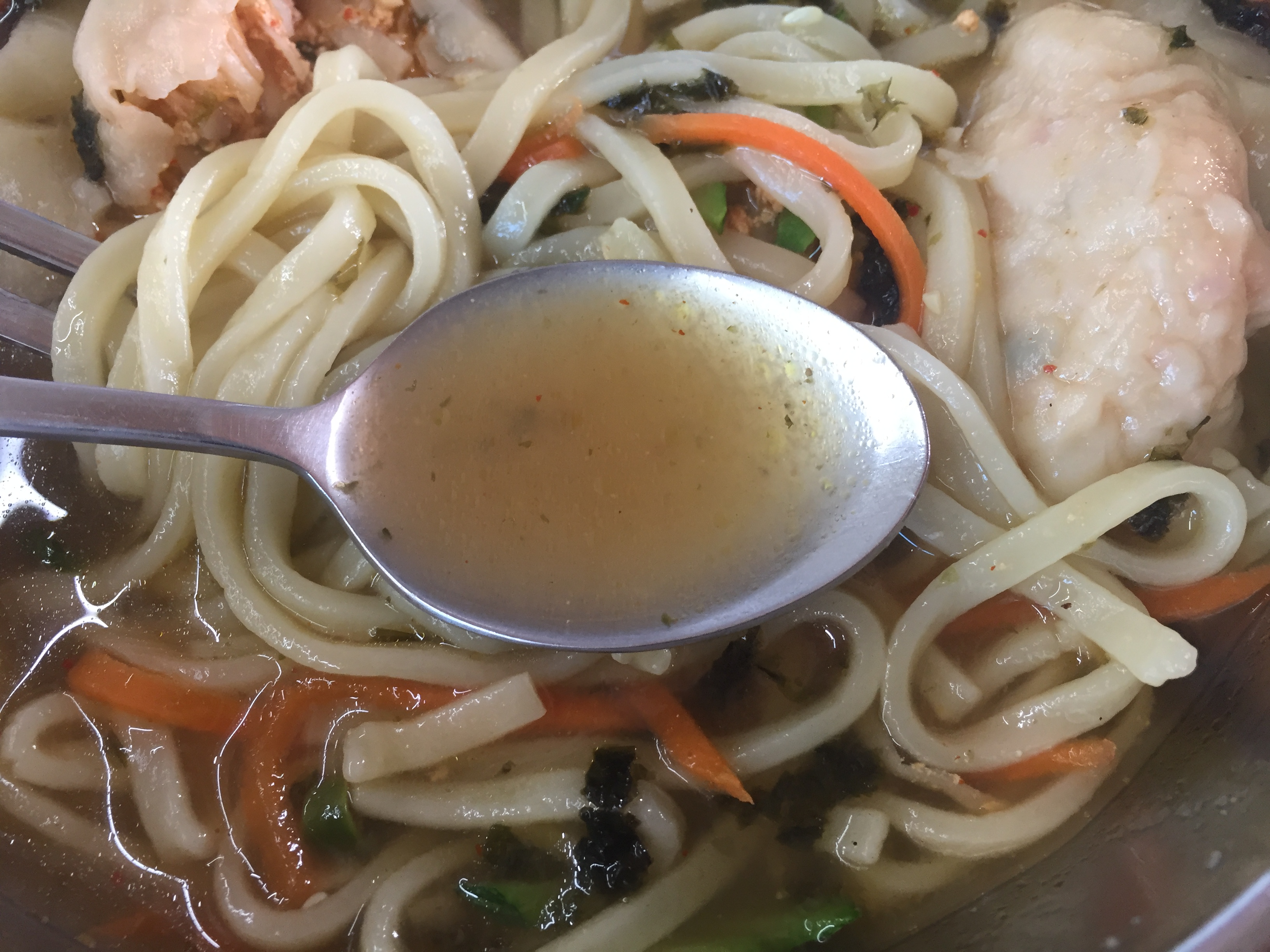 면도 따로 삶고 물에 헹군 건지 국수가락에 찰기가 남아있고 국물이 걸쭉하지 않네요.