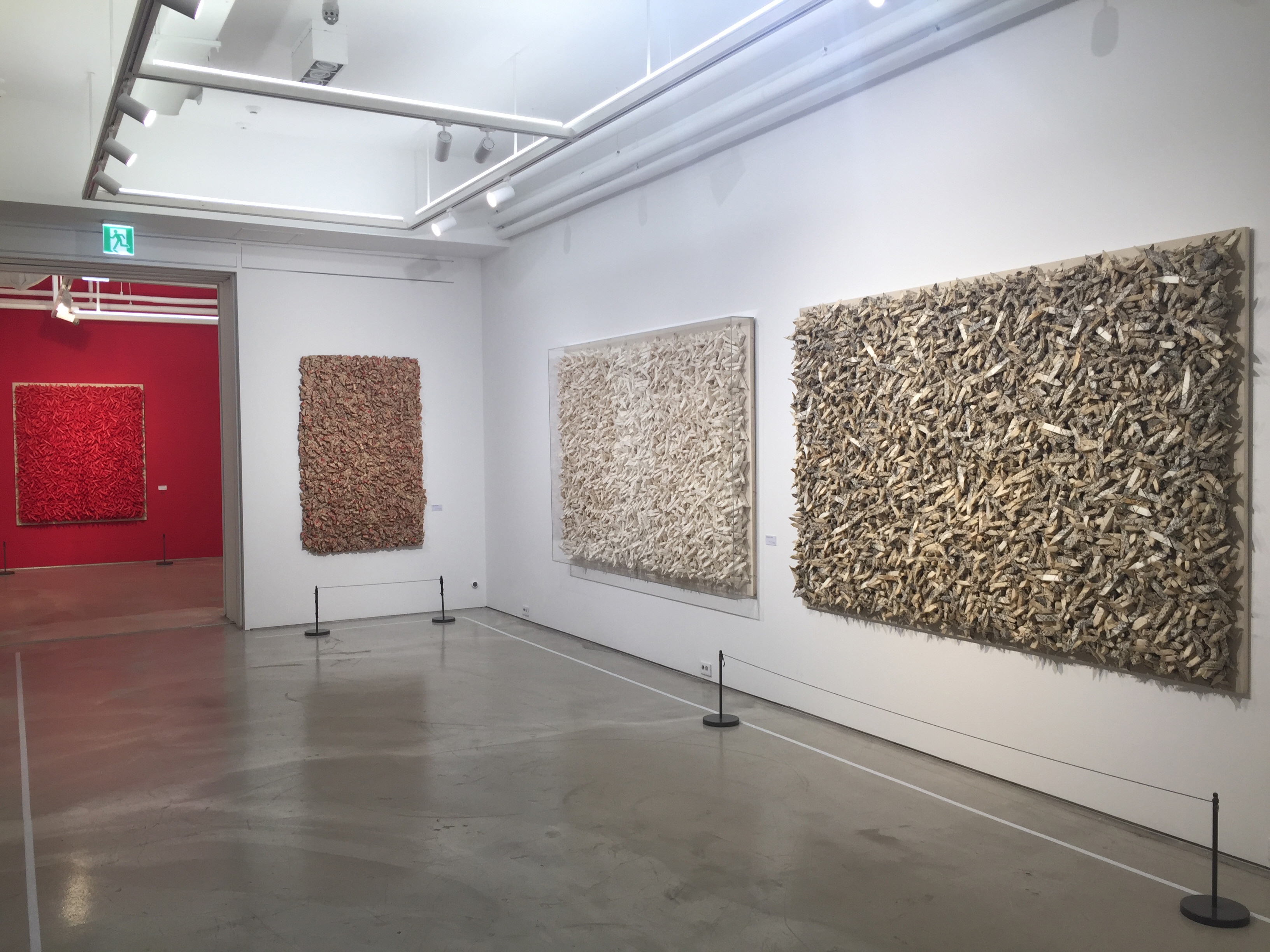 추상 회화부터 '집합' 연작 부조까지의 작품 세계 변화를 보여주고 있네요.