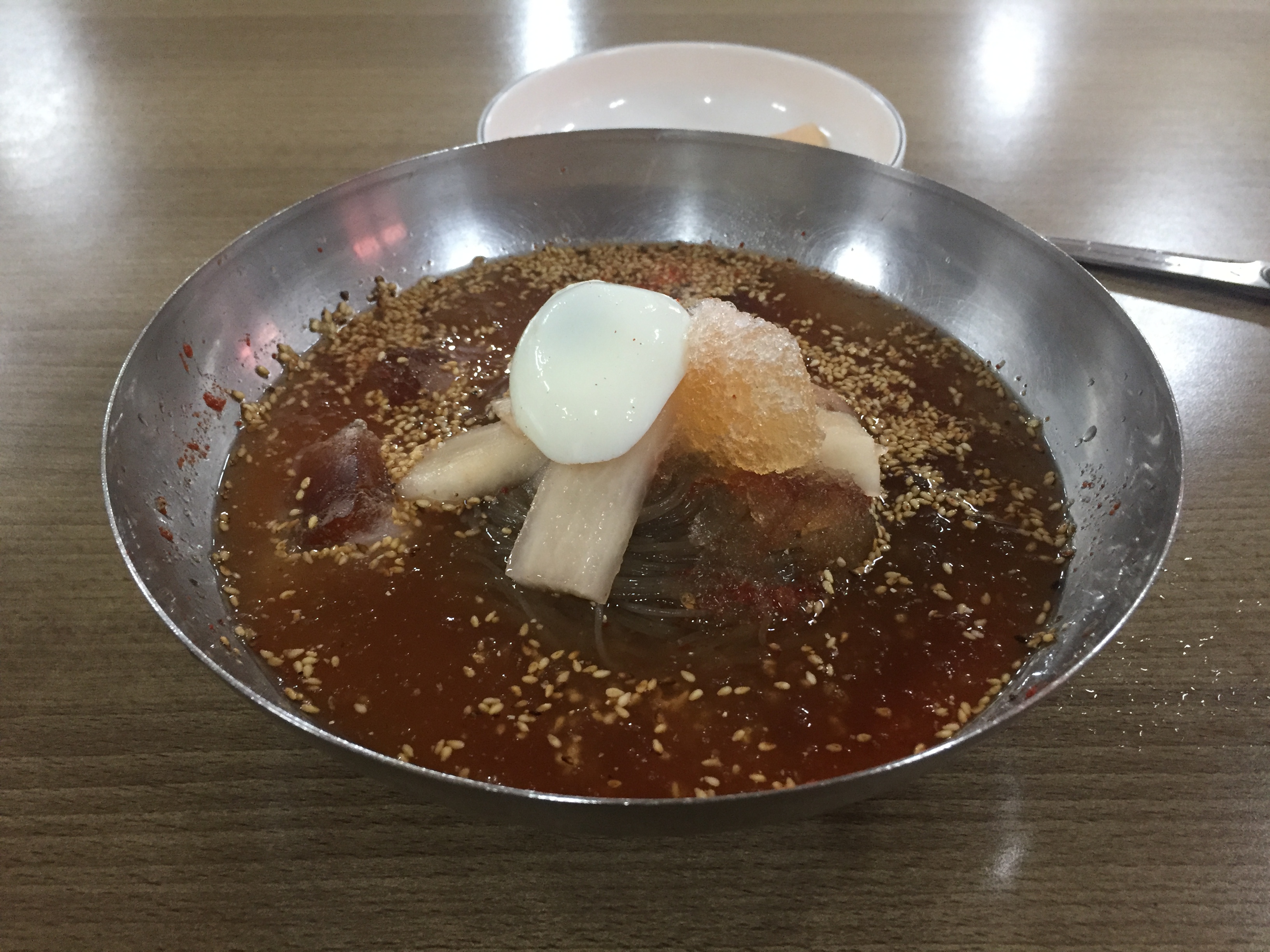 오이를 빼달라고 따로 부탁한 물냉면이 나왔습니다.