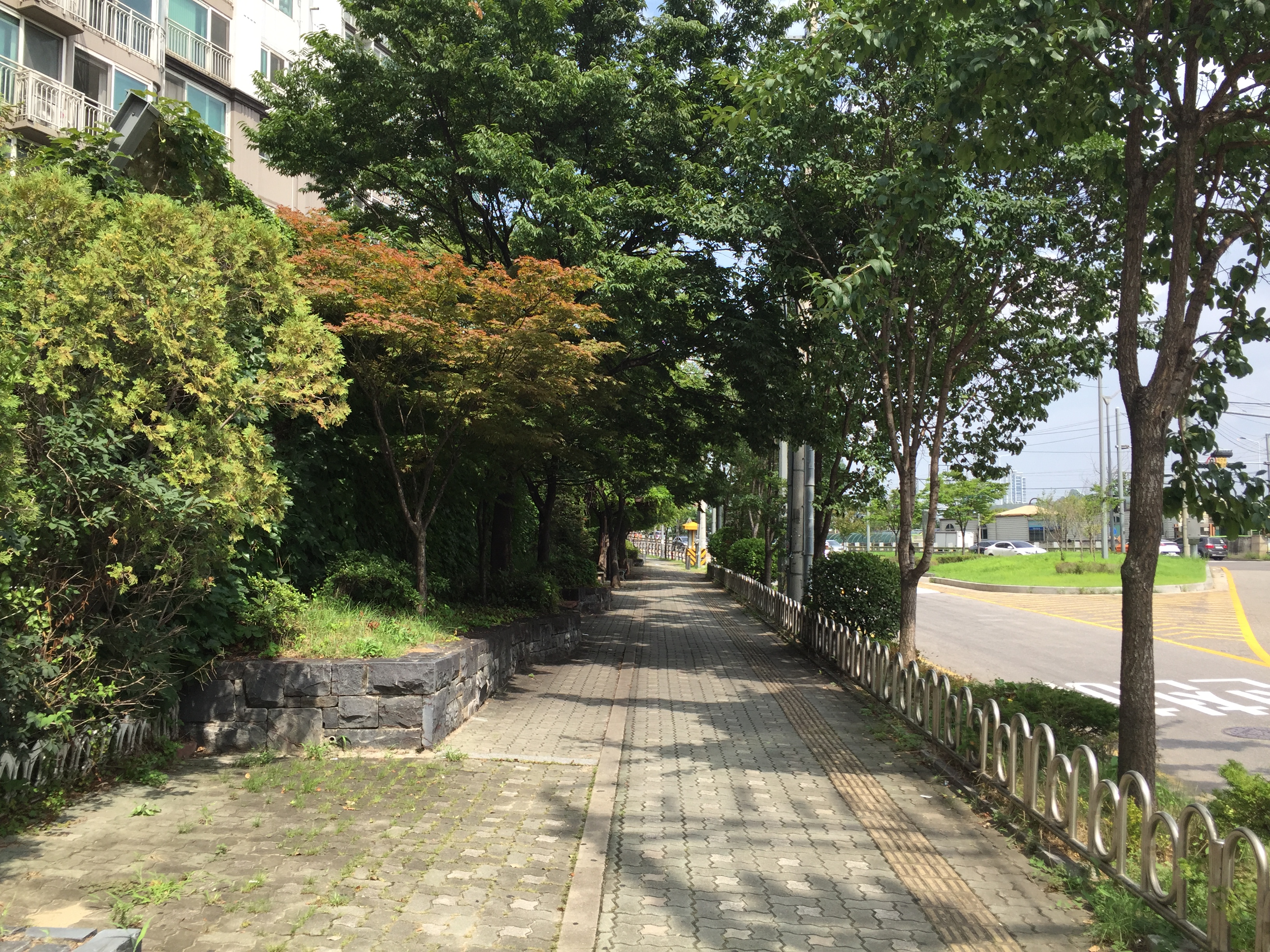 아파트 옆 길을 따라 걸어