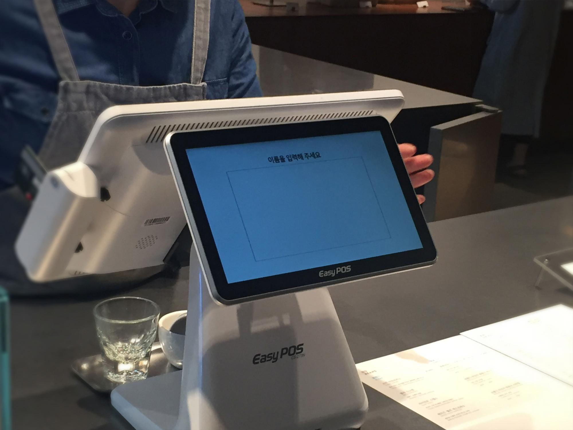 결제 도중에 POS기에 직접 이름을 씁니다.
