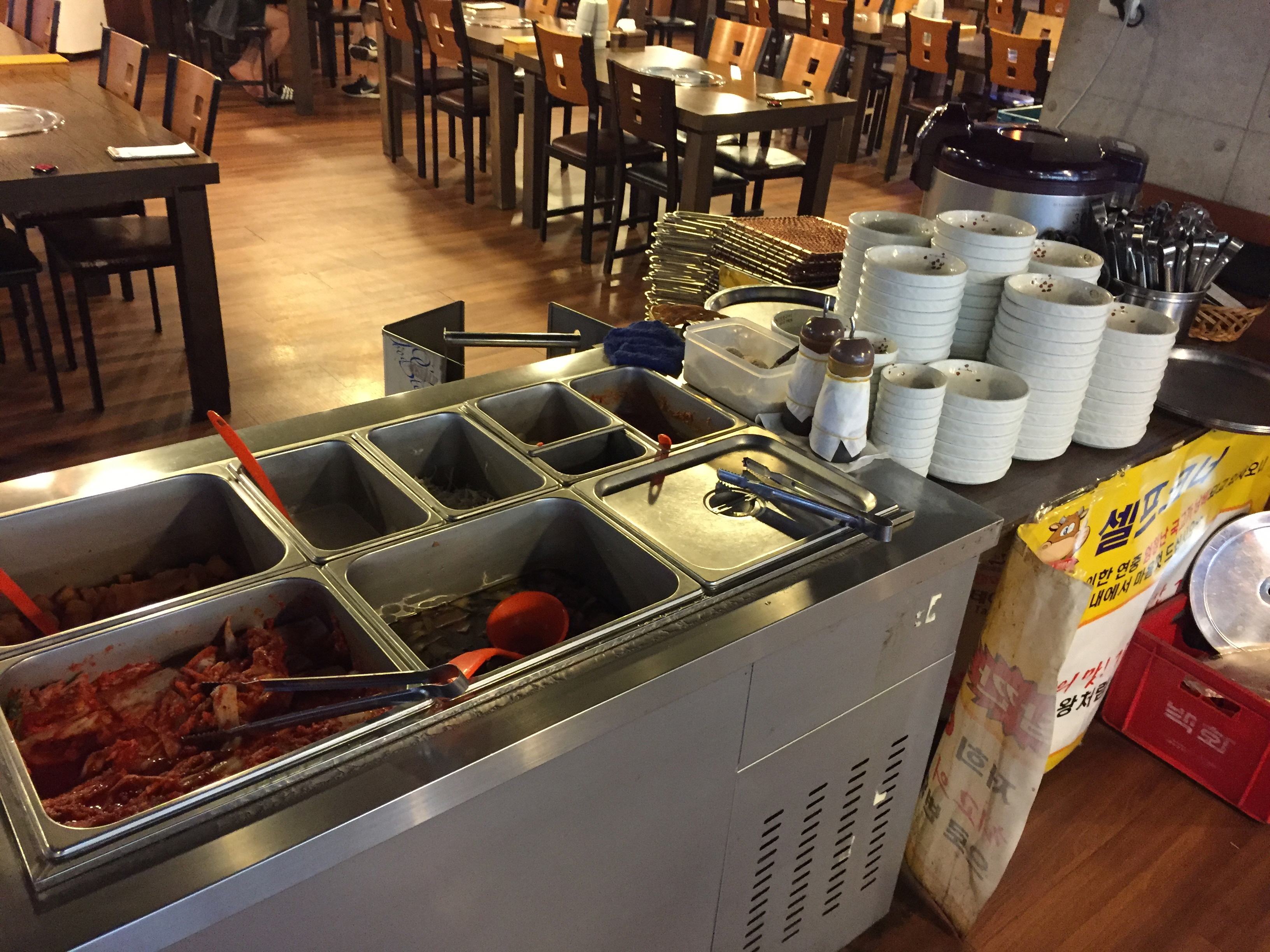 자리에 앉아 갈비육개장을 주문하니 밑반찬을 가져다주는데