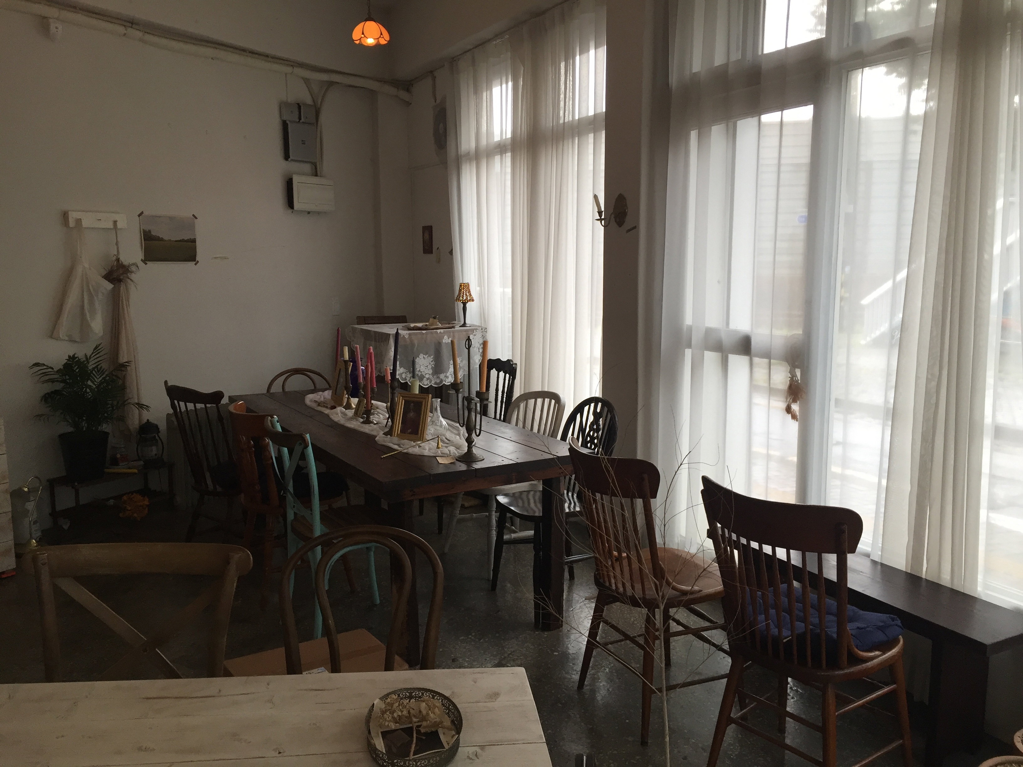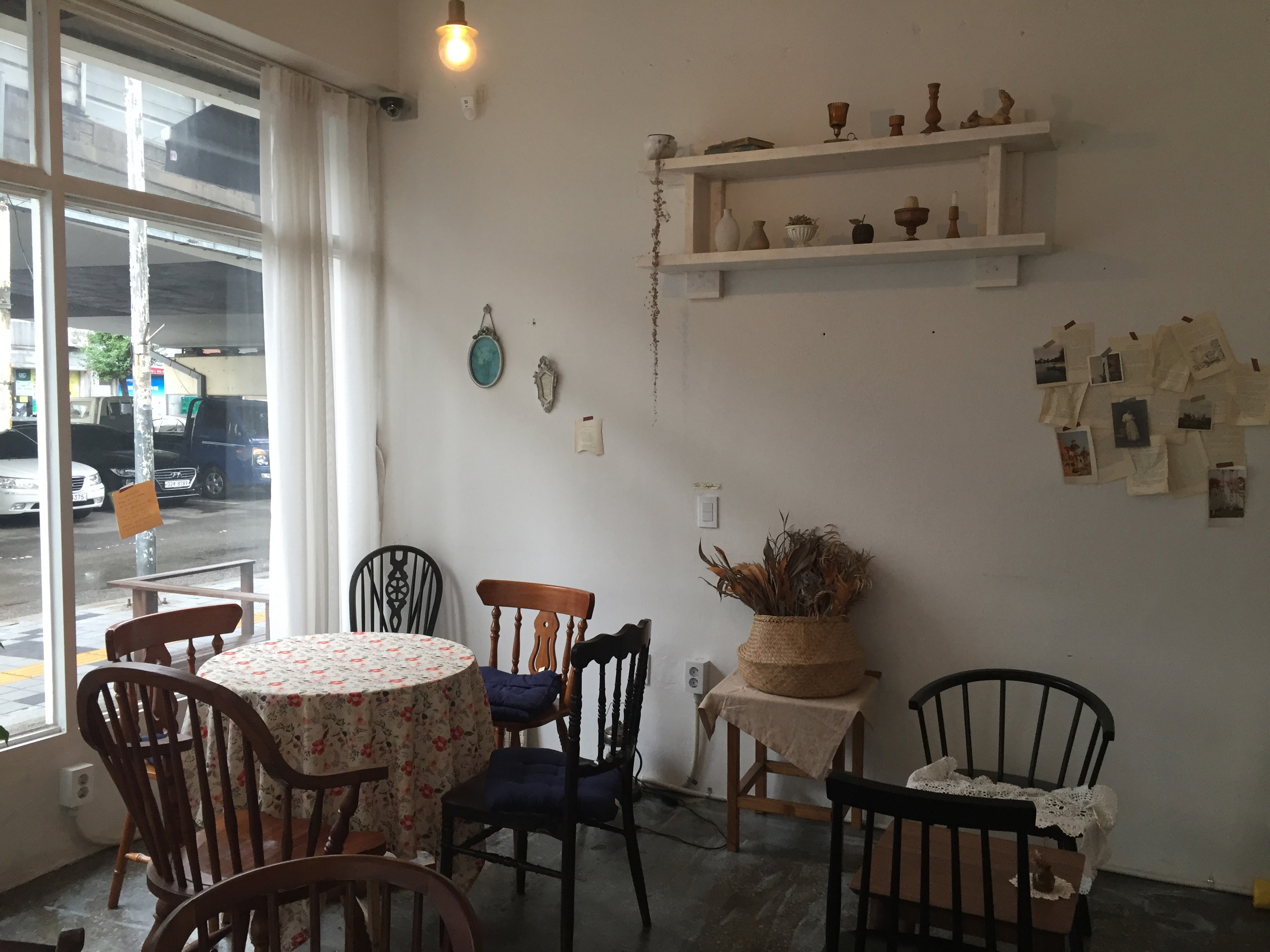 탁자와 의자를 보면 짝이 전혀 안 맞는 가구들끼리 모여있는데