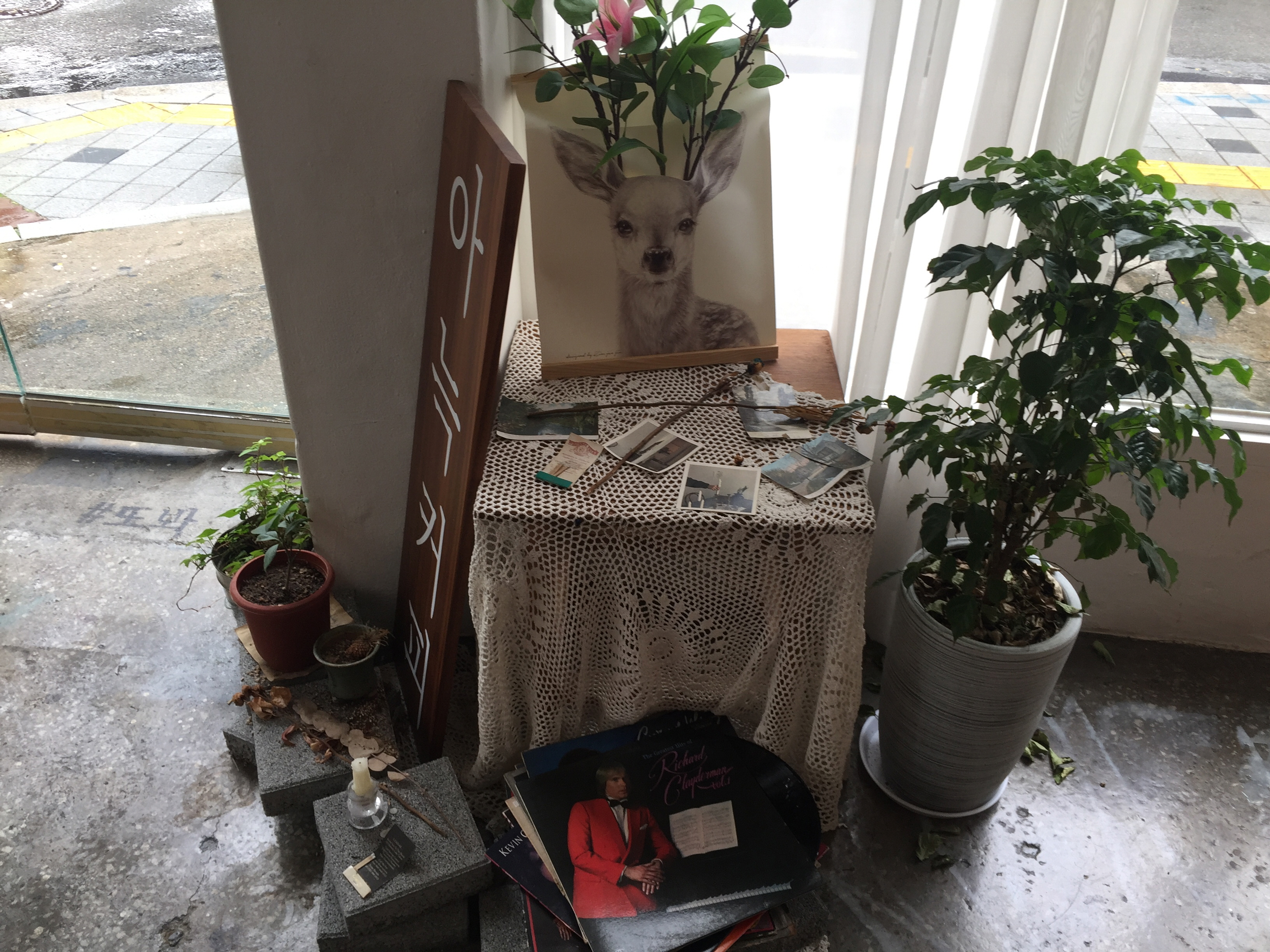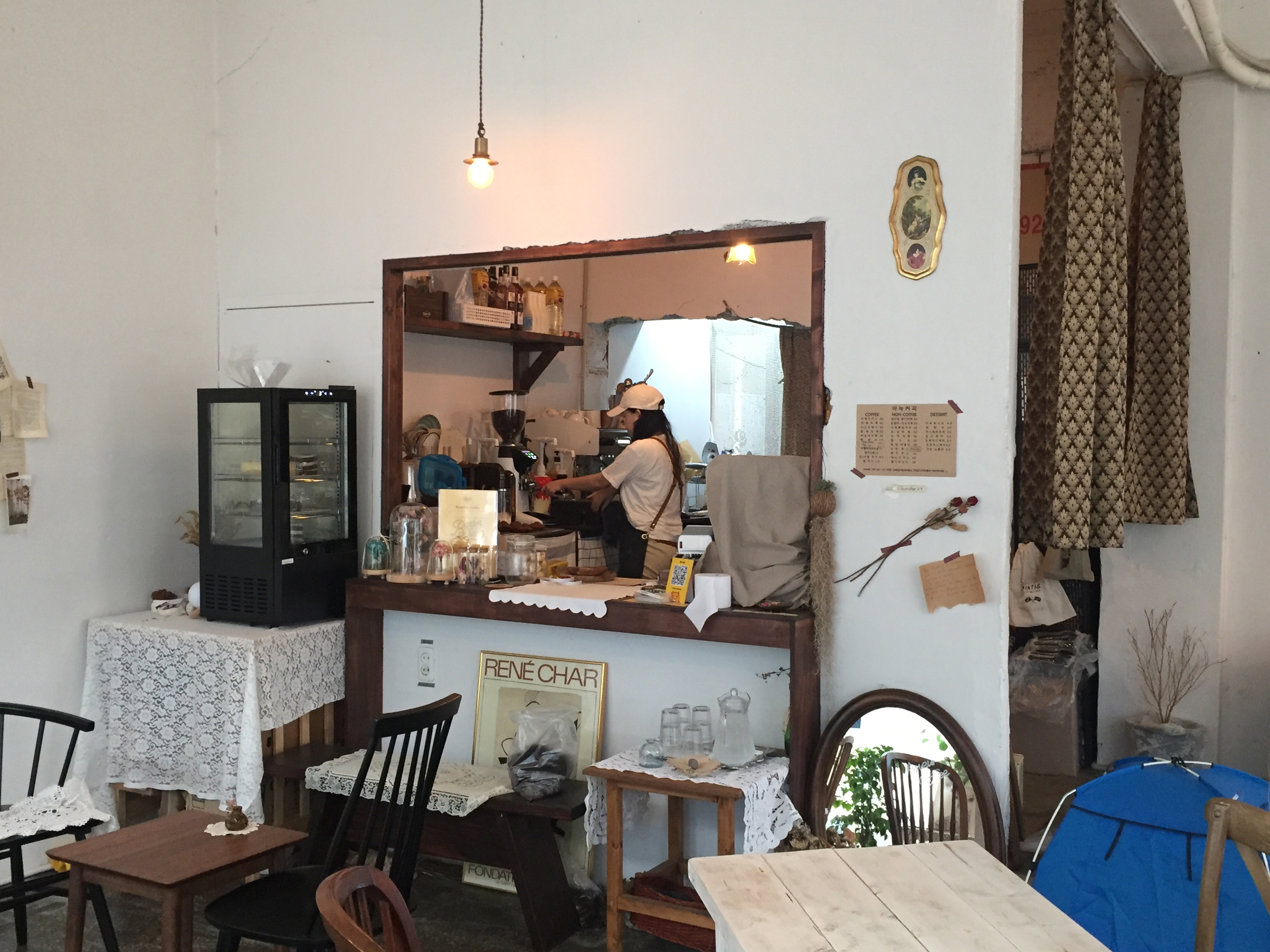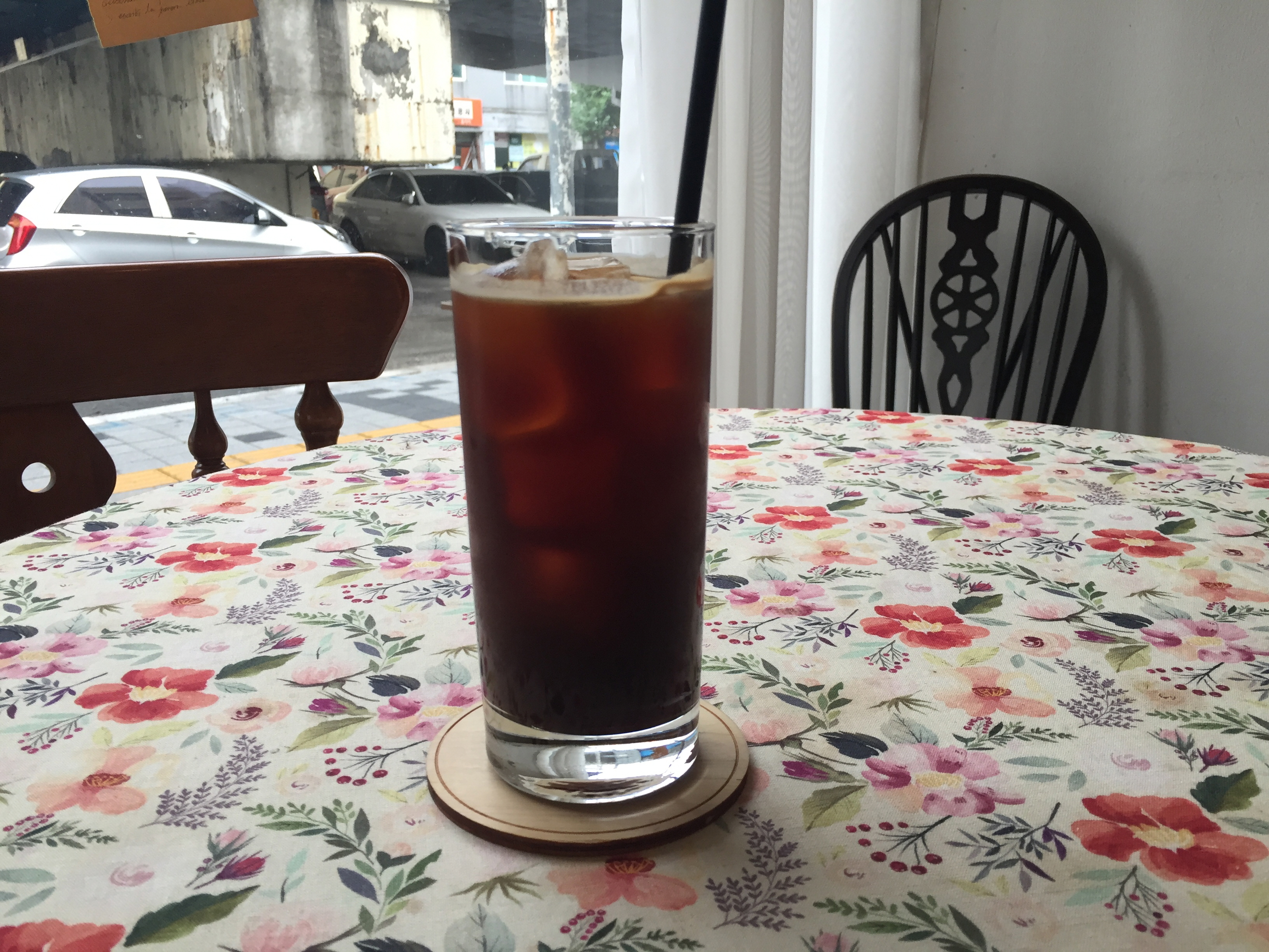 유리문에 적힌 하얀 글씨가 이곳이 카페라는 것을 알려주고 있습니다.