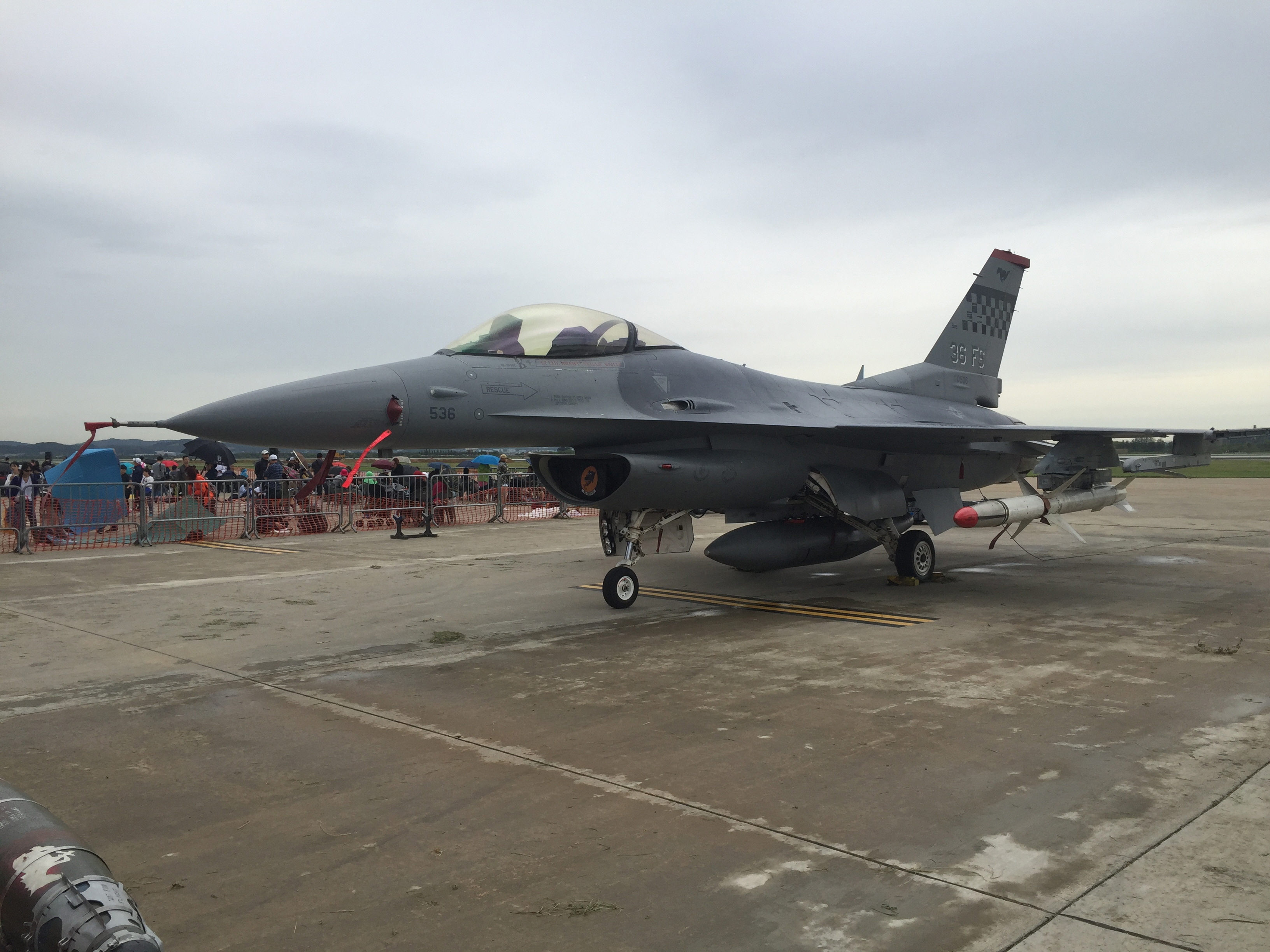 팸플릿을 보면서 행사장으로 걸어가던 중 F-16 공중시범이 시작됐습니다.