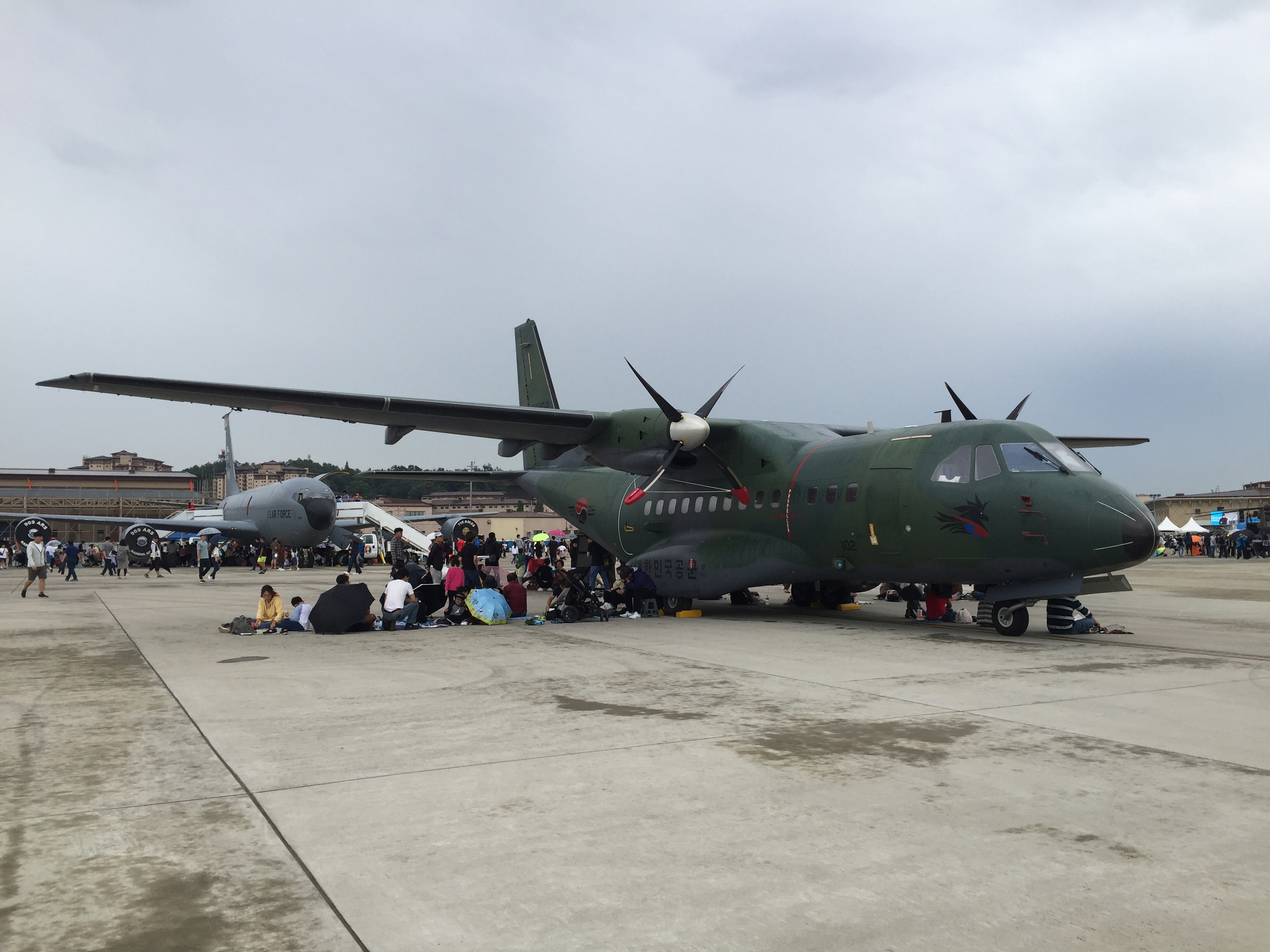비행기 밖으로 나와 한국 공군이 쓰고 있는 수송기 CN-235M과,