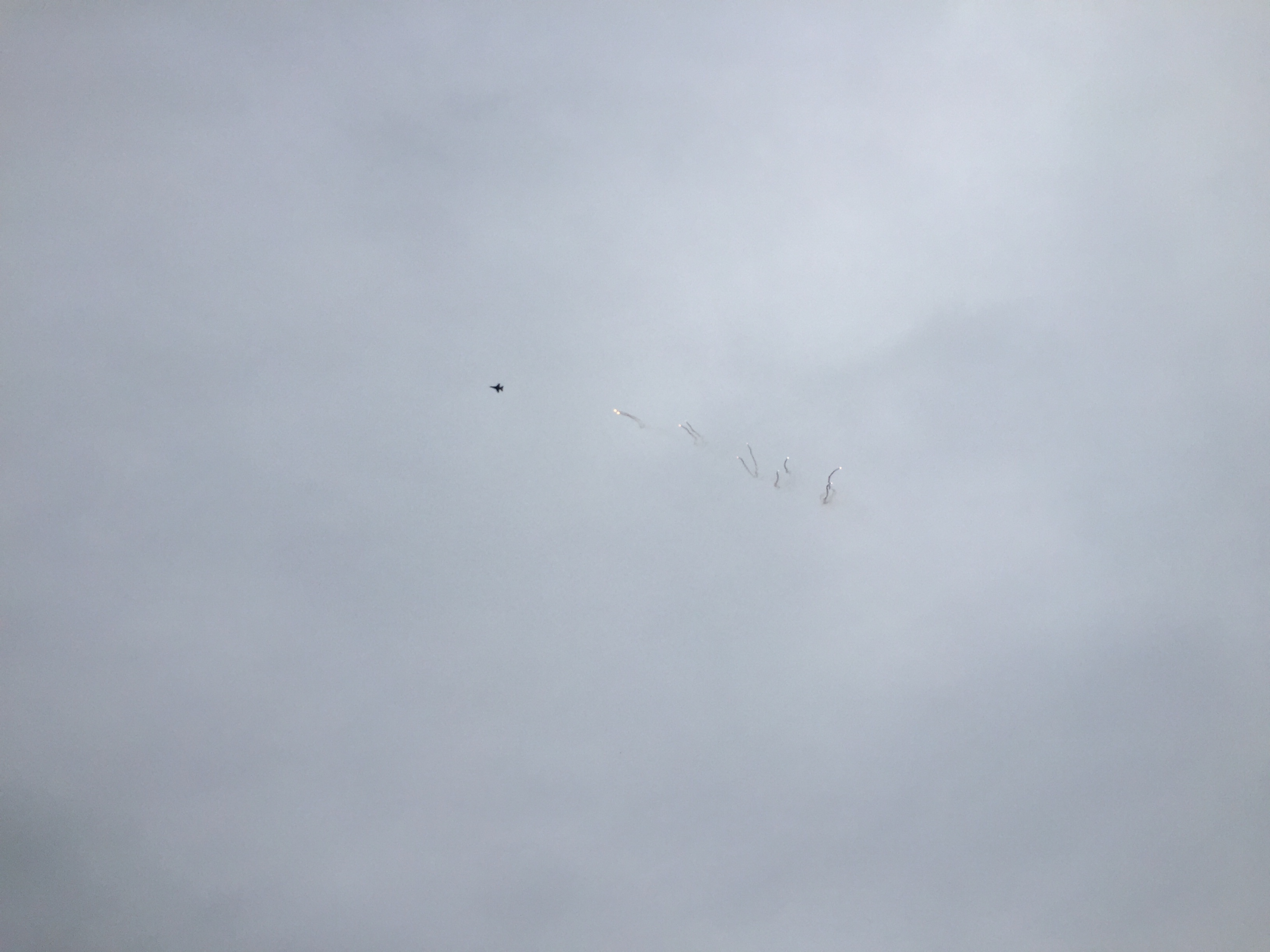 그냥 곡예비행을 하는 게 아니라 플레어를 시도 때도 없이 흩뿌리며 날아가네요.