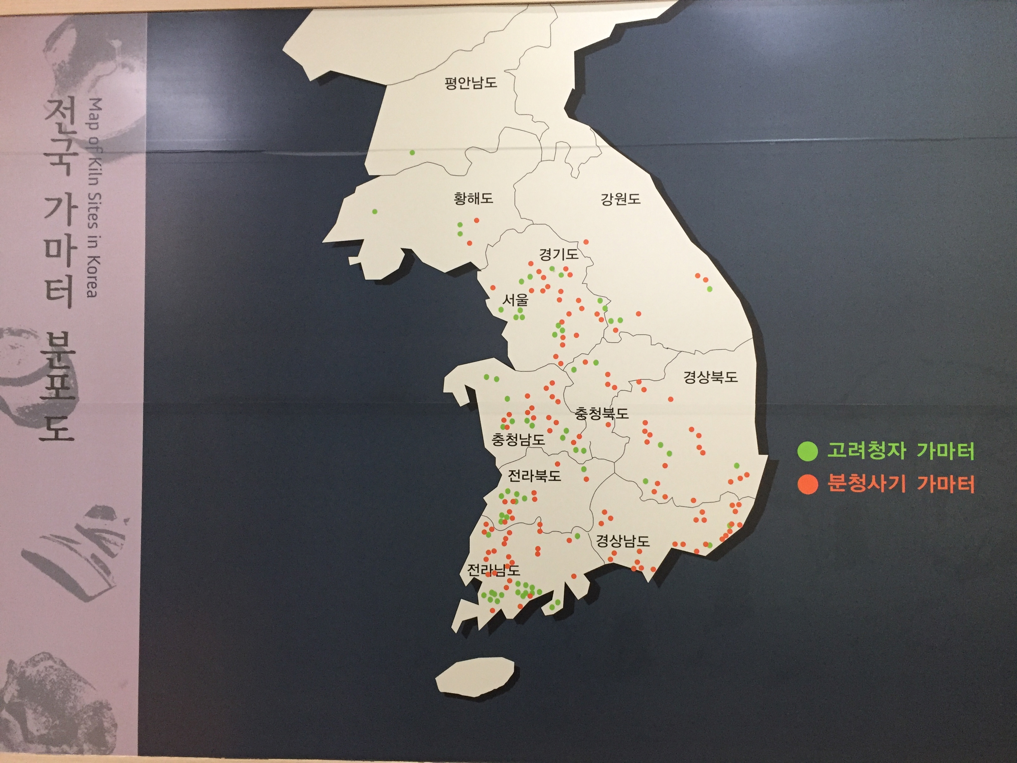 전국 곳곳에 있는 가마터를 나타낸 지도를 보고 역사전시실을 나와