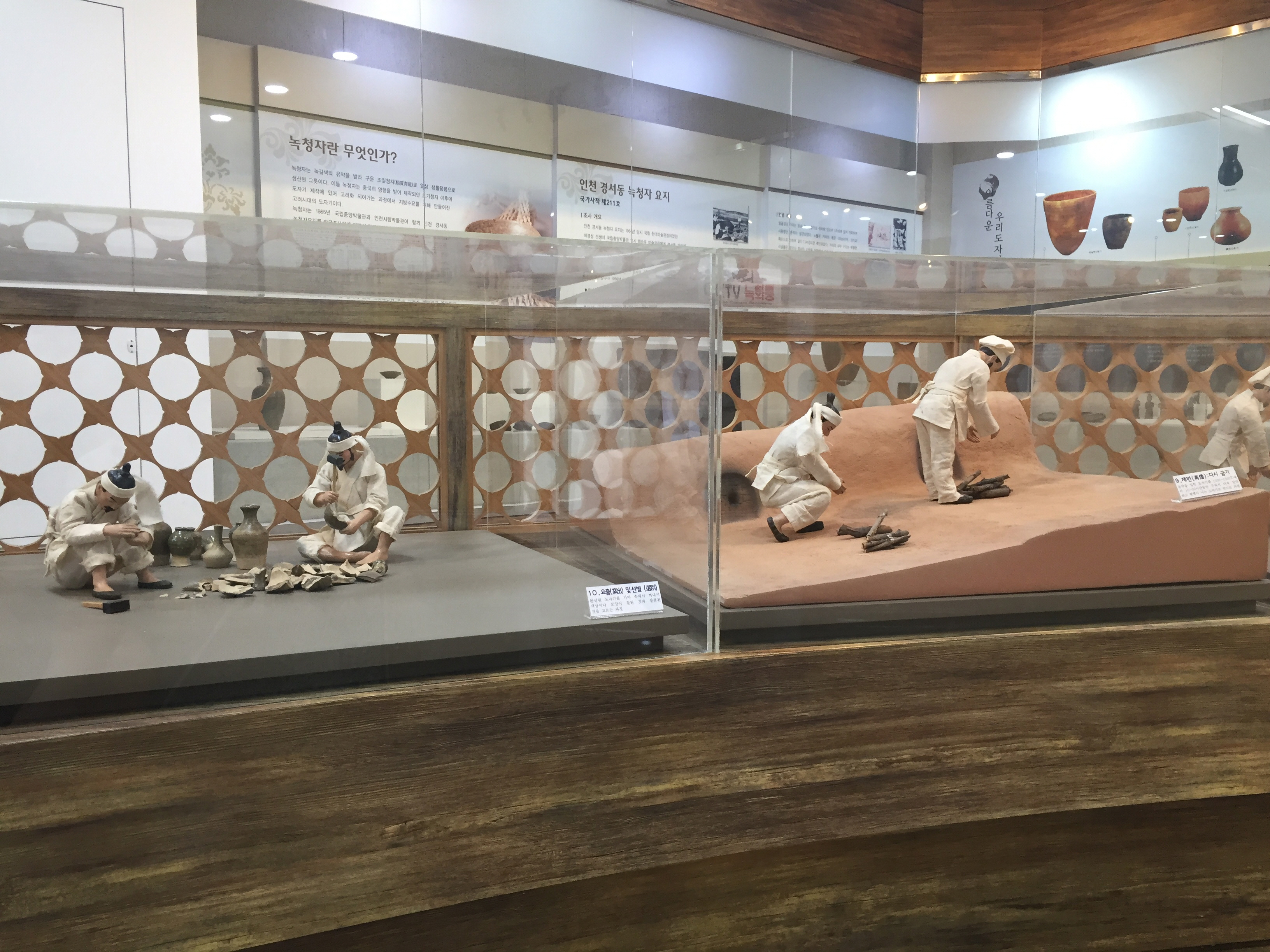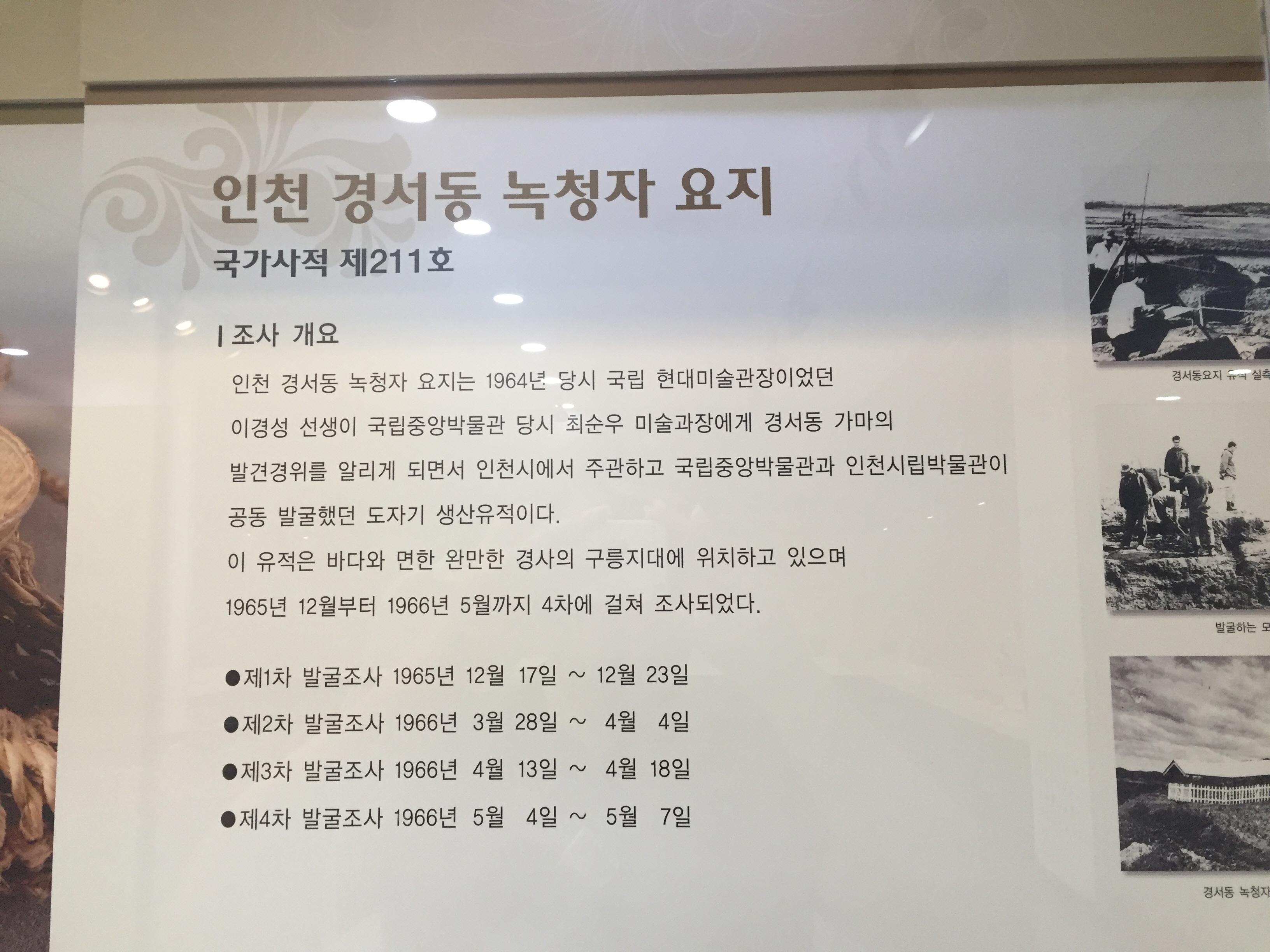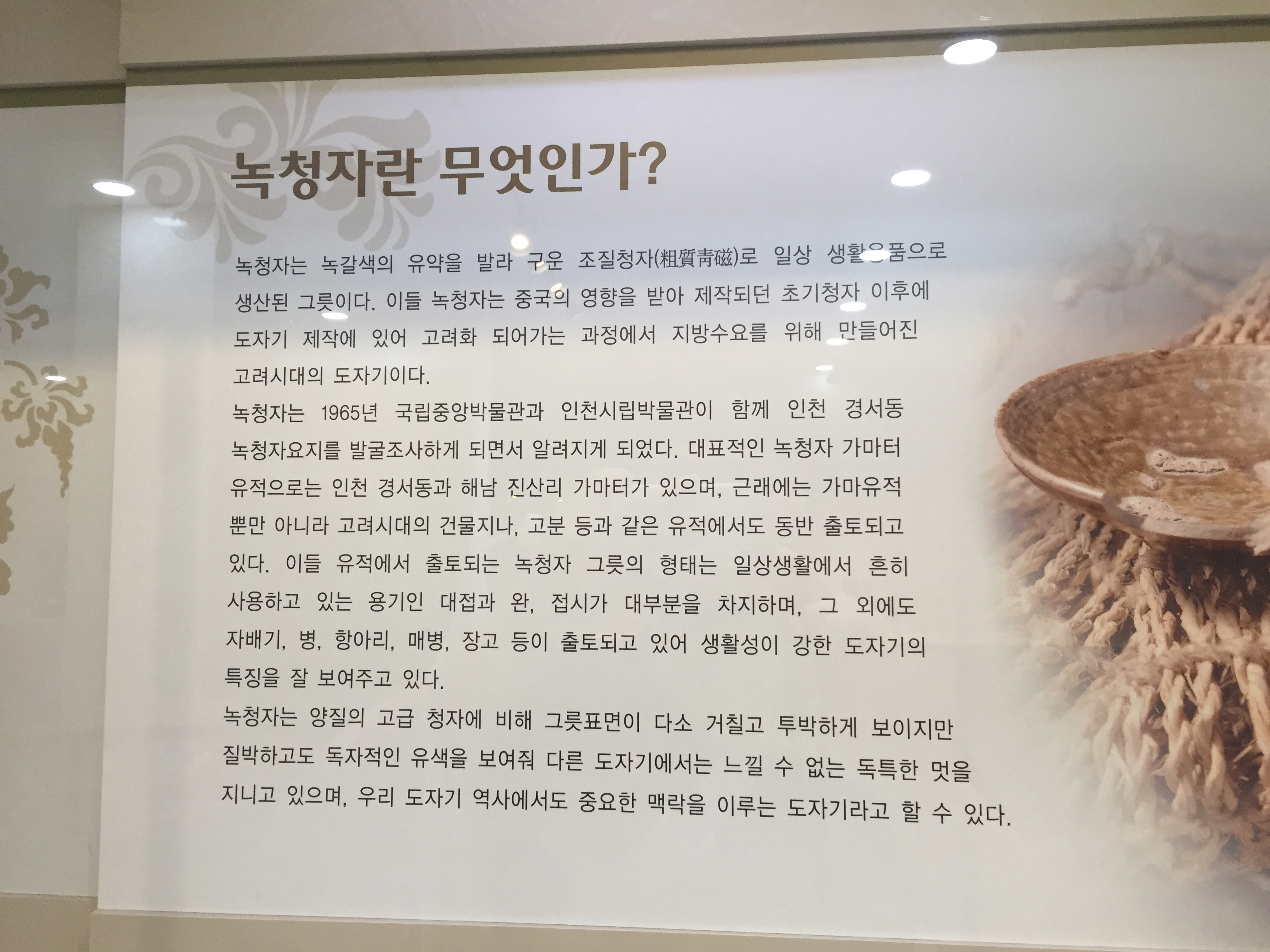 여기에 전시된 녹청자는 박물관 맞은편에 있는 인천 경서동 녹청자 요지에서 발굴된 도자기인데,