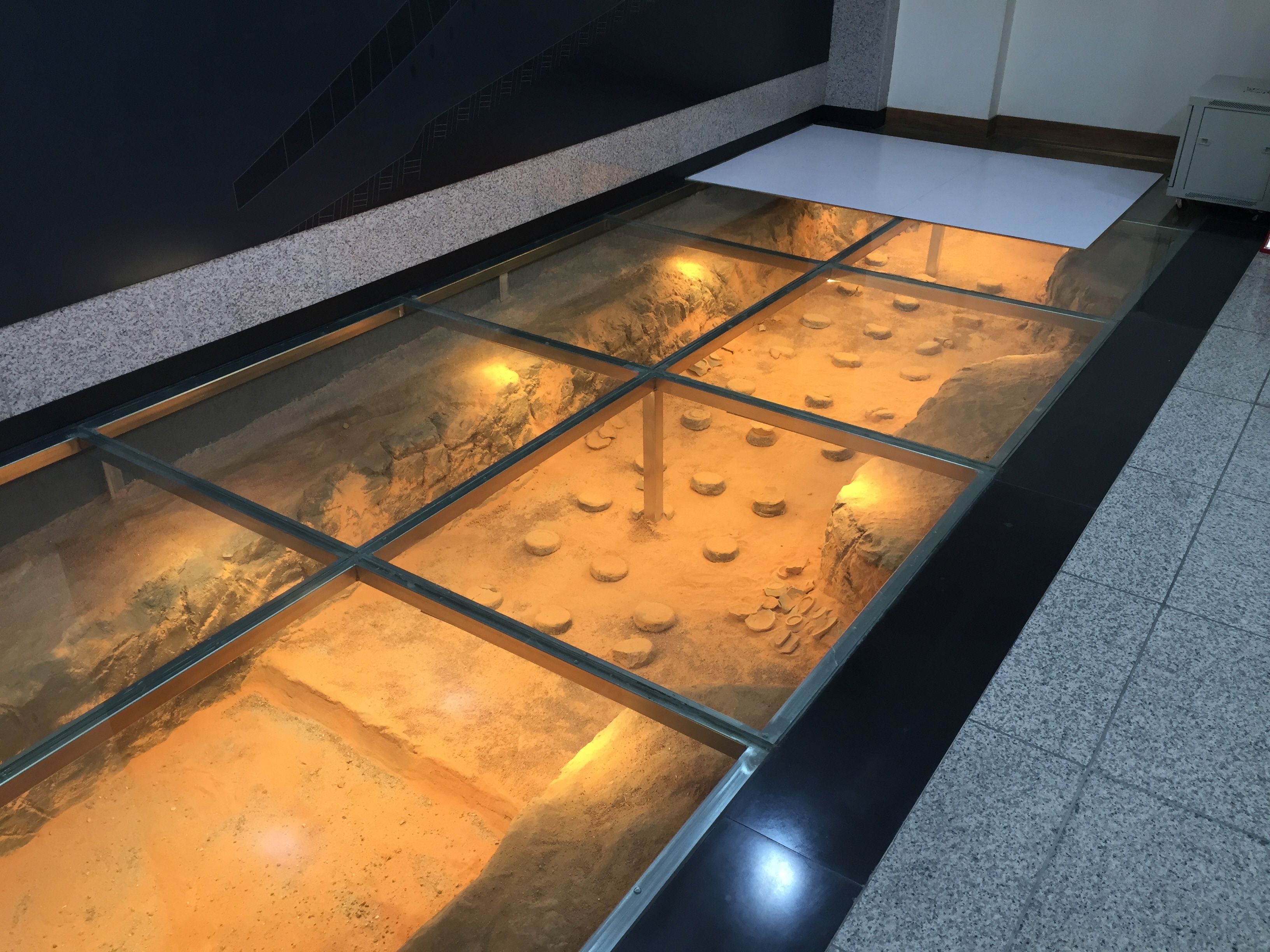 발굴 현장을 재현해서 박물관 바닥에 전시하고 있네요.