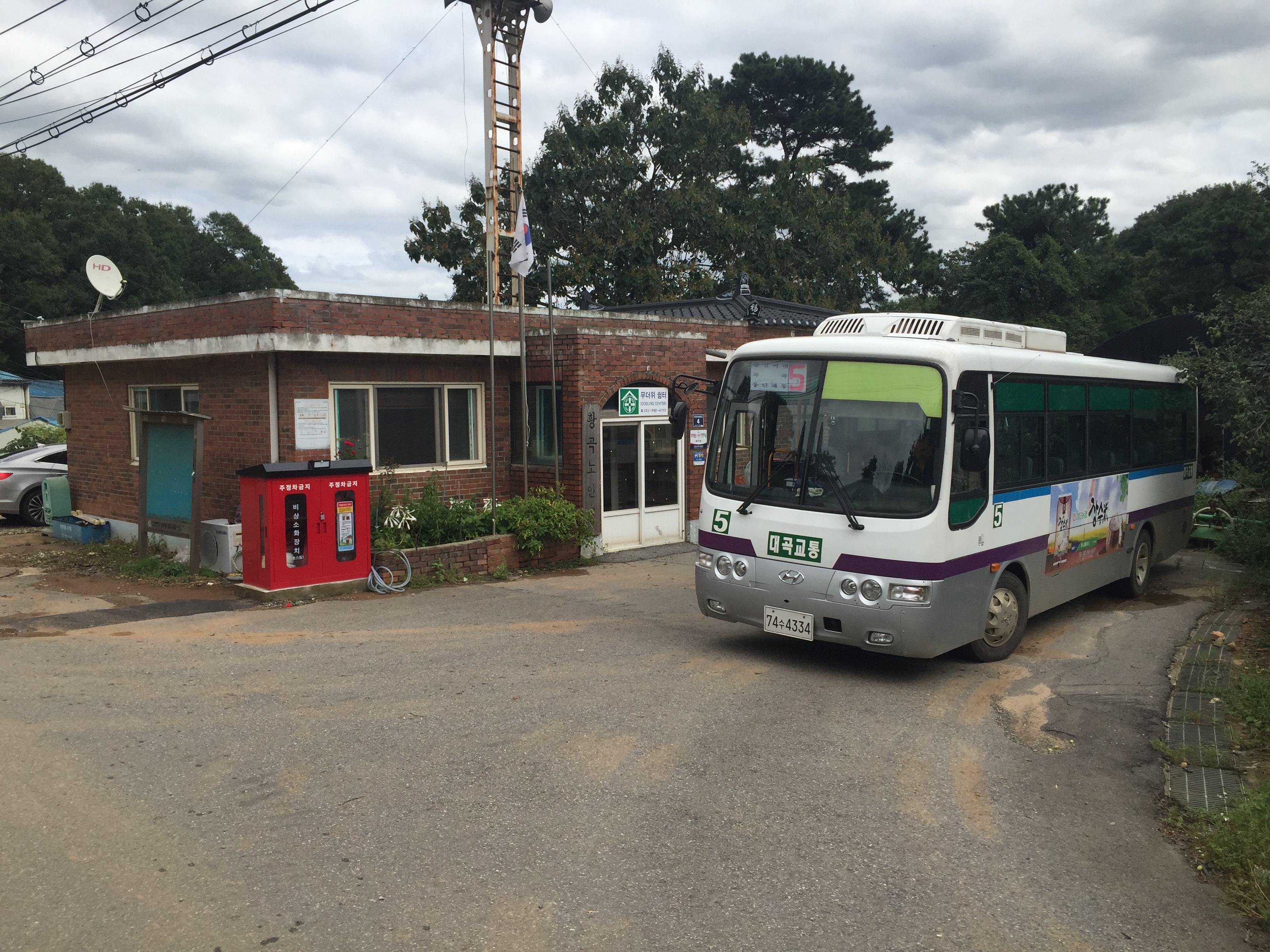 다시 황곡노인정으로 와서 버스 기사가 오기를 기다립니다.