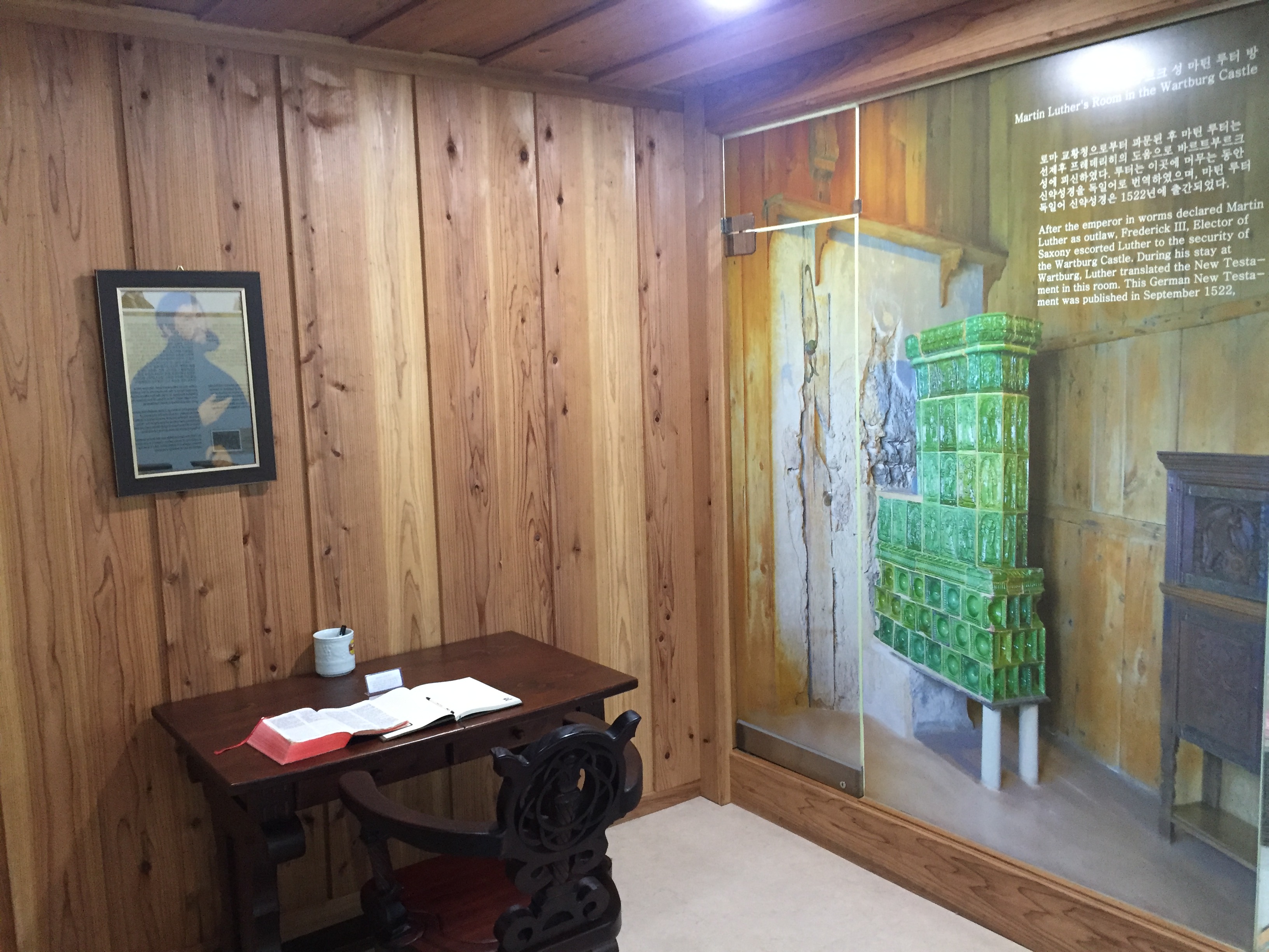 마르틴 루터가 성경을 번역하던 방을 재현한 공간도 있습니다.