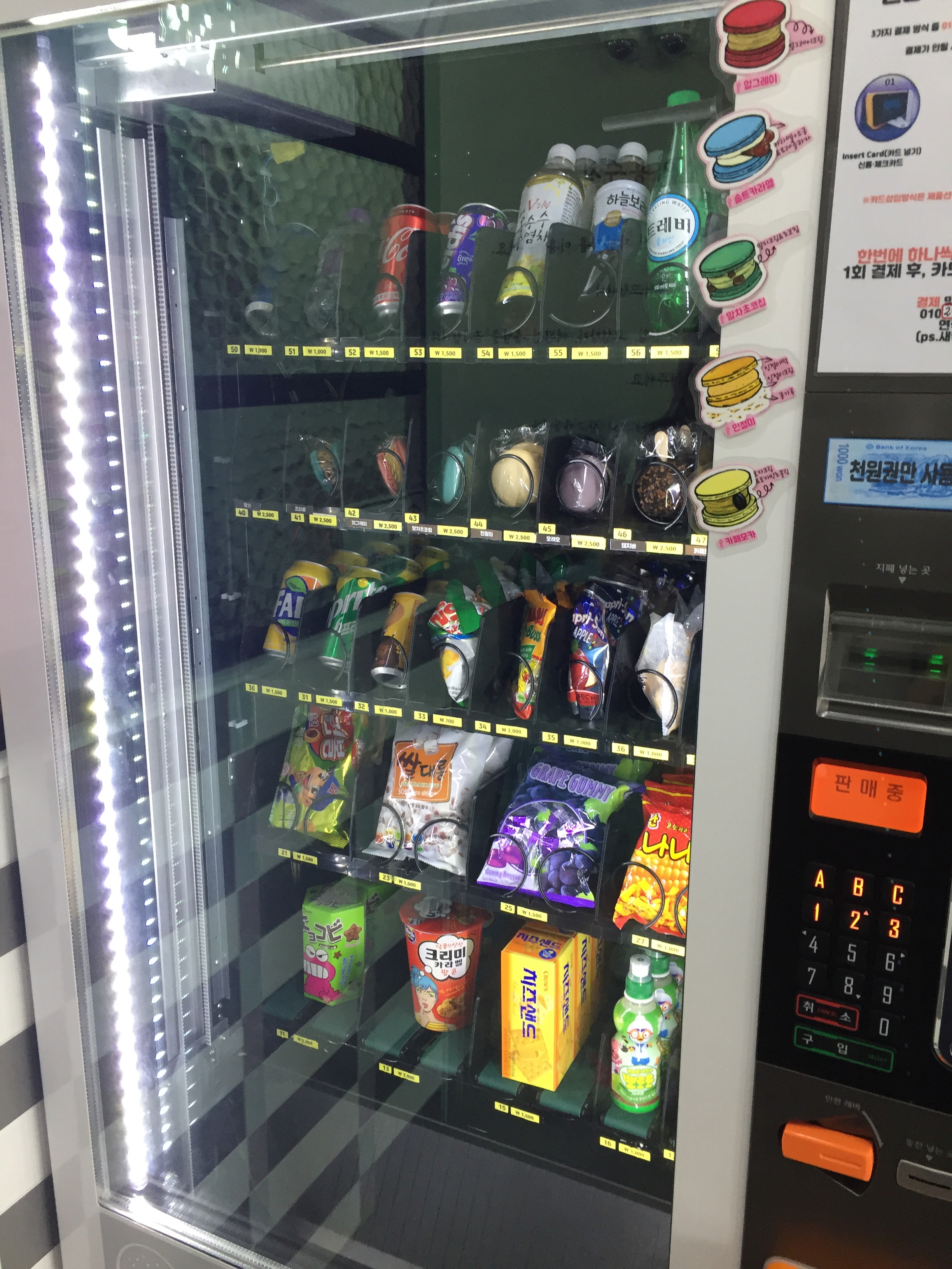 마카롱과 같은 간식이나 커피가 아닌 다른 음료는 옆에 있는 자판기에서 따로 살 수도 있습니다.