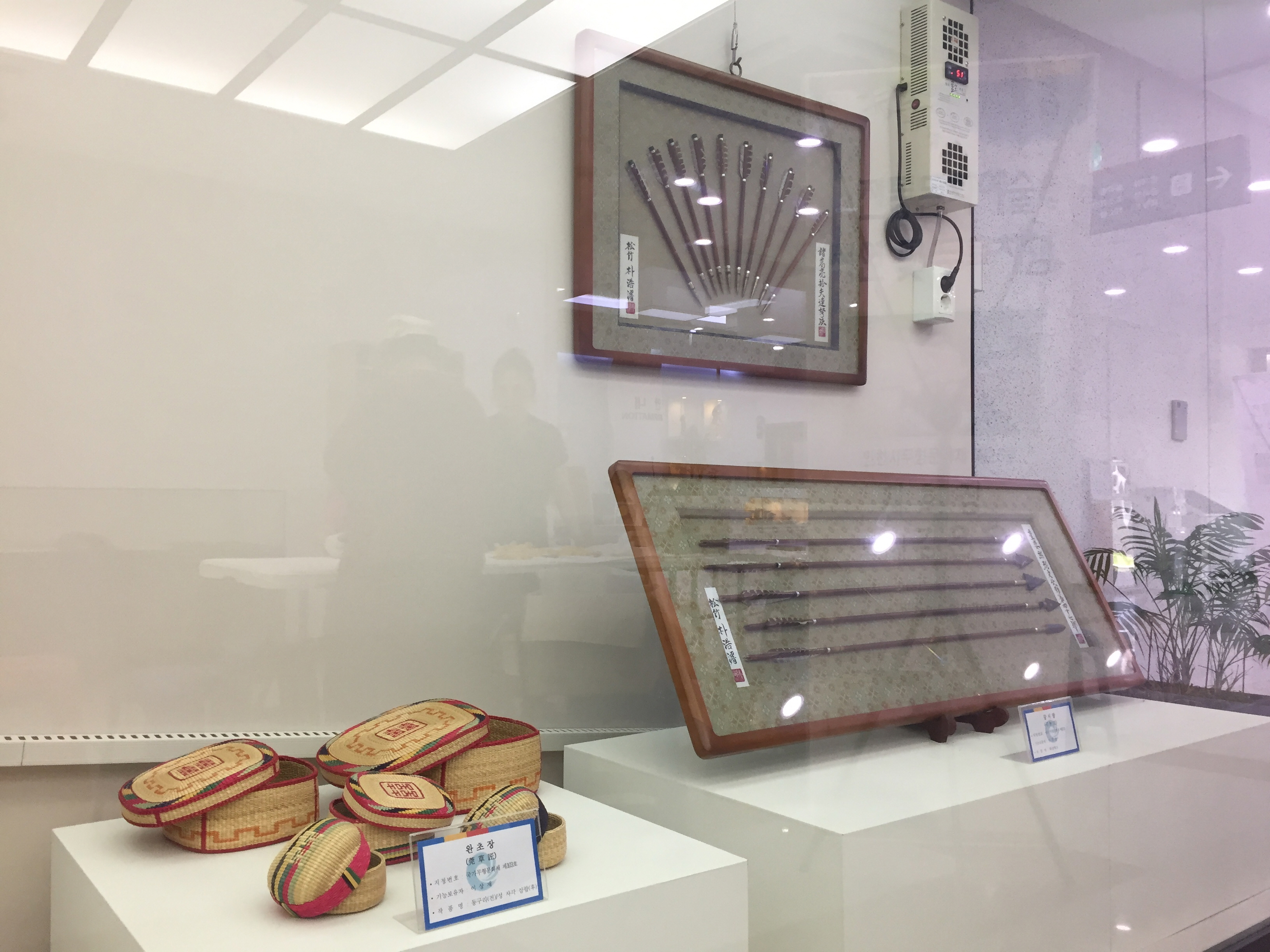 전수교육관 지하에 있는 무형문화재 전수자들의 작품을 둘러보다
