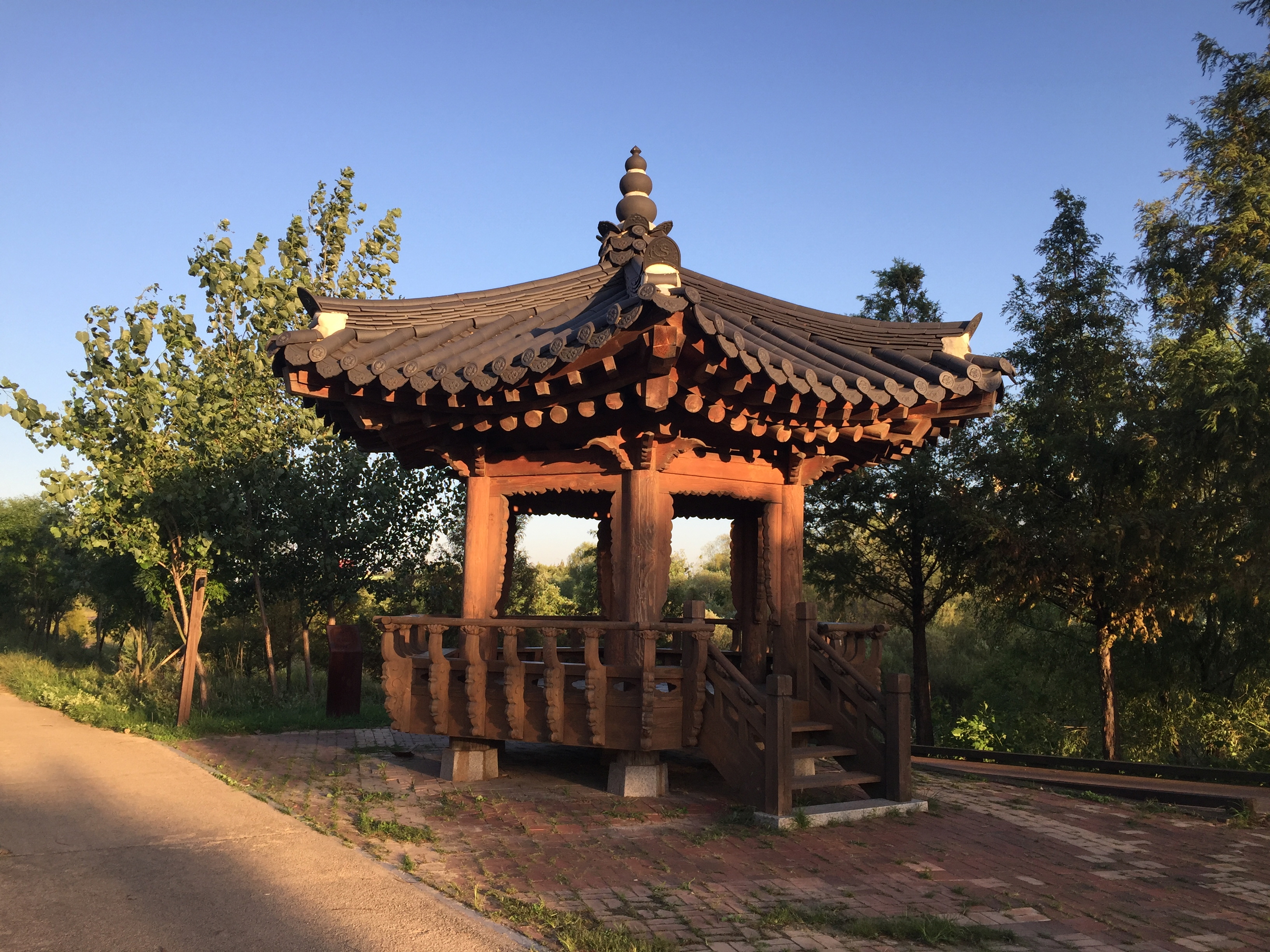 물꽃광장에 놓인 정자를 지나