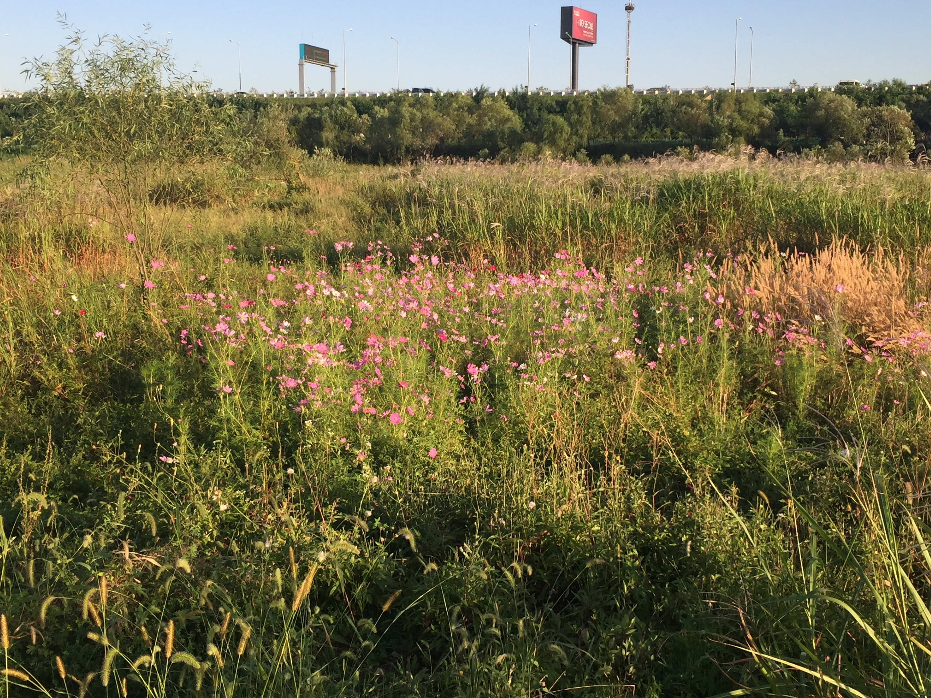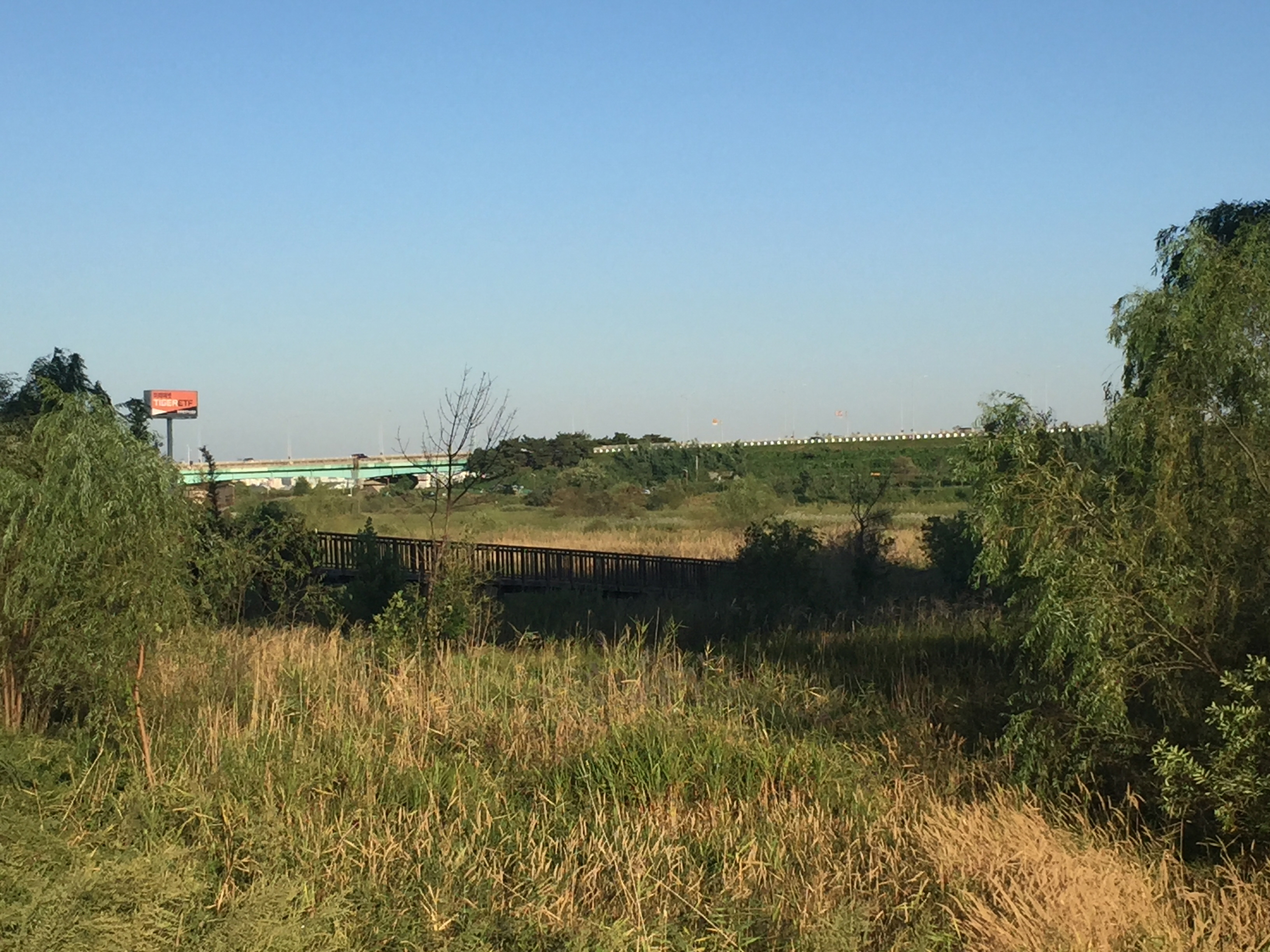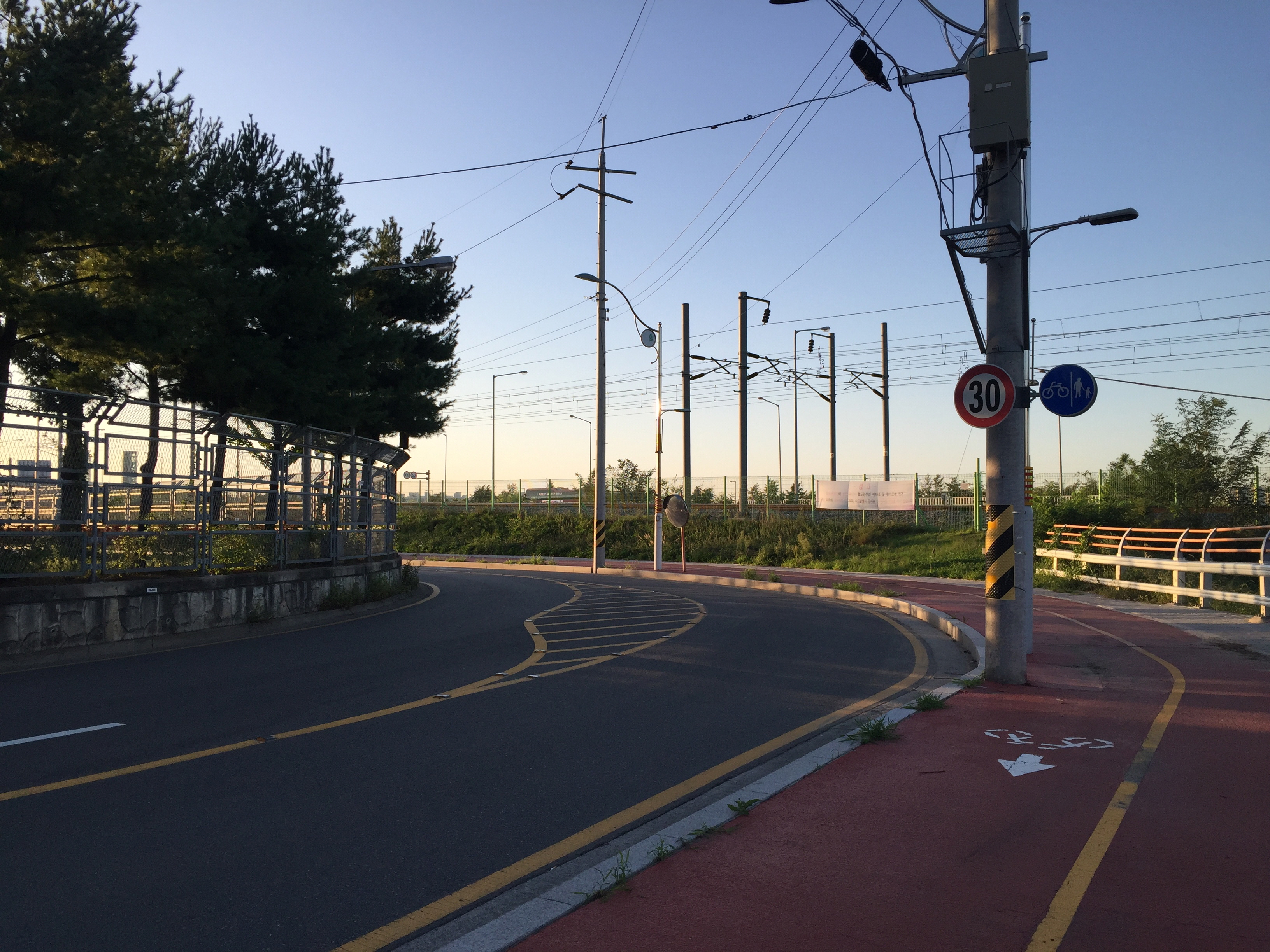 고속도로 옆 길을 따라 서부간선수로 방향으로 걸어가
