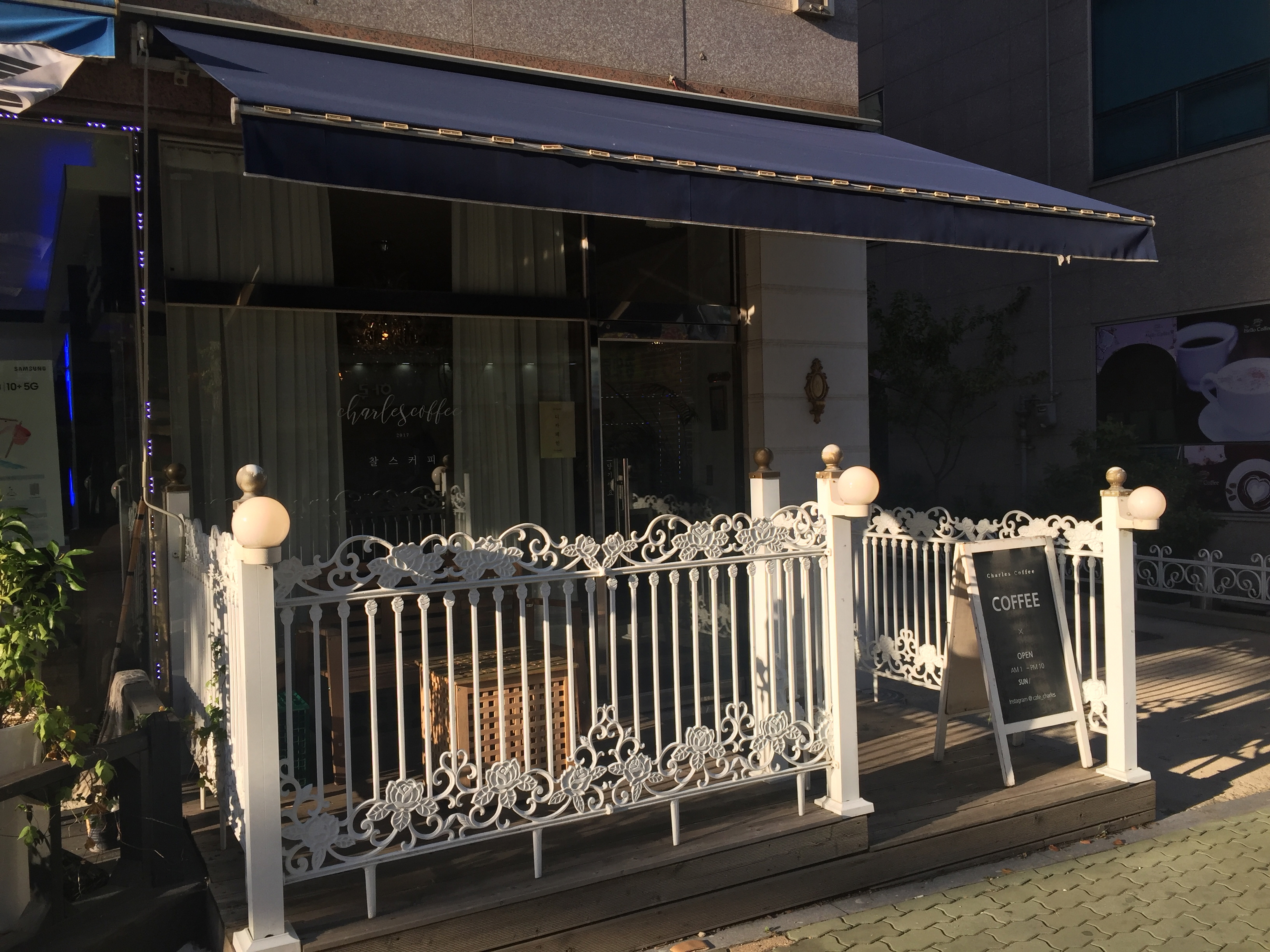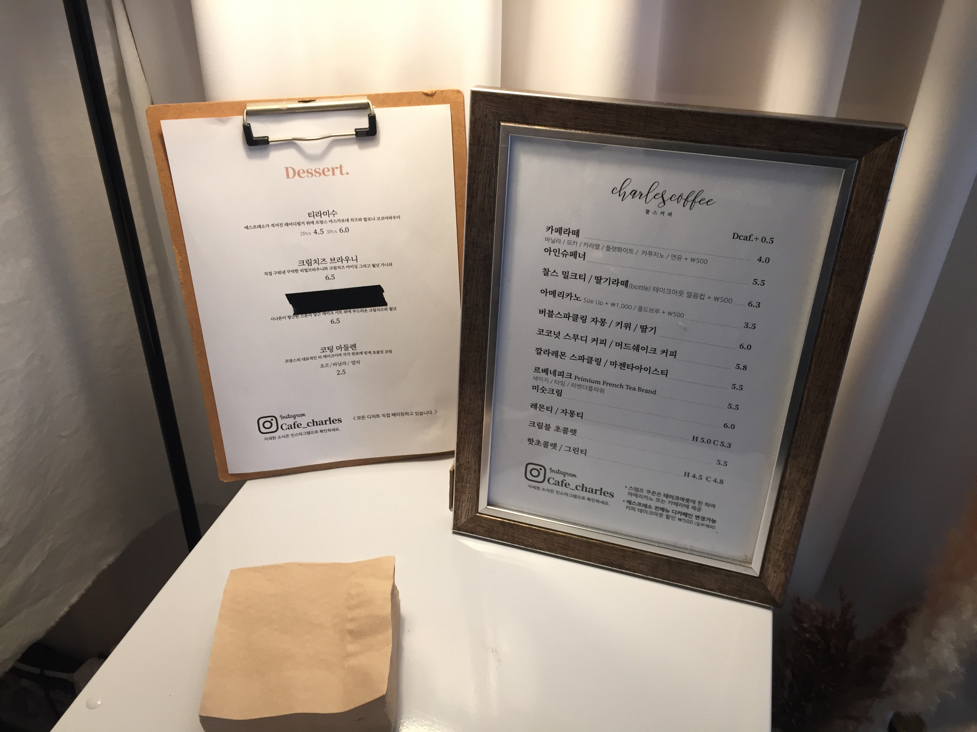 버스 안에서 미리 검색을 해서 정류장 길 건너 찰스커피라는 카페에 왔는데요.