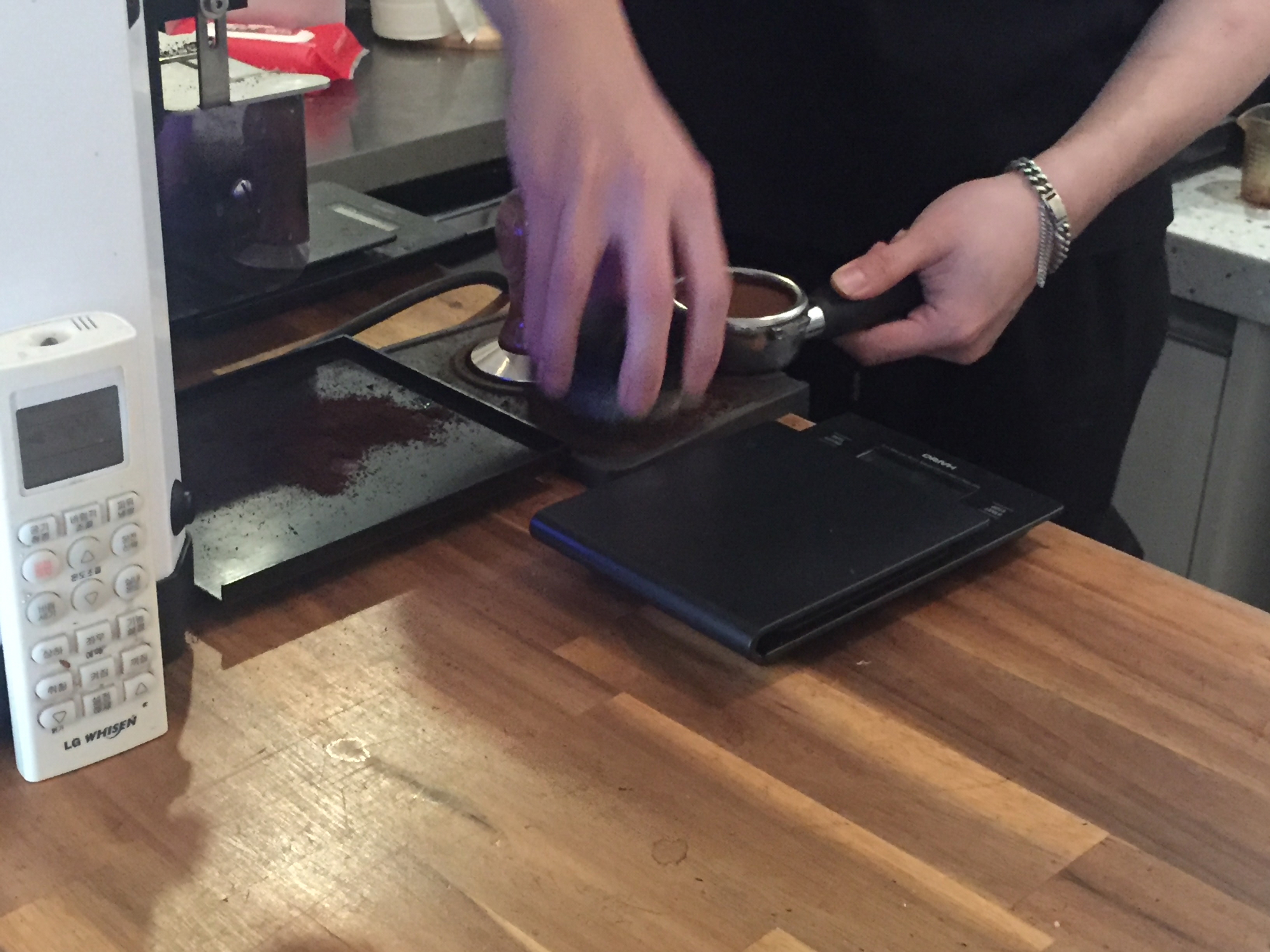 전자저울까지 사용해가면서 계량을 해 만든 아메리카노를 챙기고