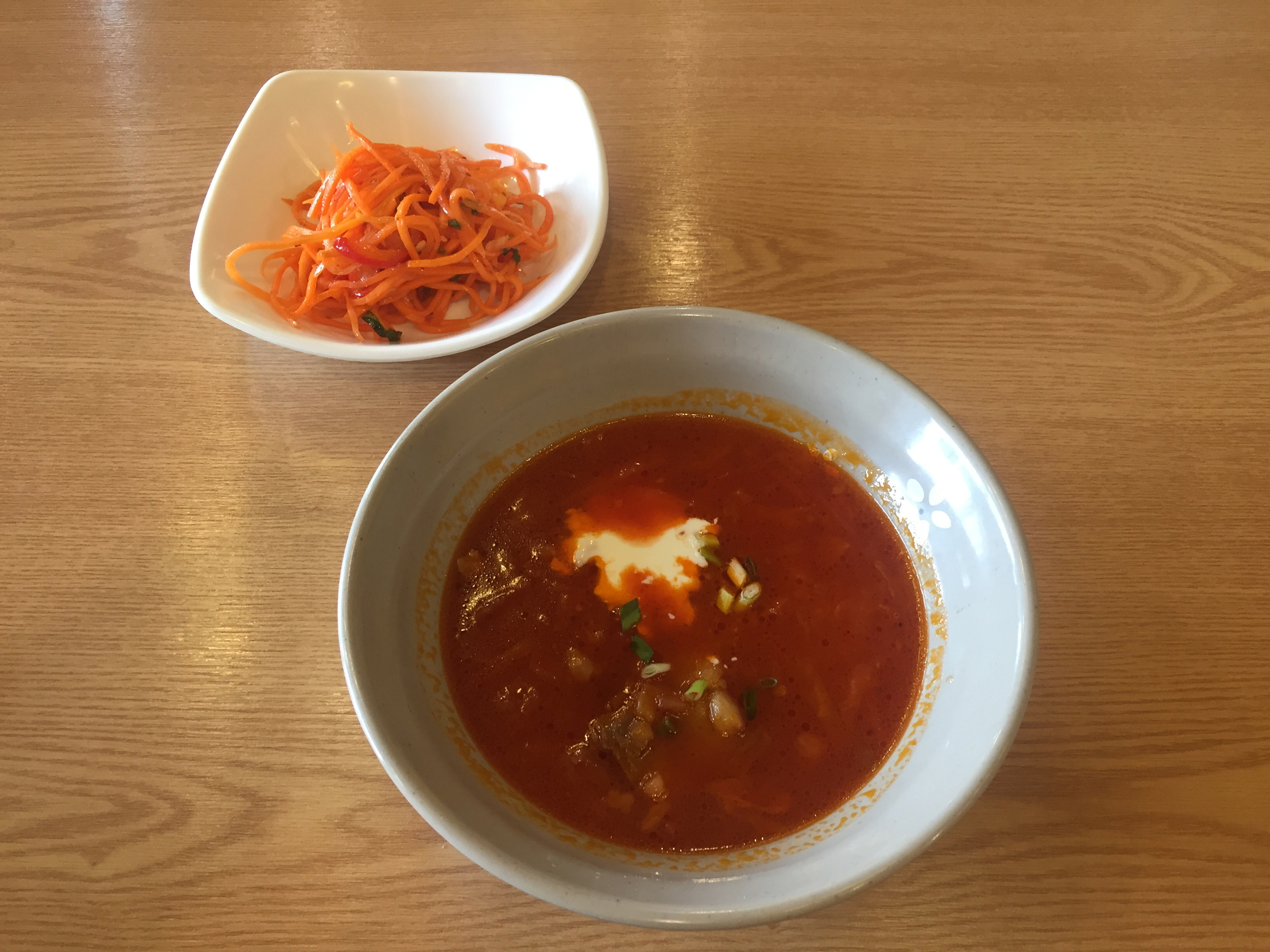 우선 한국 당근과 함께 보르시(Борщ)가 나왔습니다.