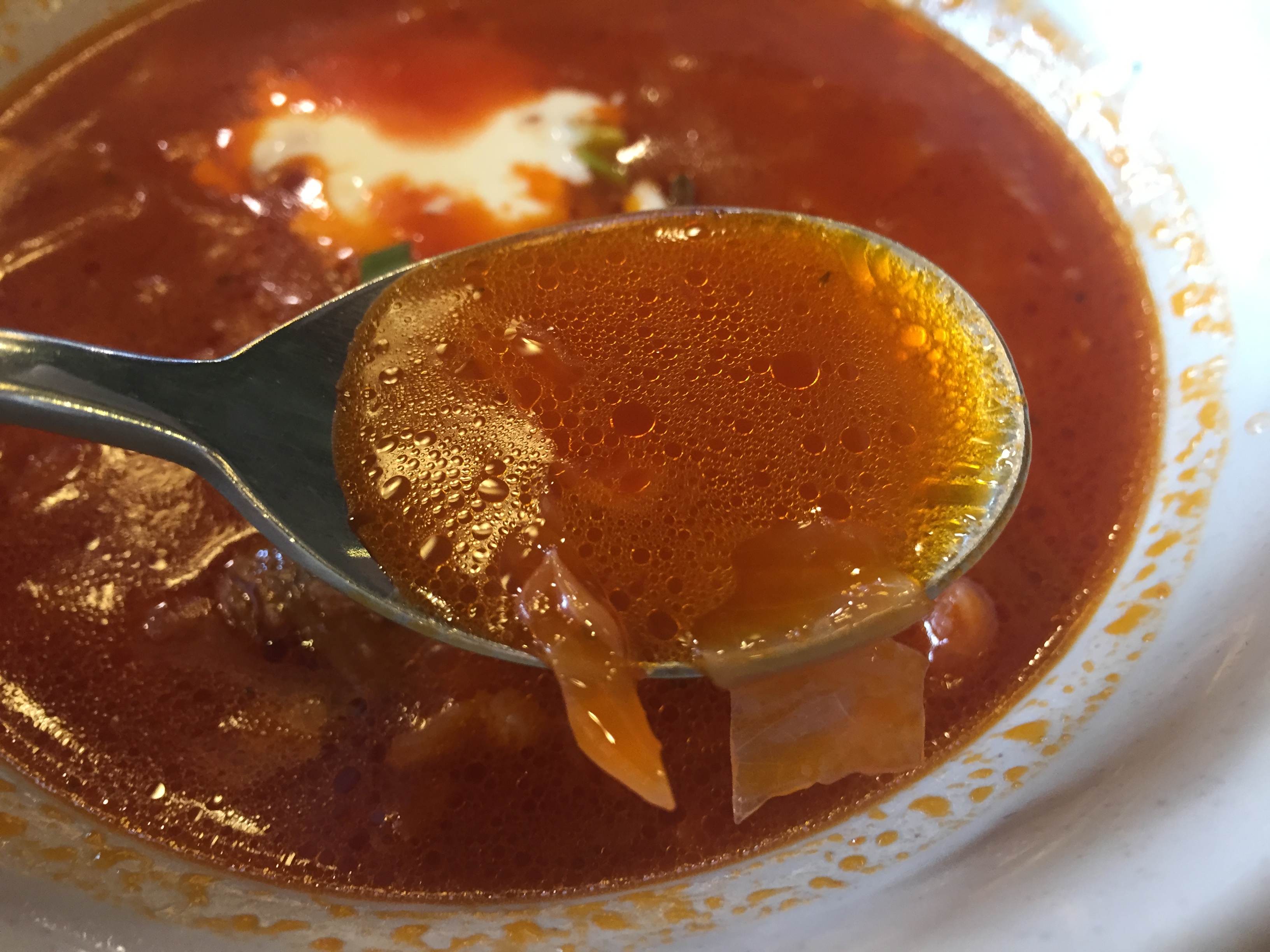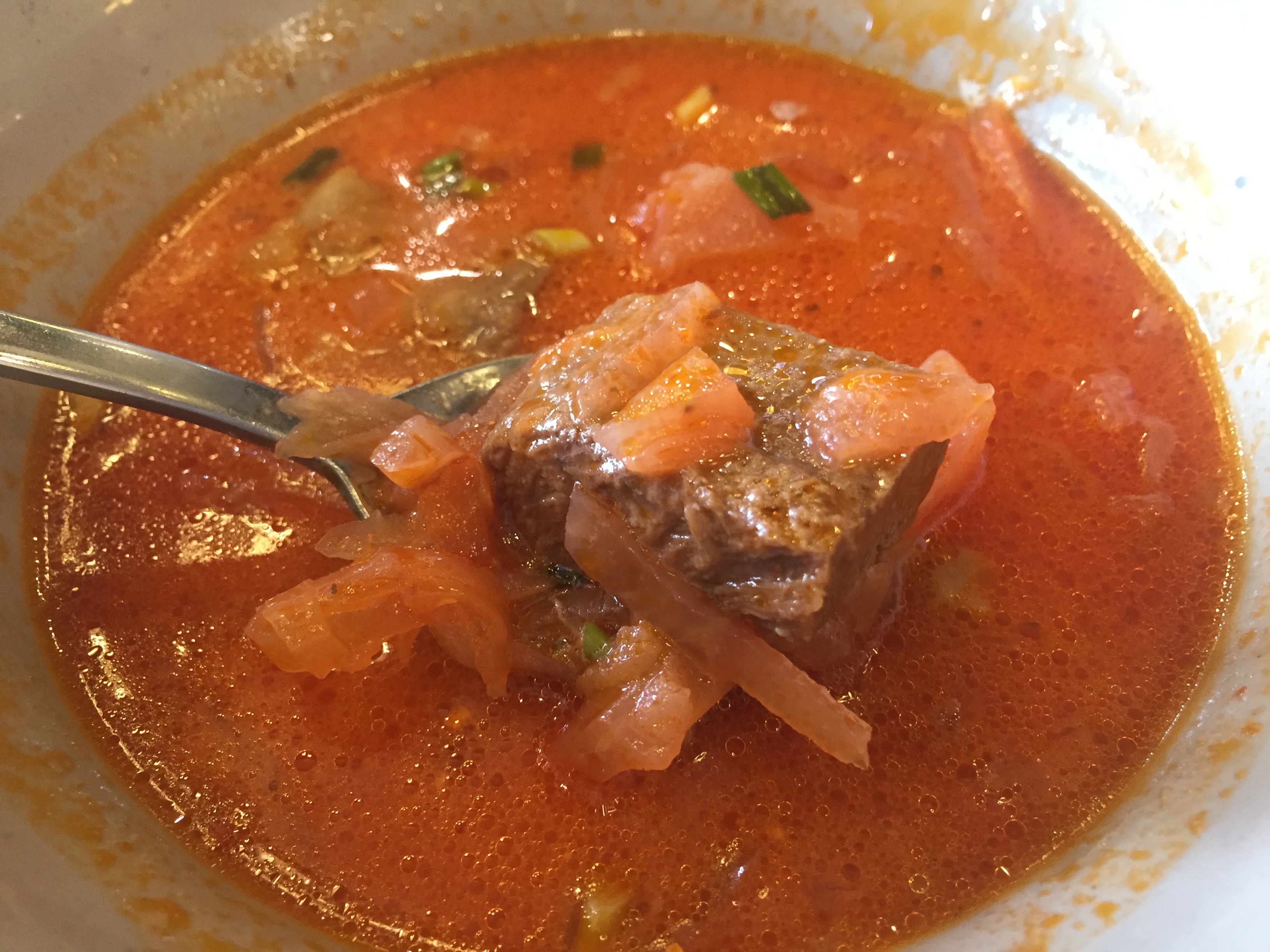 실제로는 전혀 맵지 않은 고기 수프입니다.