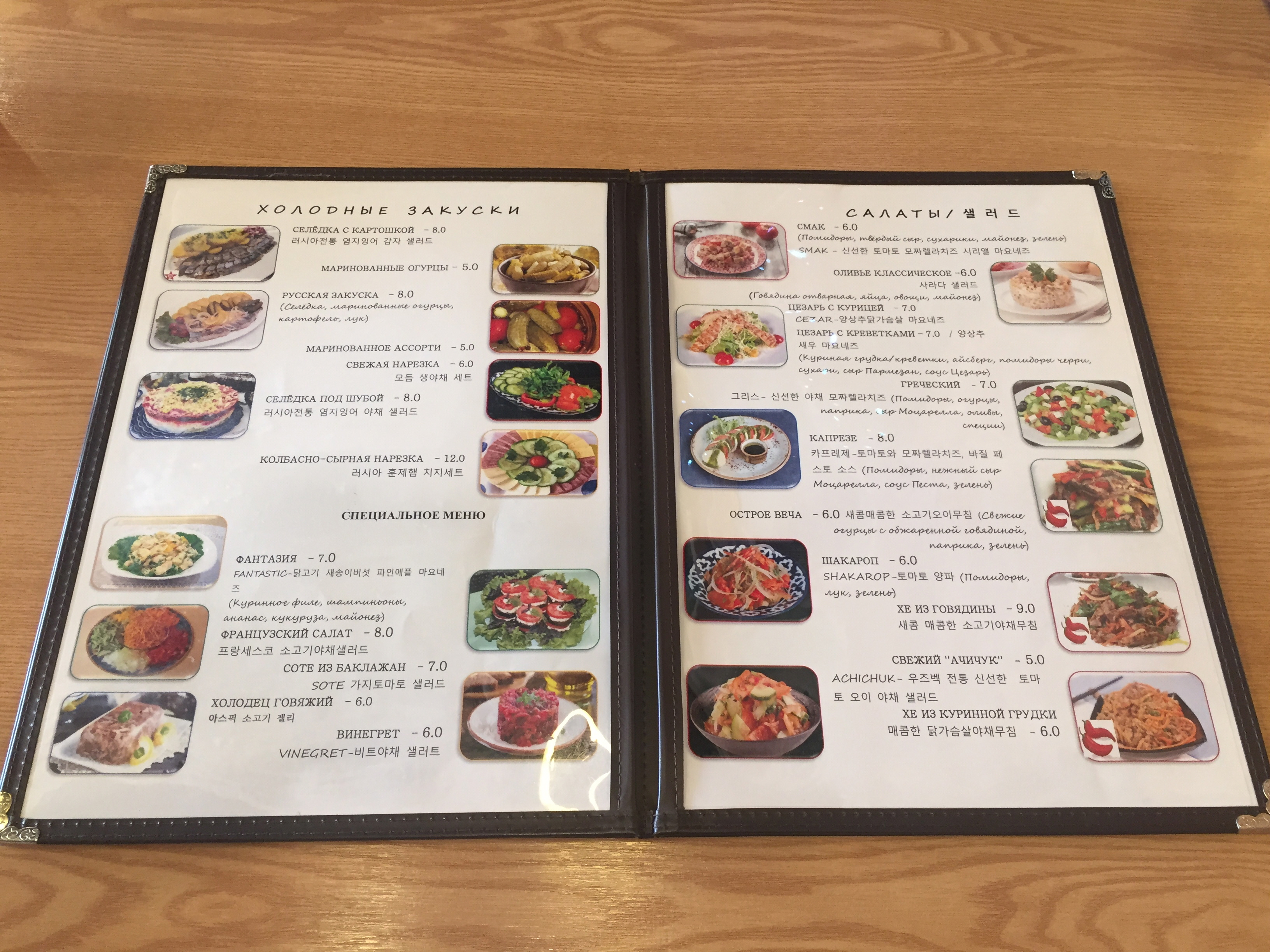 다행히 키릴 문자 아래에 한국어로 풀어쓴 요리 설명이 적혀 있어 주문하는 게 그다지 어렵지는 않습니다.