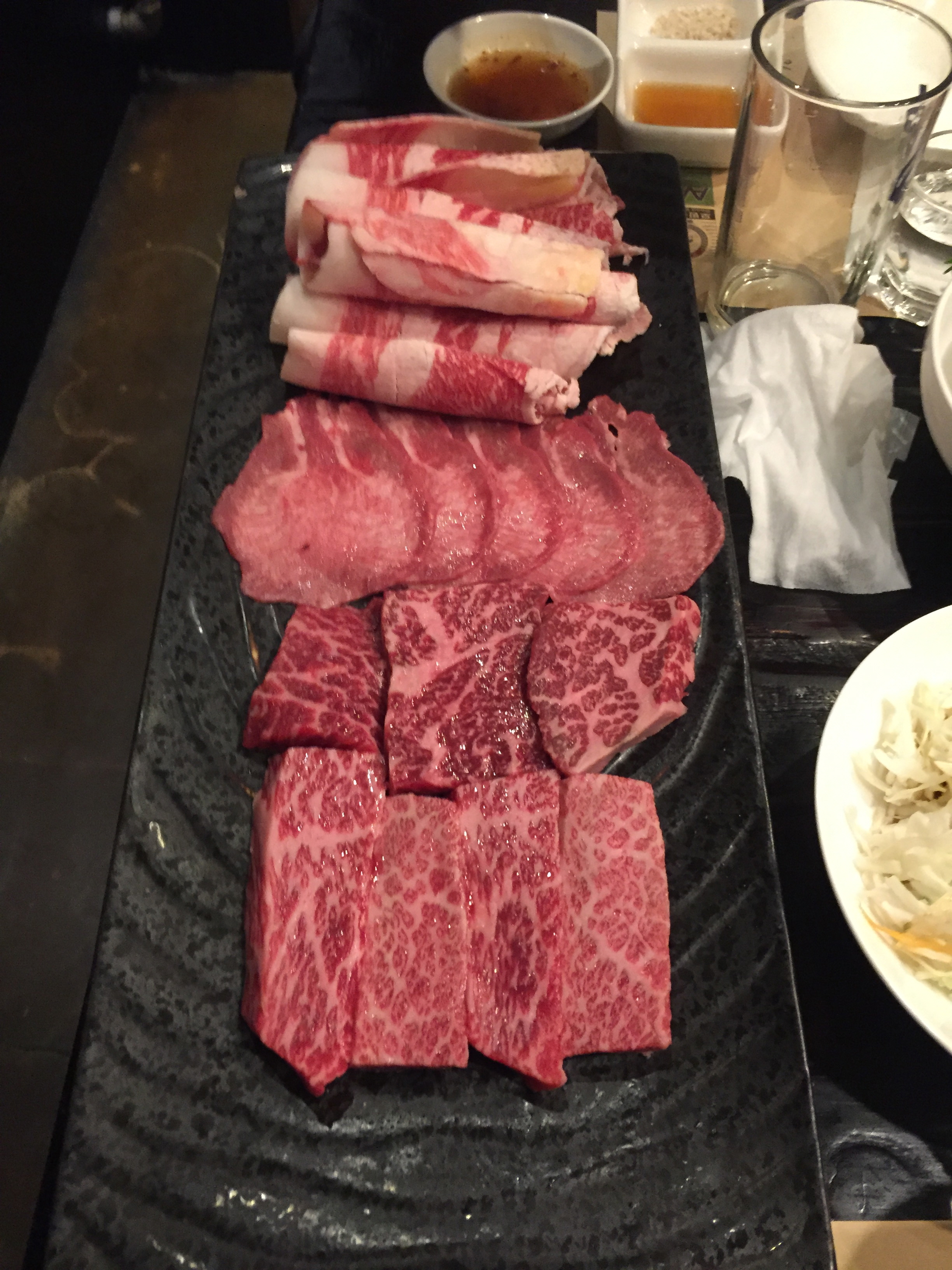 식탁에는 양대창, 염통과 같은 호르몬야키 재료가 올라왔습니다.