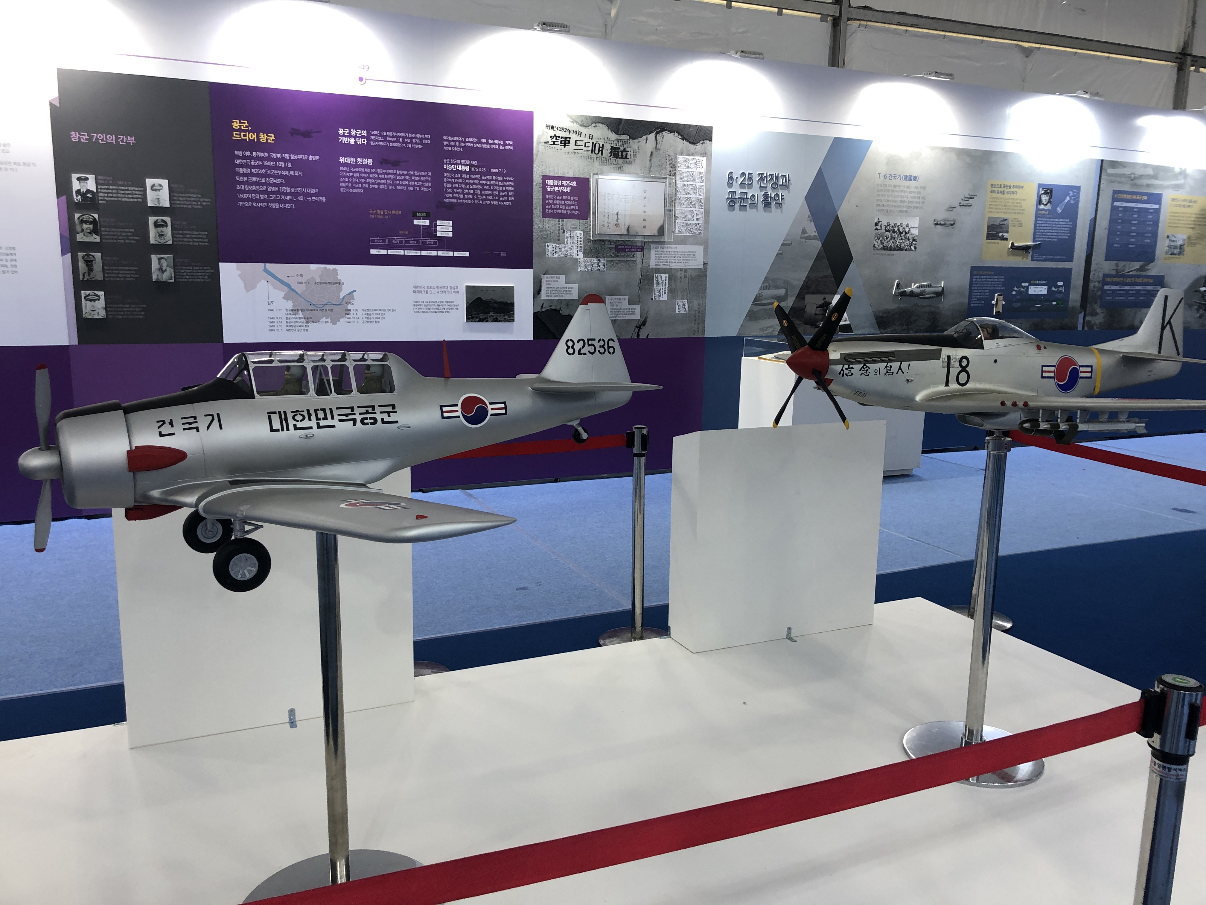 공군 창군 70주년과 관련된 공군 역사 전시물을 봅니다.