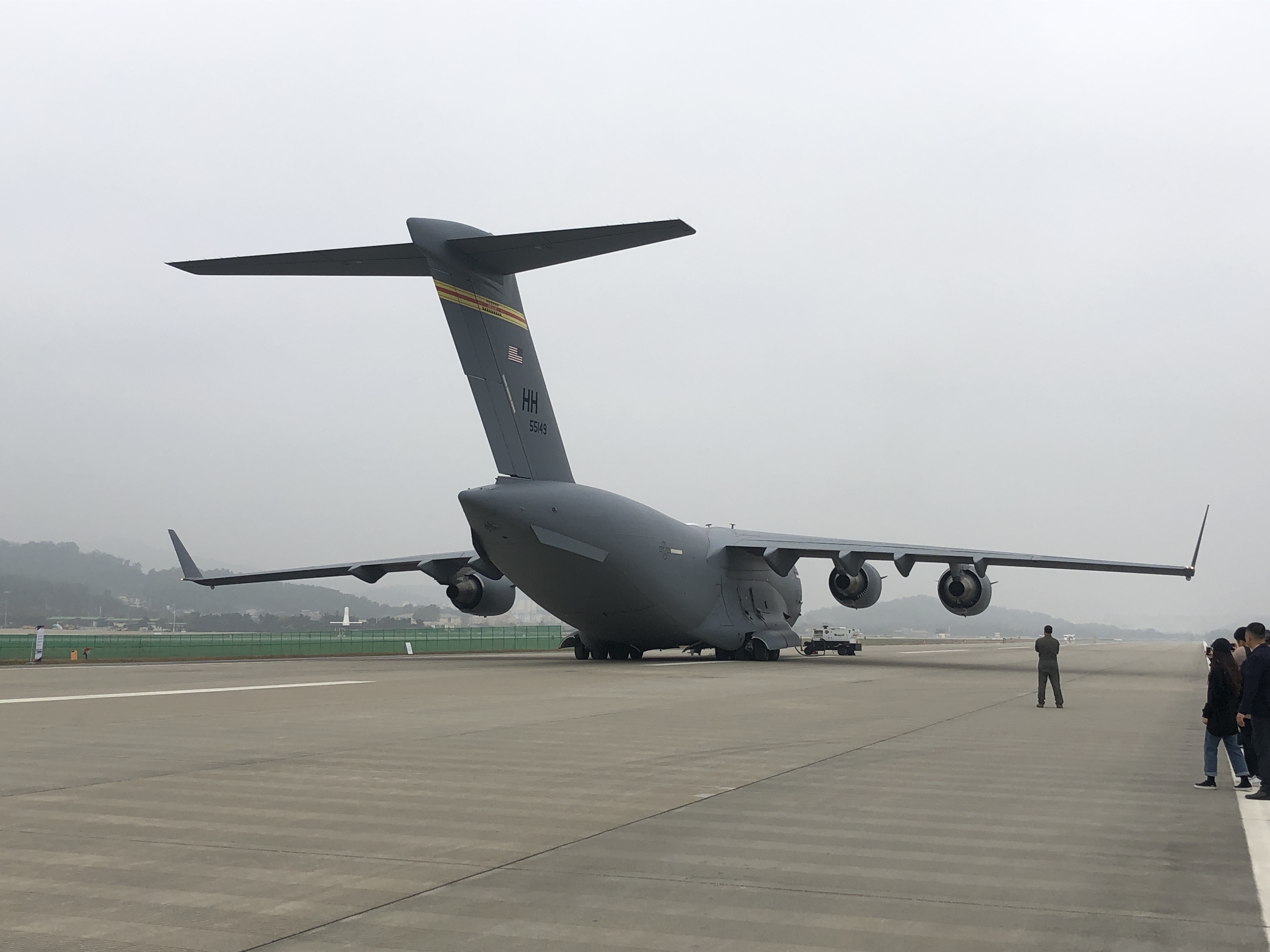 그 뒤에는 C-17 글로브마스터Ⅲ가 굉음을 내며 기름을 채우고 있습니다.