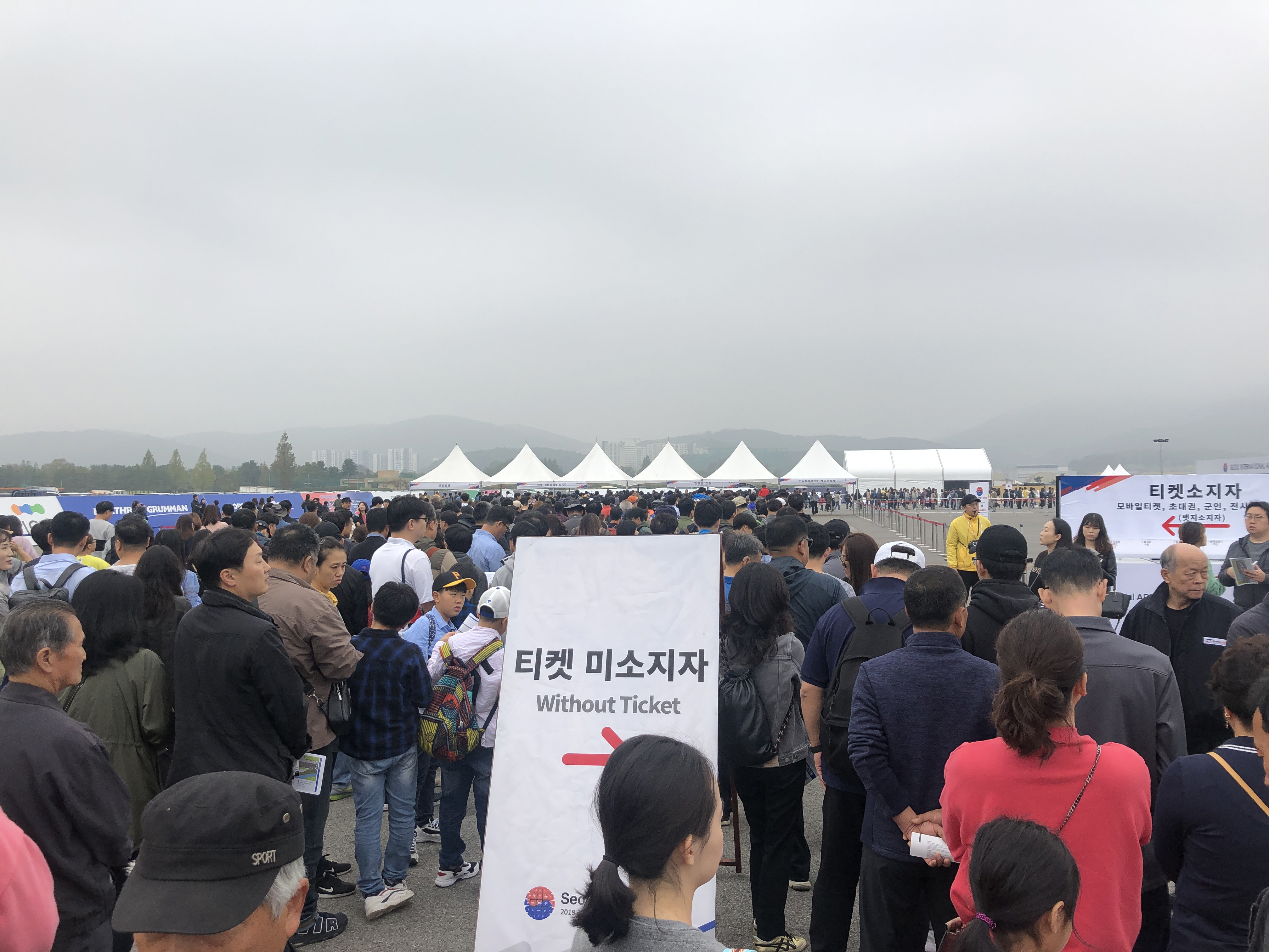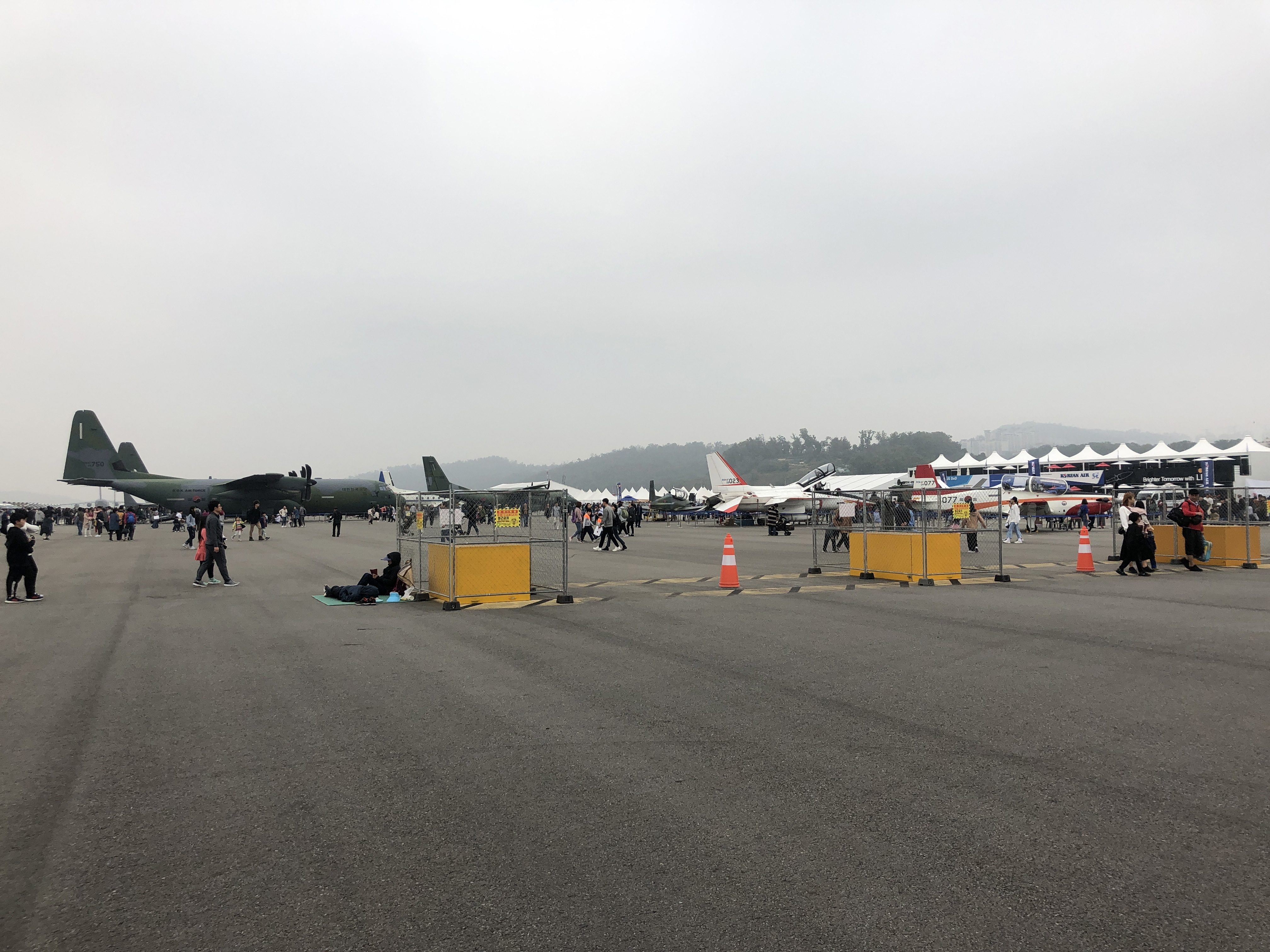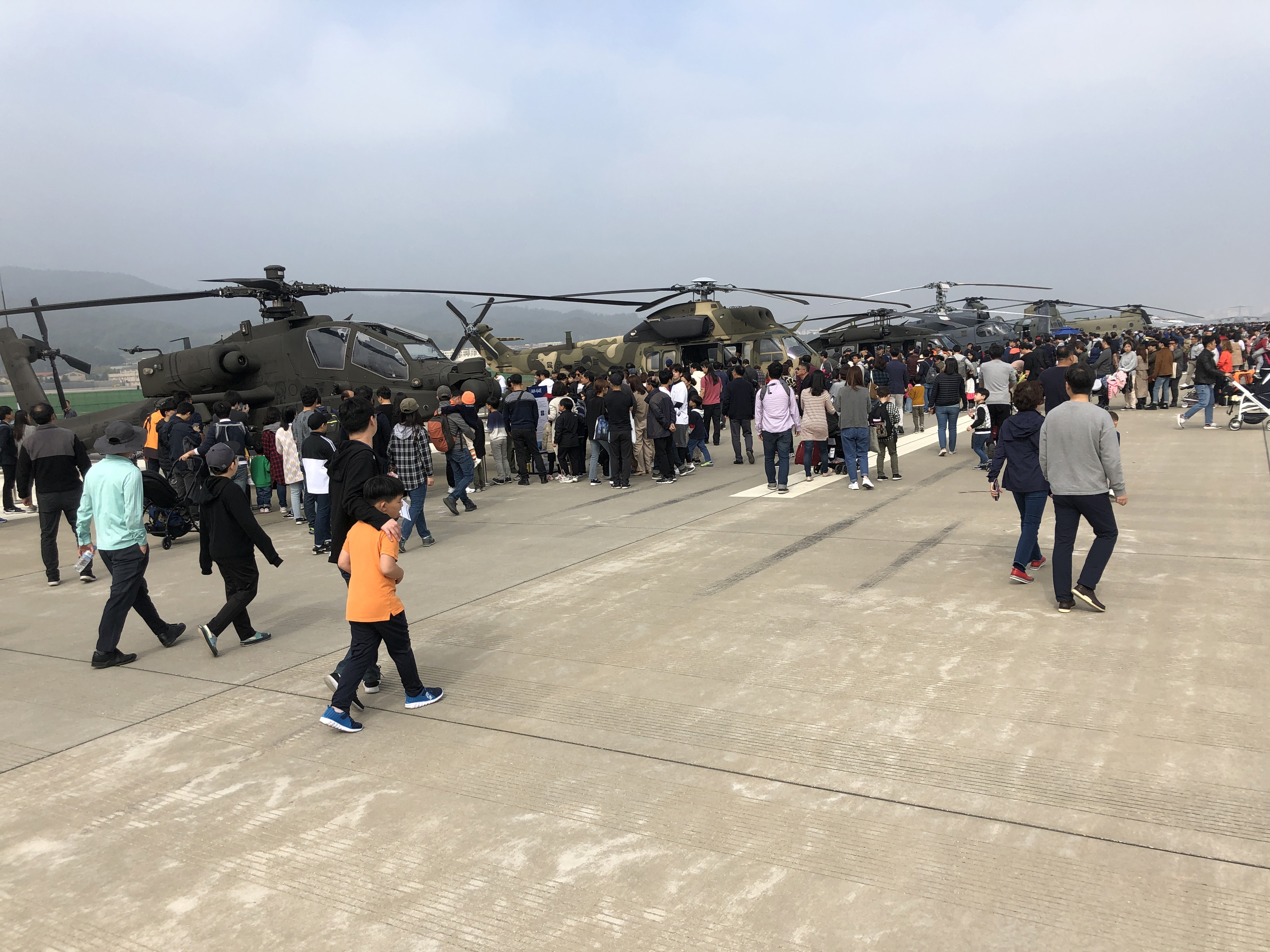 사람들이 너무 많이 모여 헬기와 지상병기는 가볍게 둘러만 보다