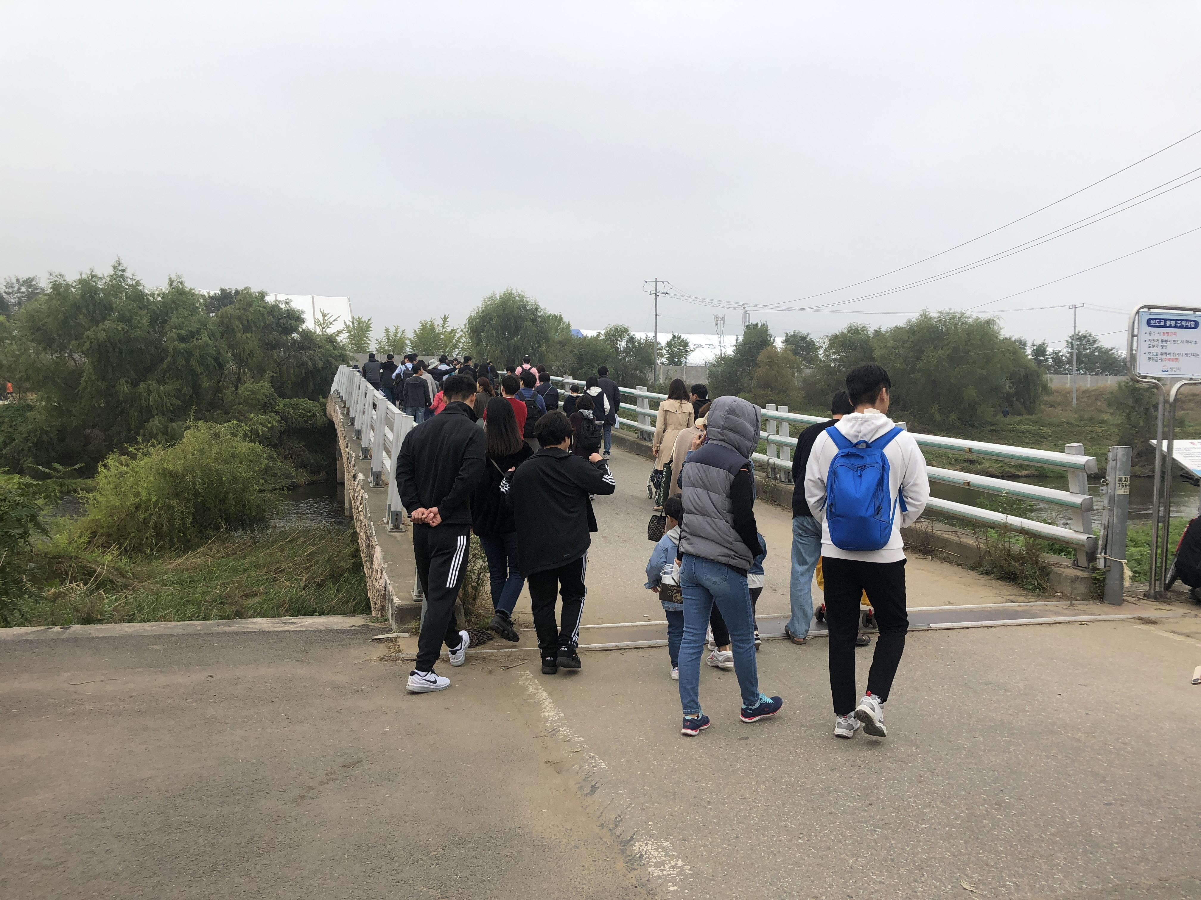 탄천 임시 정류장에 내린 뒤 행사장까지 걸어갑니다.