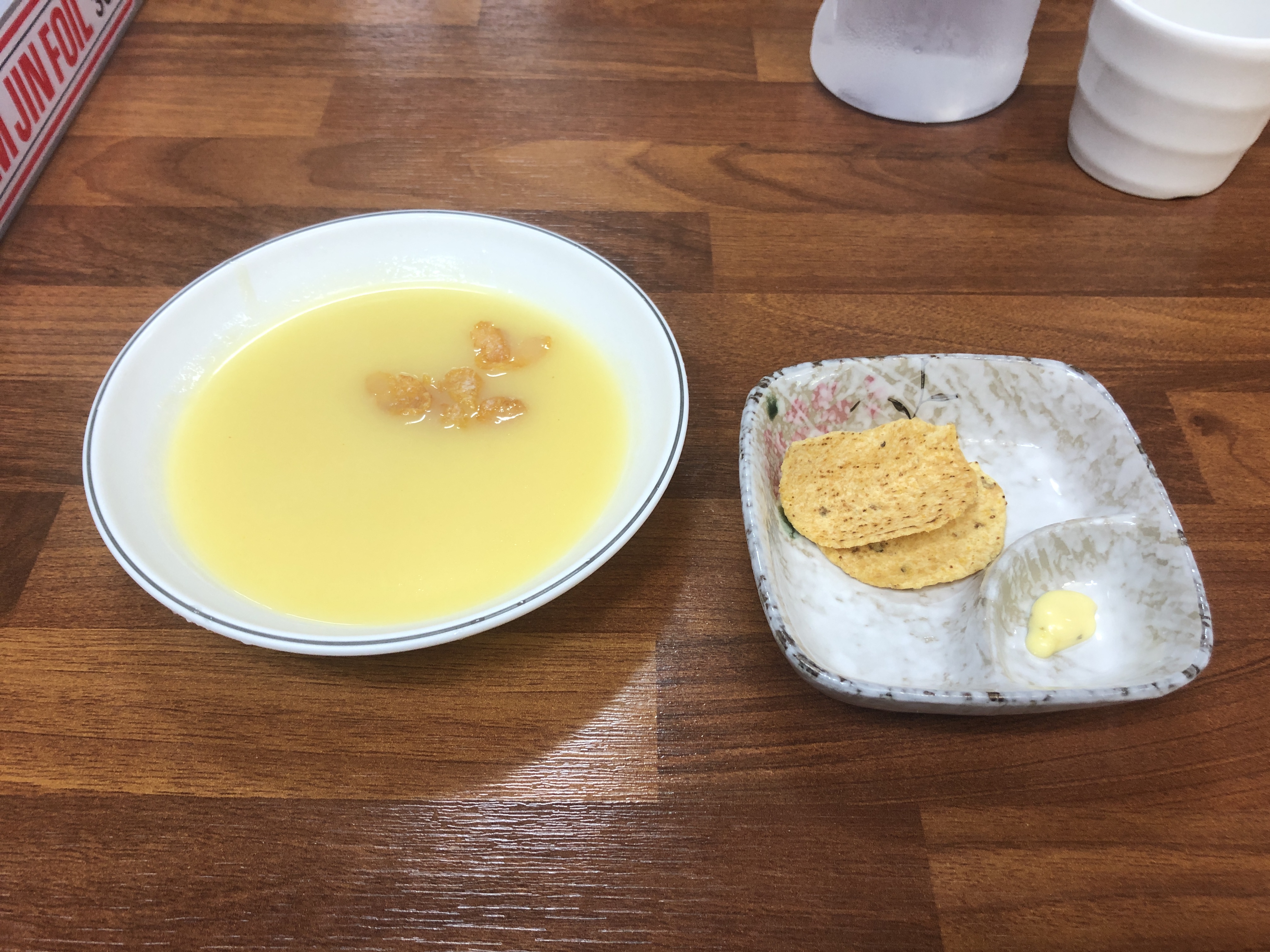 주문을 마치니 경양식집 스타일로 스프가 나오고