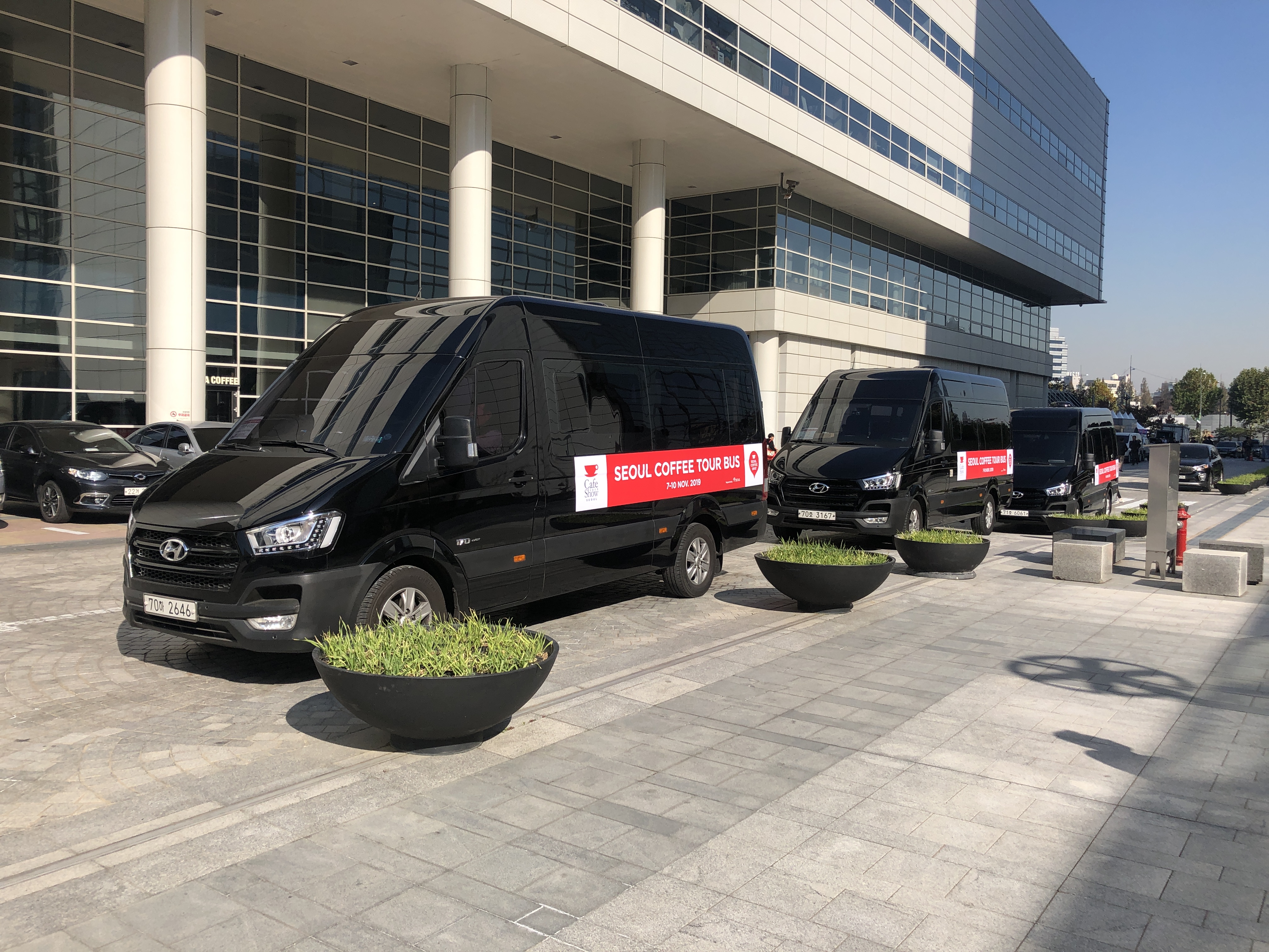 서울카페쇼에서 마련한 승합차에 탑니다.