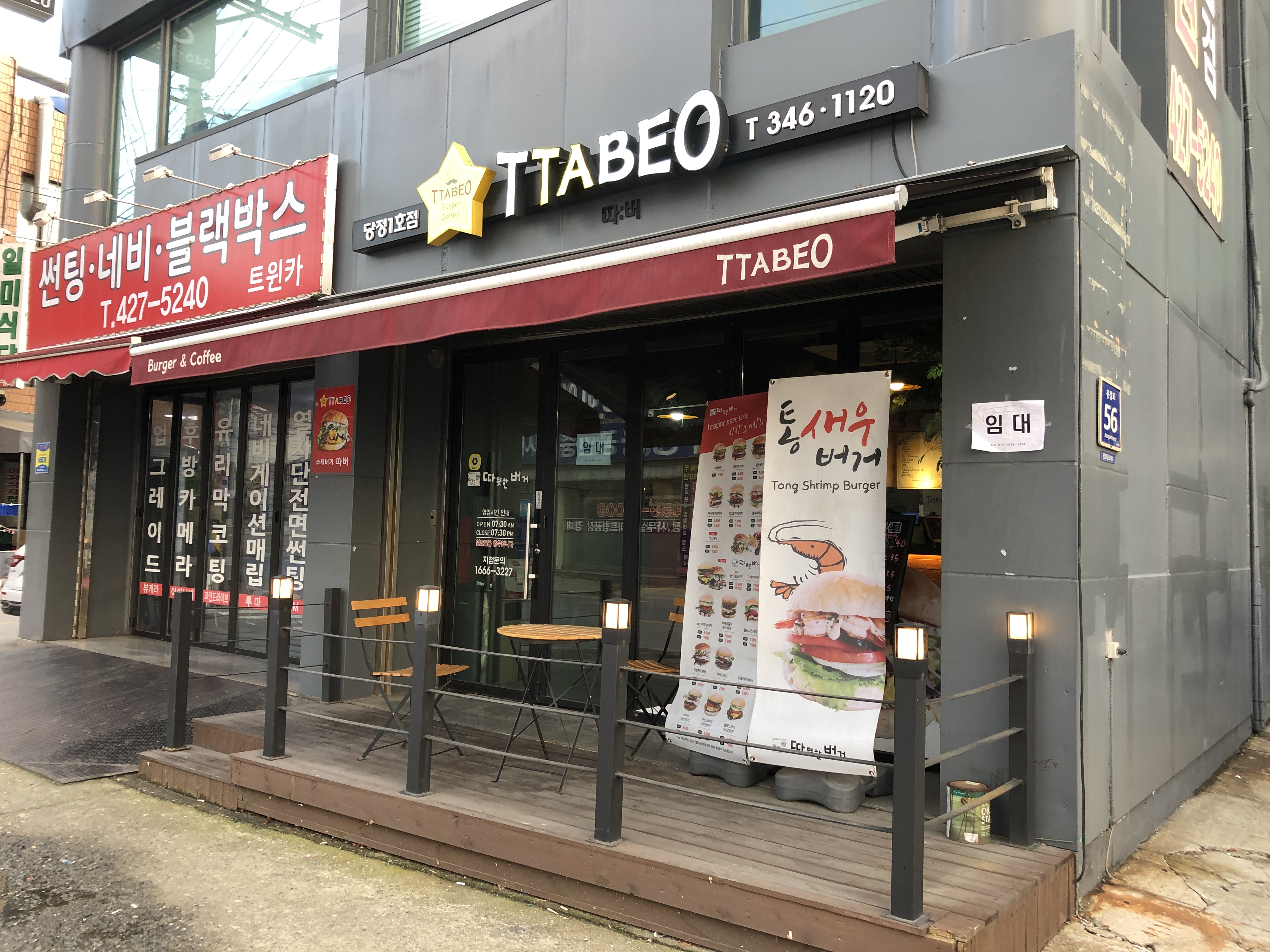 가게 밖에 놓인 통새우버거 입간판을 보고 통새우버거를 주문하려고 했는데 재료가 없어서 주문이 안된다네요.