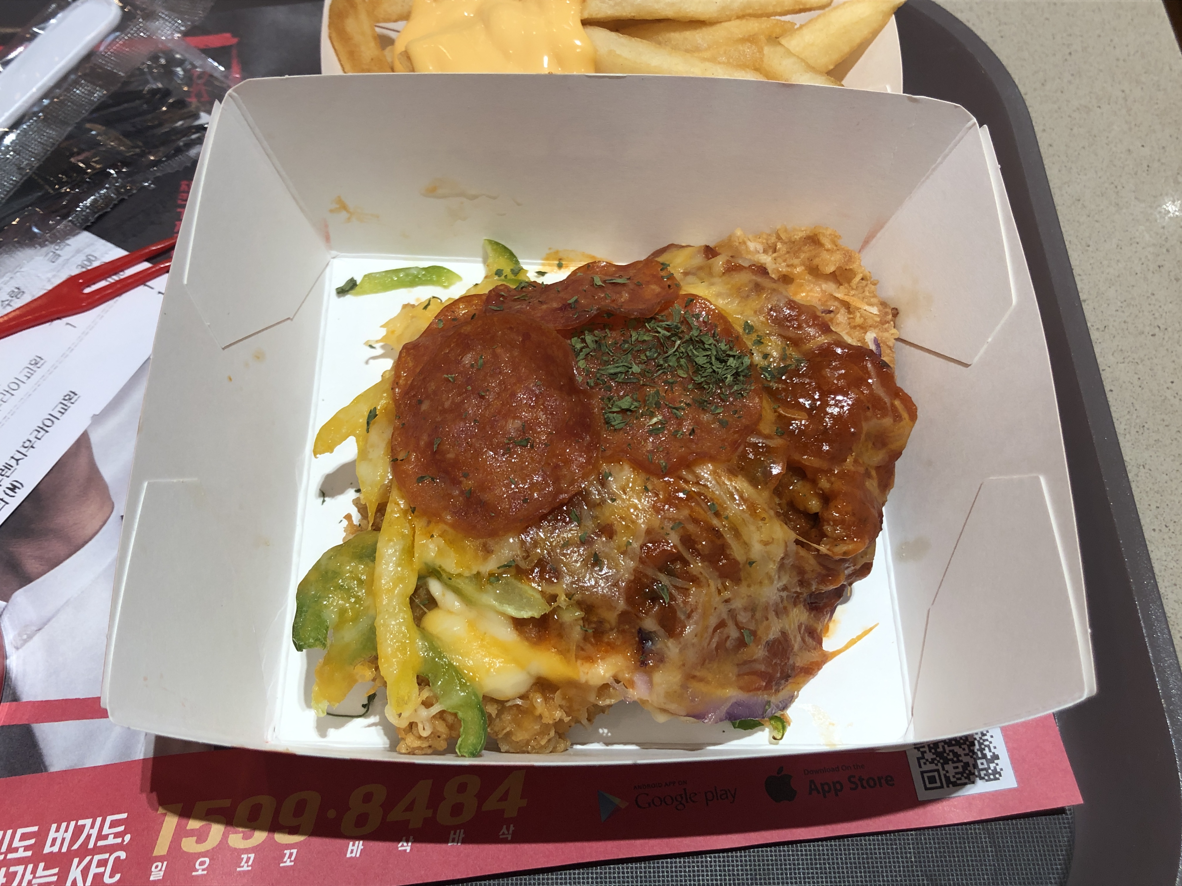KFC에서 다시 출시한 치짜를 먹고 집으로 돌아갔습니다.