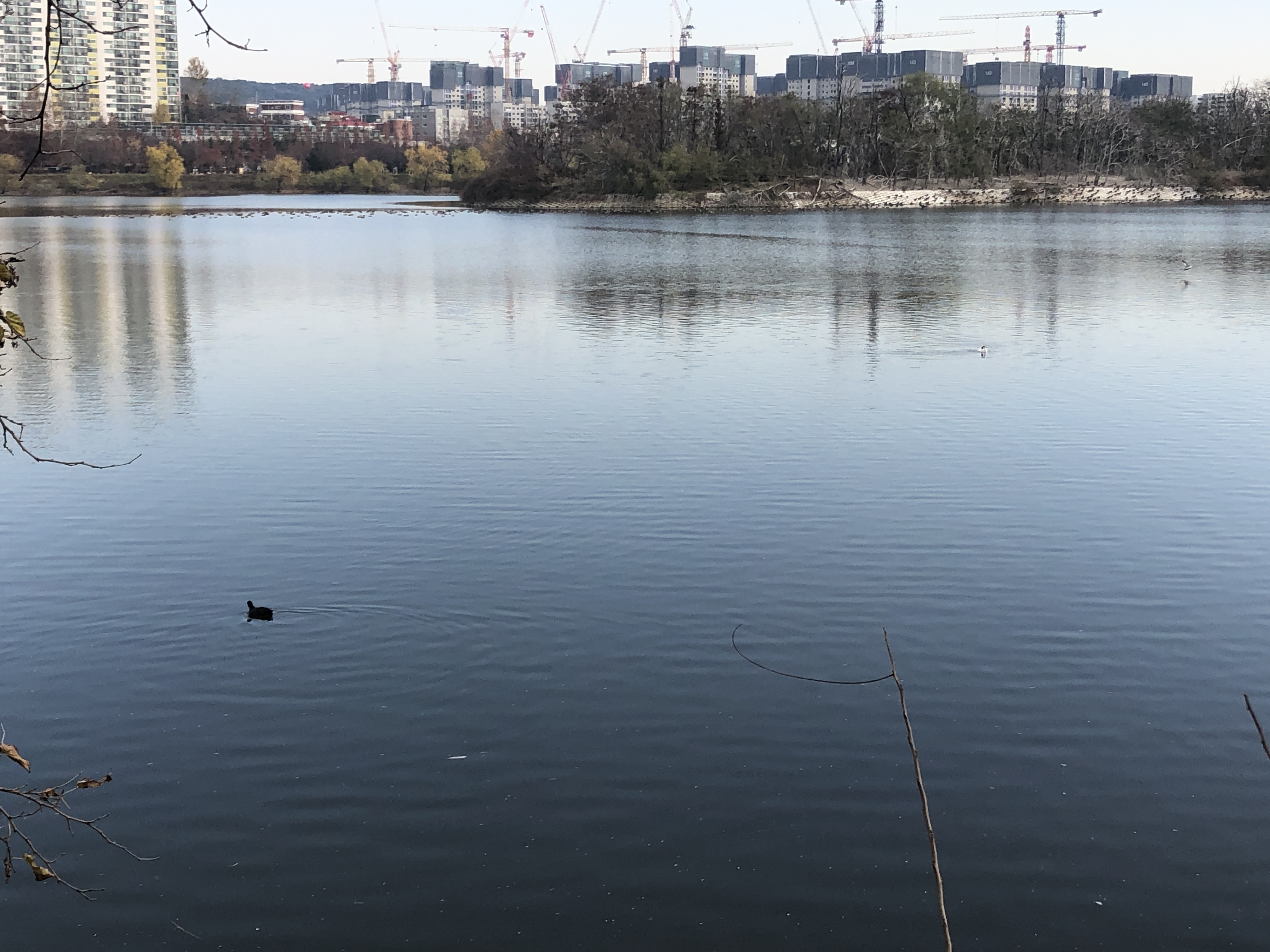어째 간이 탐조대 주변에는 물닭 한 마리만 눈에 띕니다.