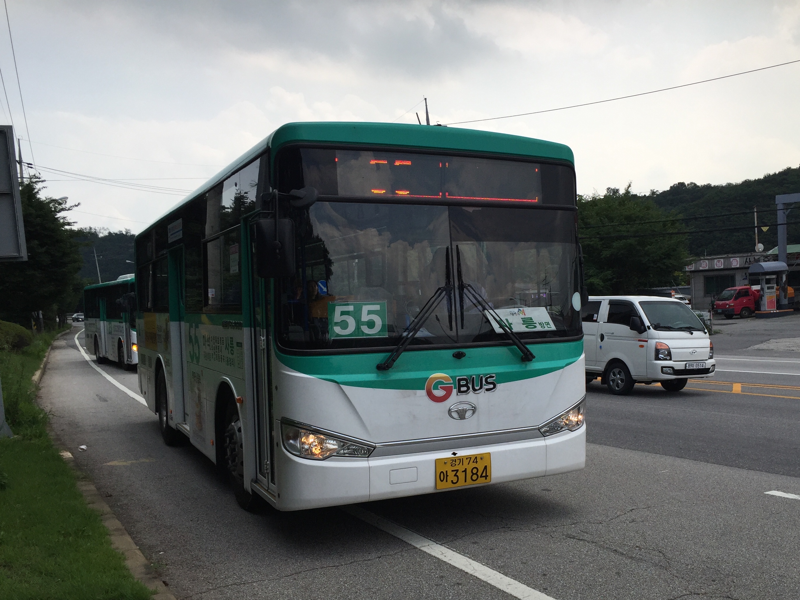 아까 버스에서 내렸던 그 정류장에서 55번 버스를 타고