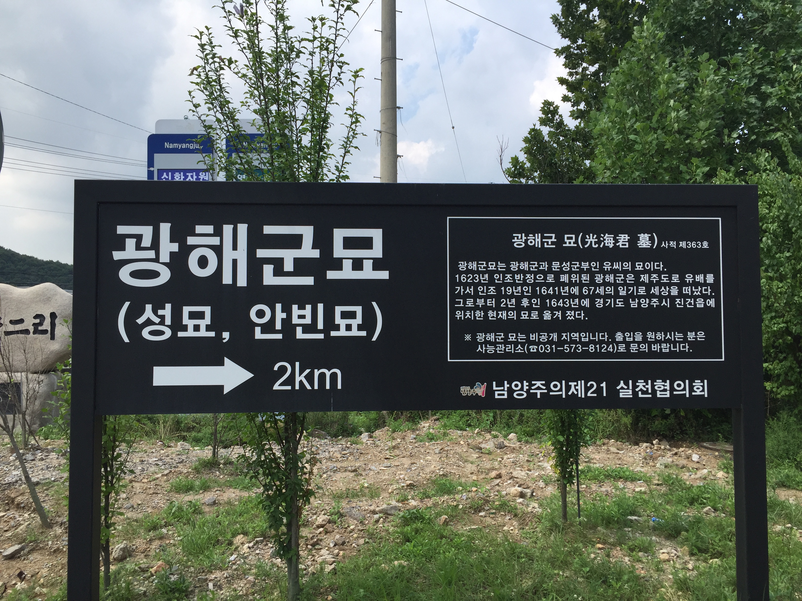 비공개 지역인 광해군묘 안내판을 지나