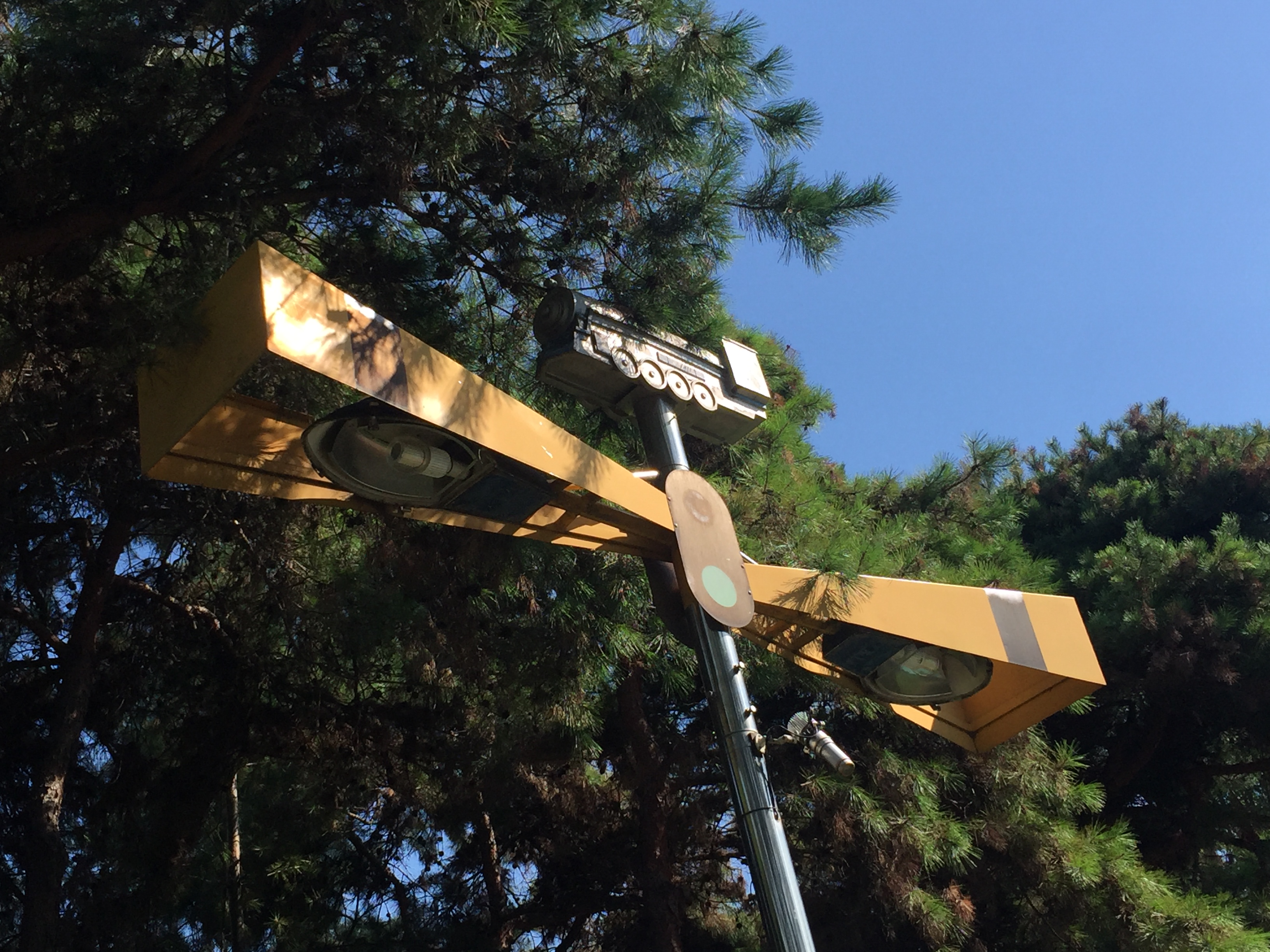 공원에 놓인 가로등도 철도와 관련된 디자인으로 만들어서