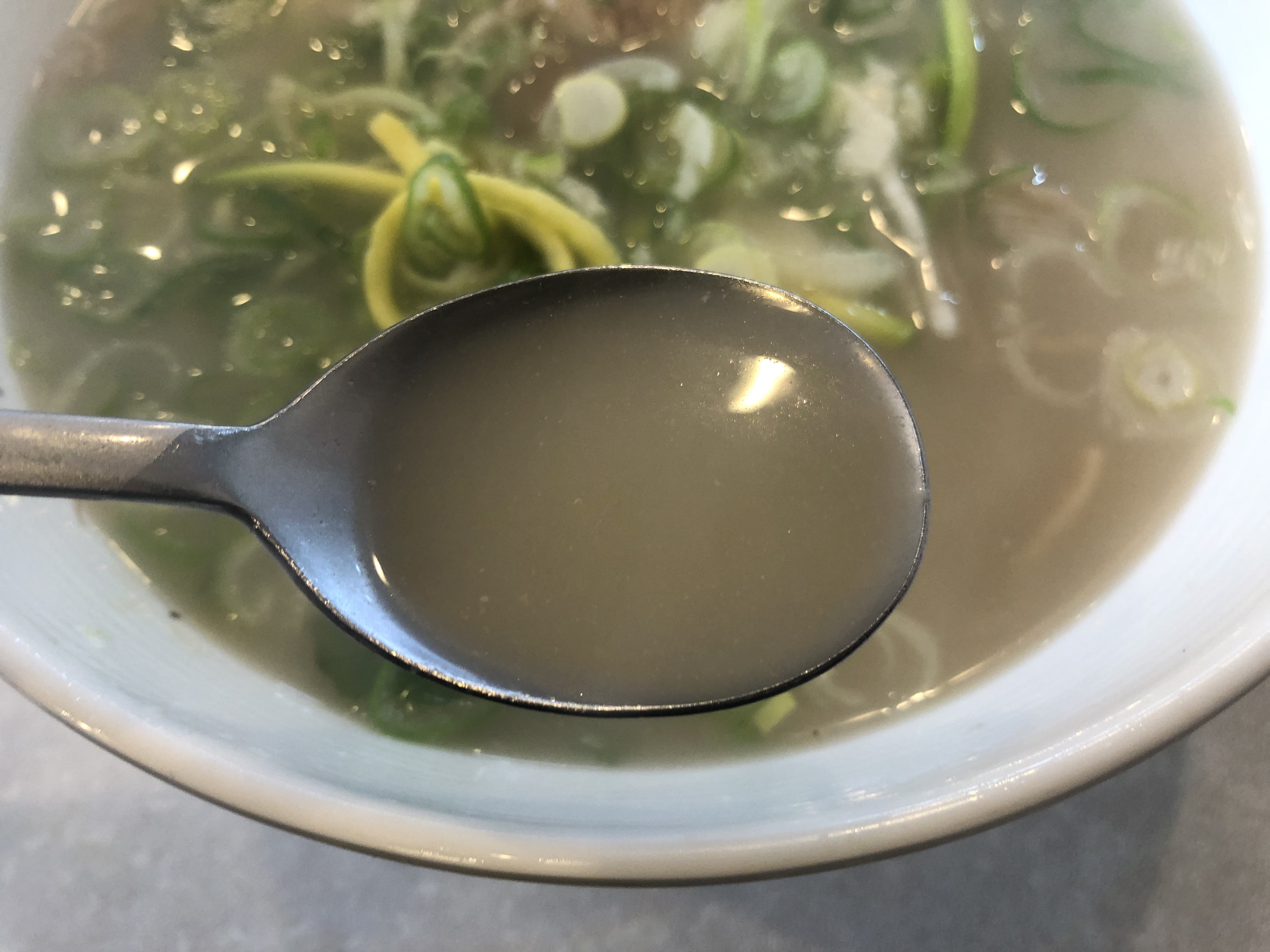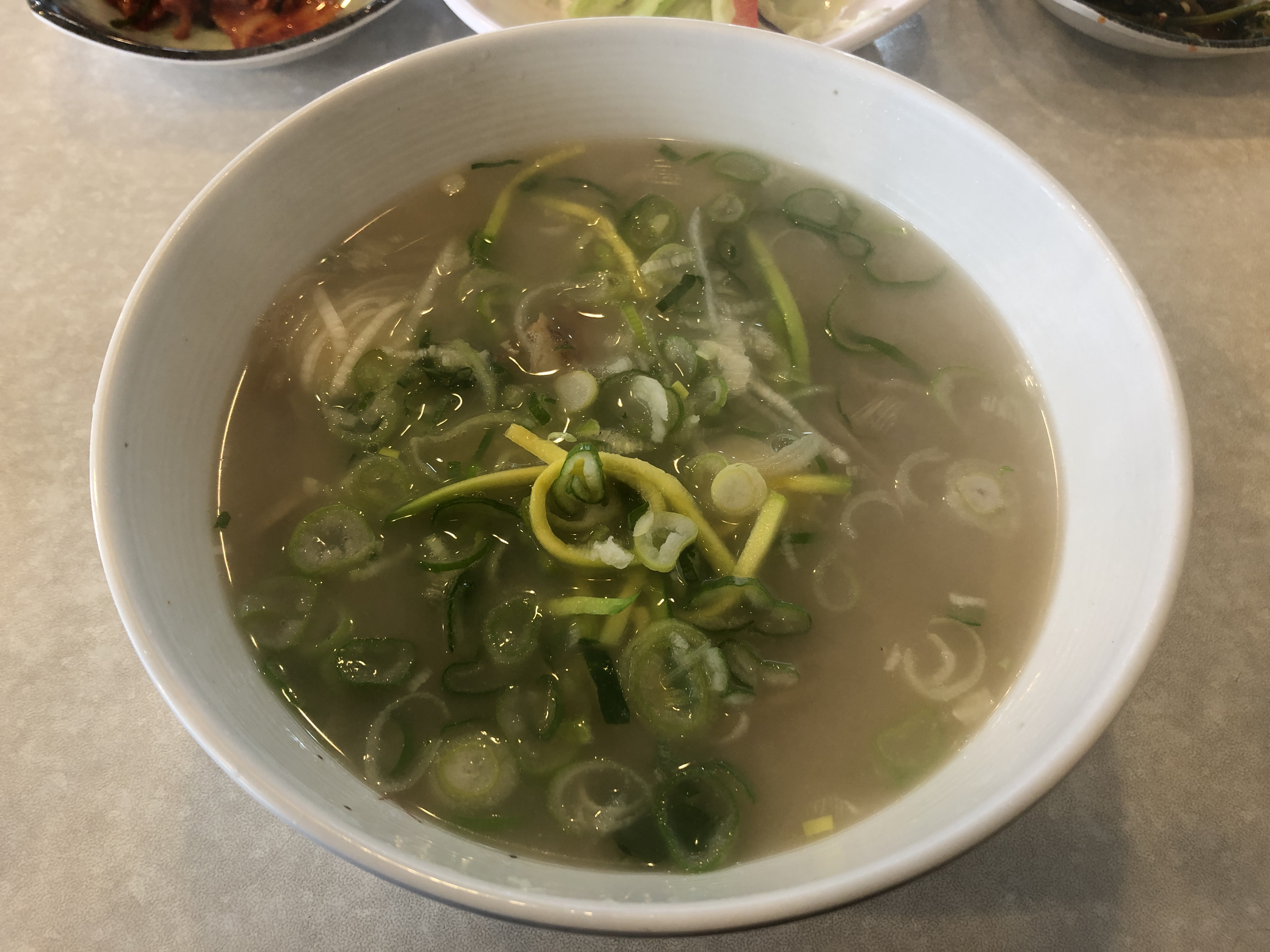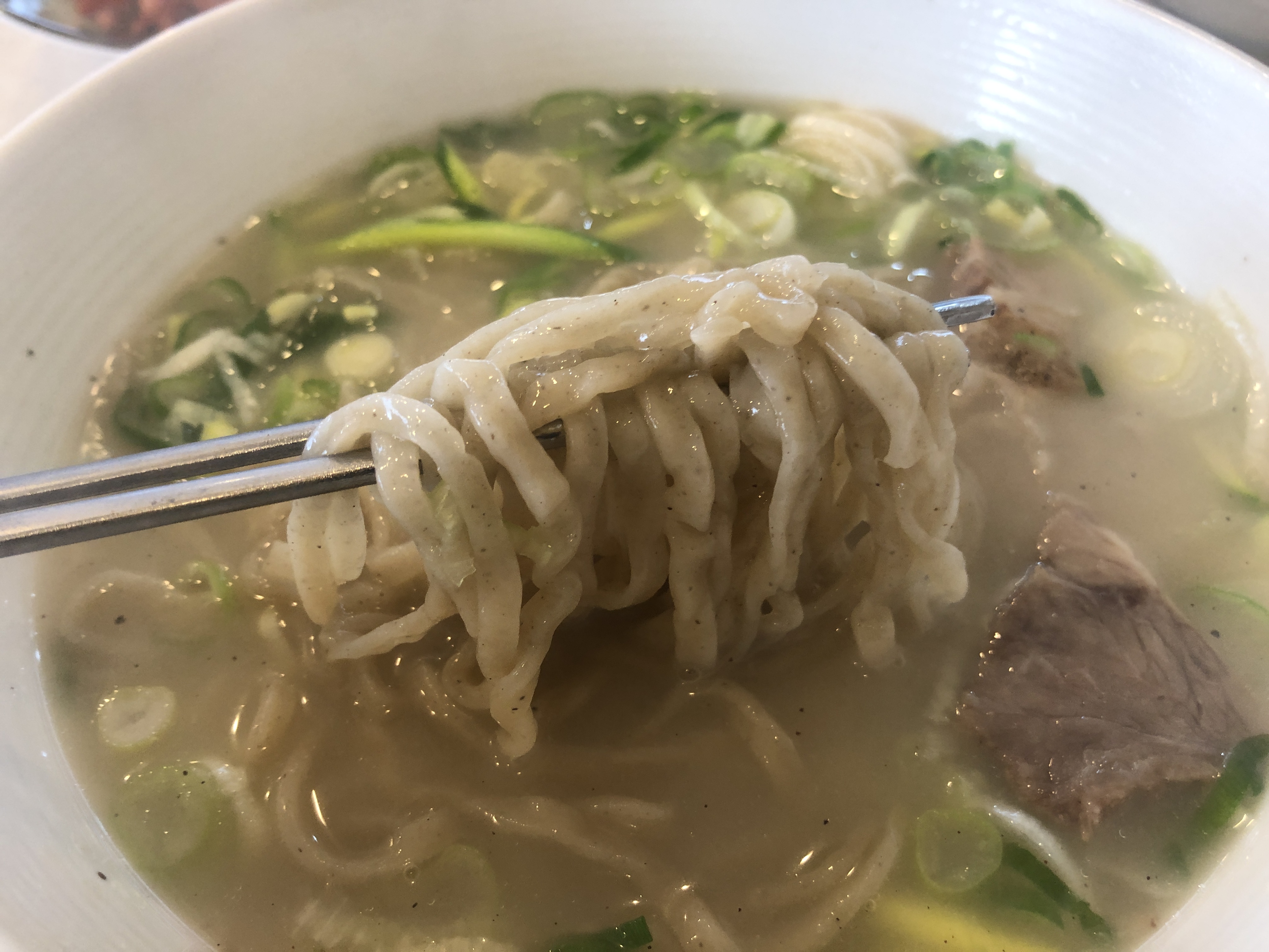 국물을 숟가락으로 떠먹자마자 진한 사골국물 맛이 느껴지고