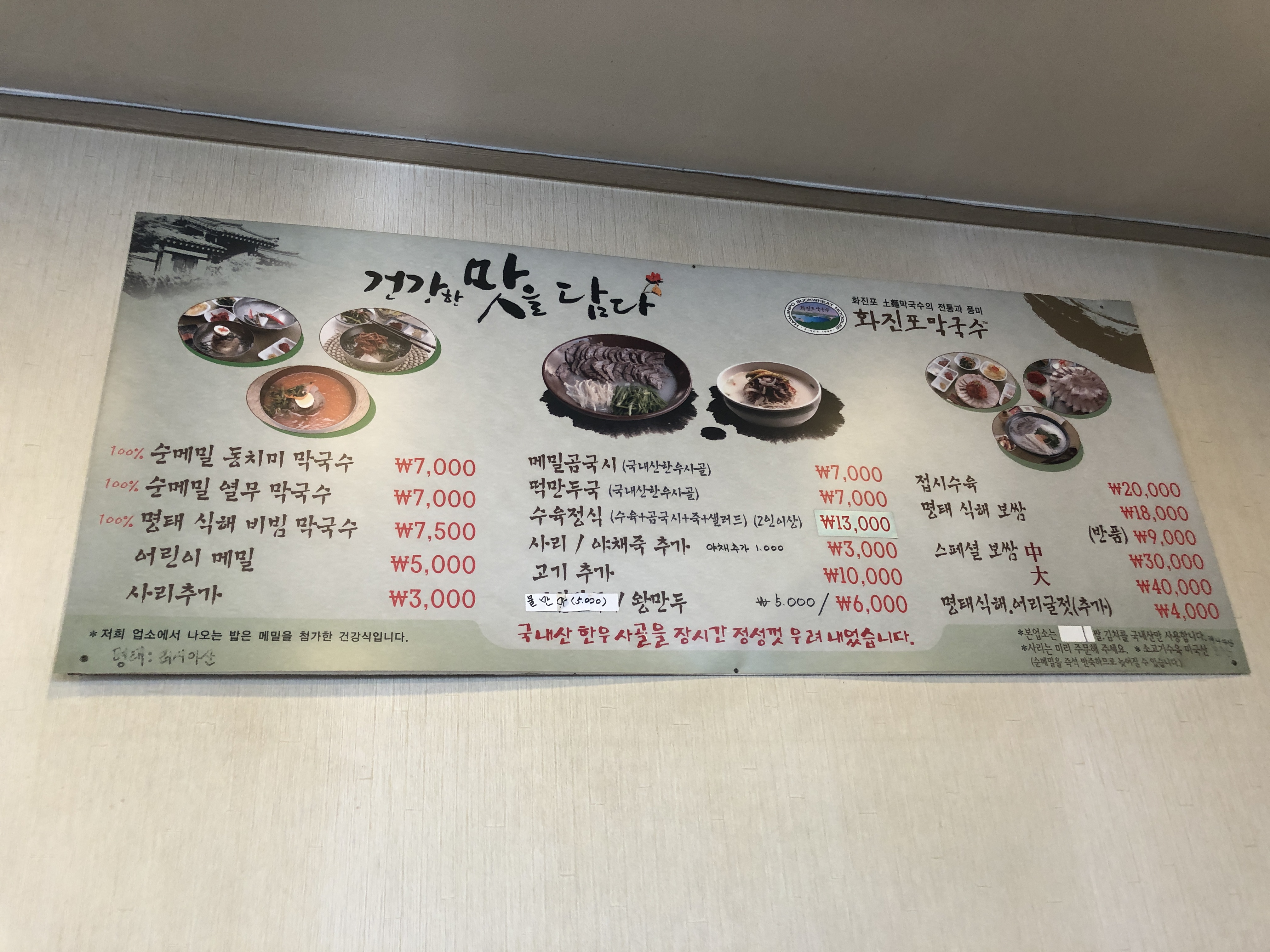 식당 이름이 화진포막국수니 당연히 메뉴판에 제일 먼저 적힌 음식은 막국수지만