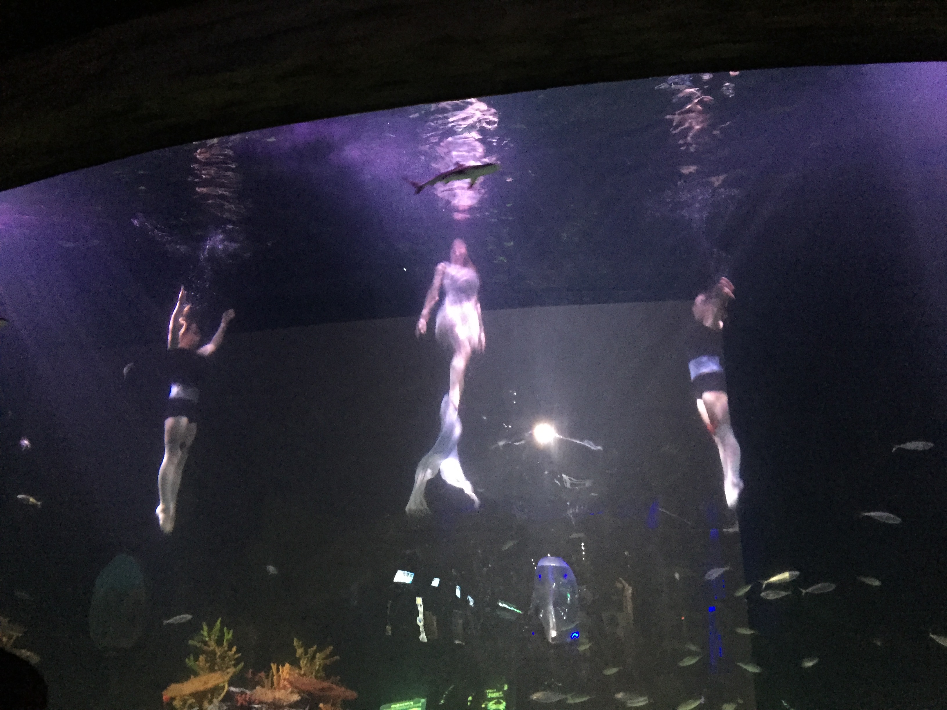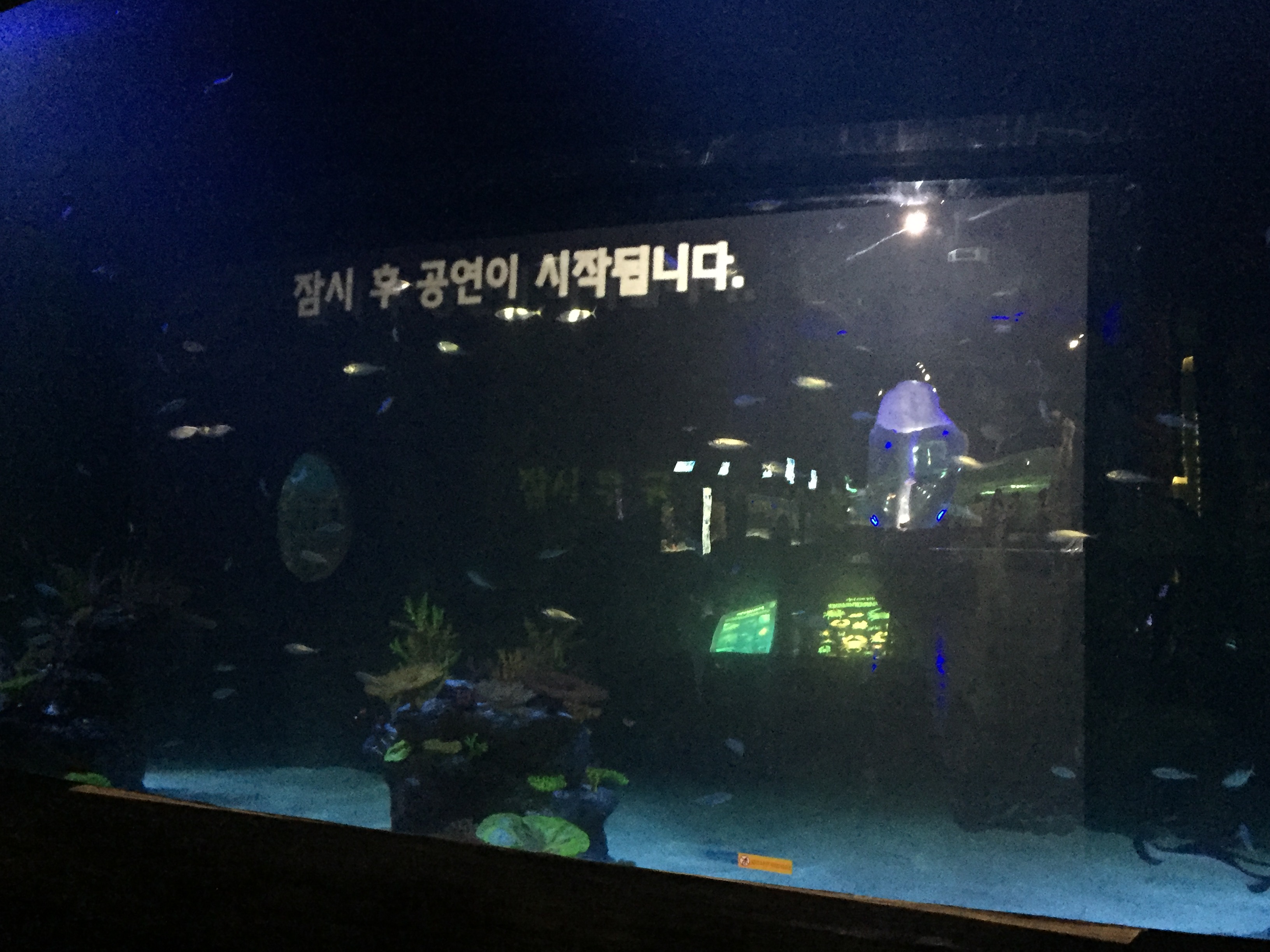 메인 수조에서 공연이 시작된다는 안내가 나옵니다.