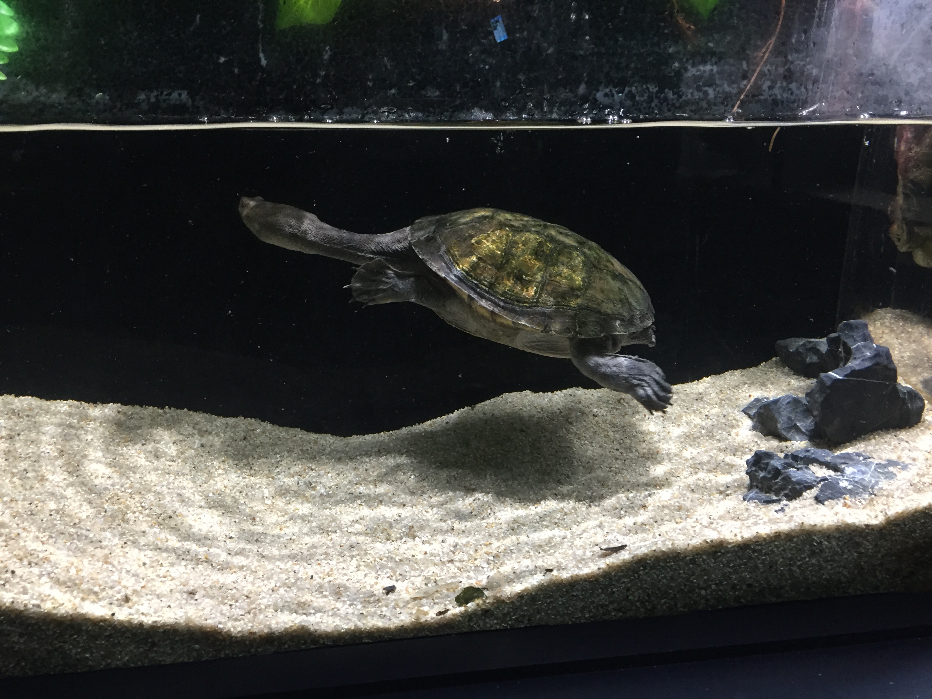 여기는 아기 거북이들에게 먹이를 주는 곳입니다.