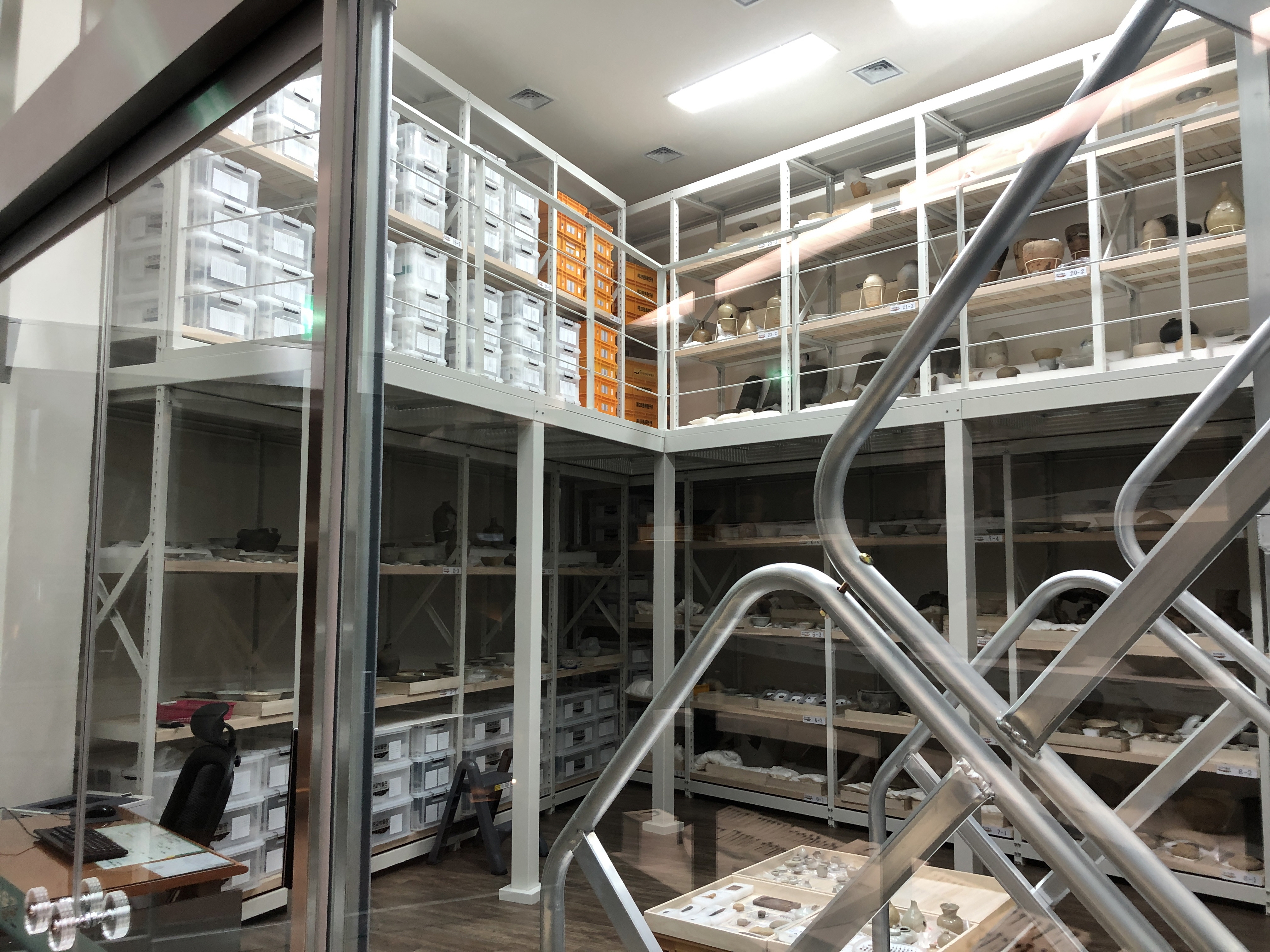 수장고는 전시 공간에 놓지 않은 유물을 보관하는 공간입니다.